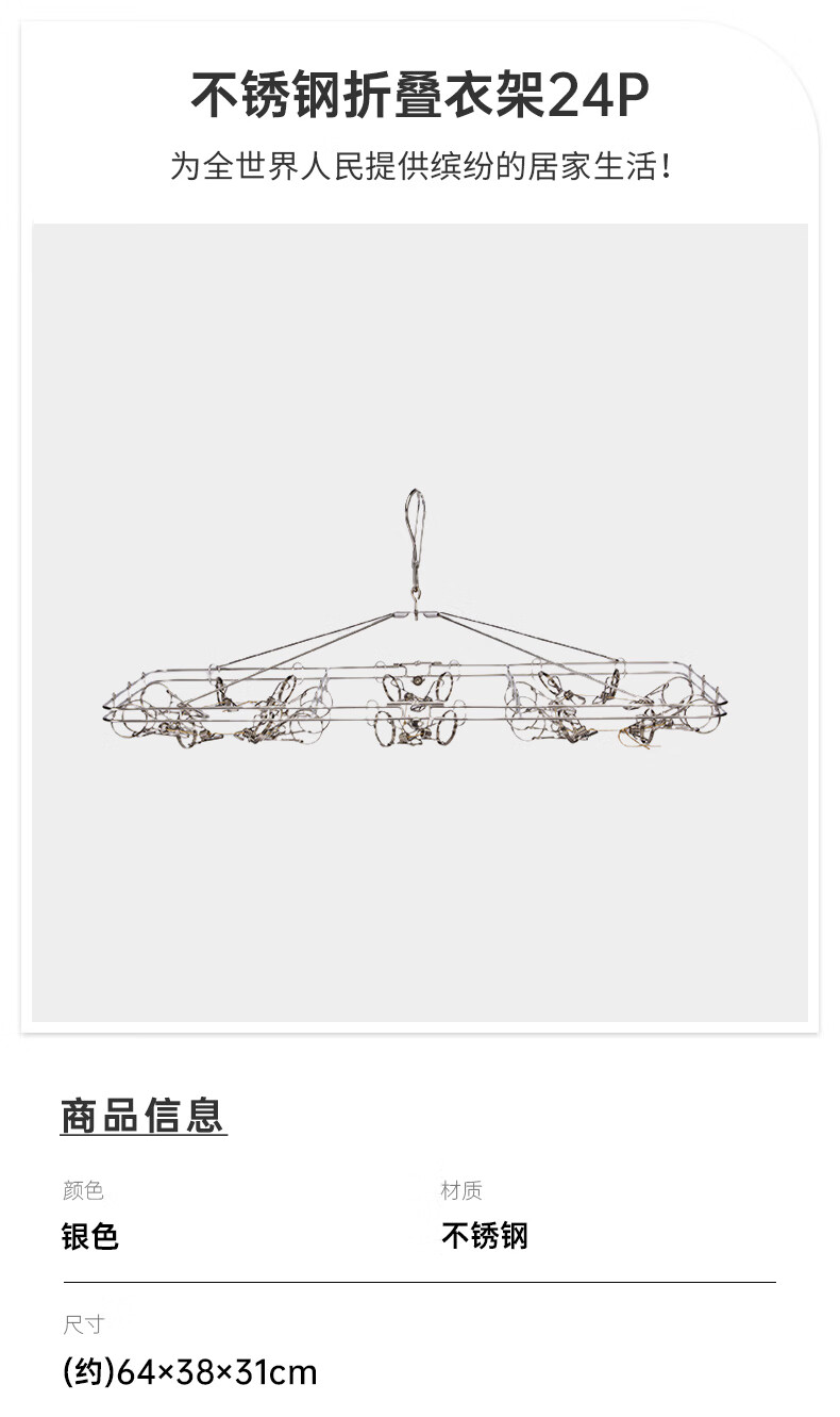 不锈钢折叠衣架24个夹