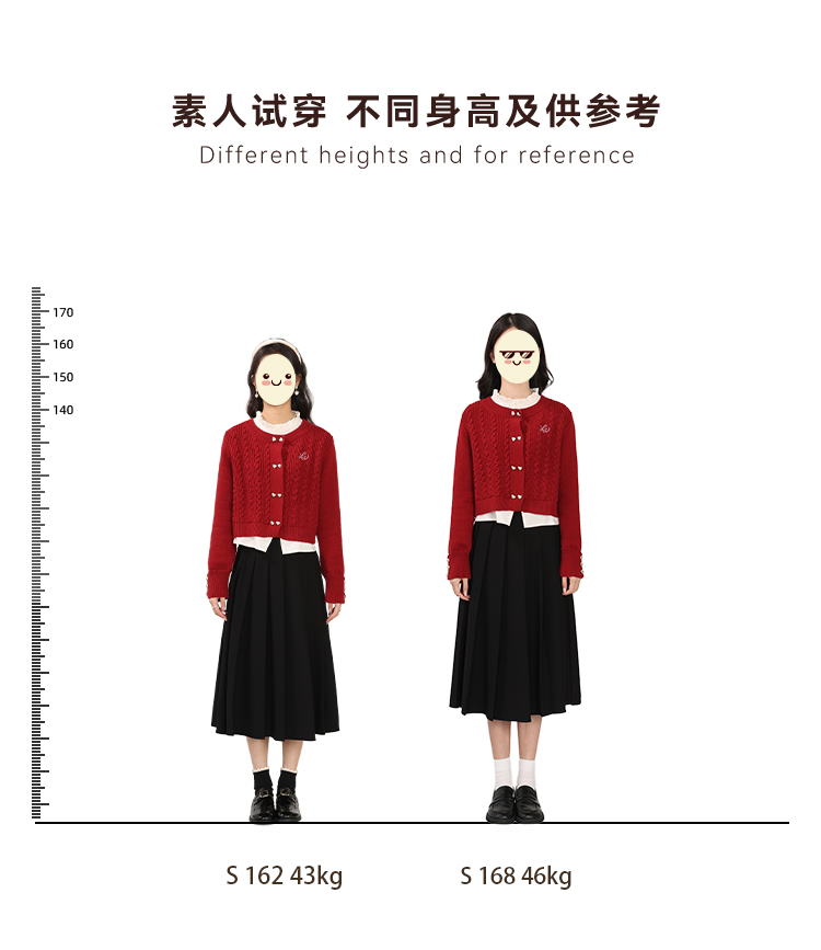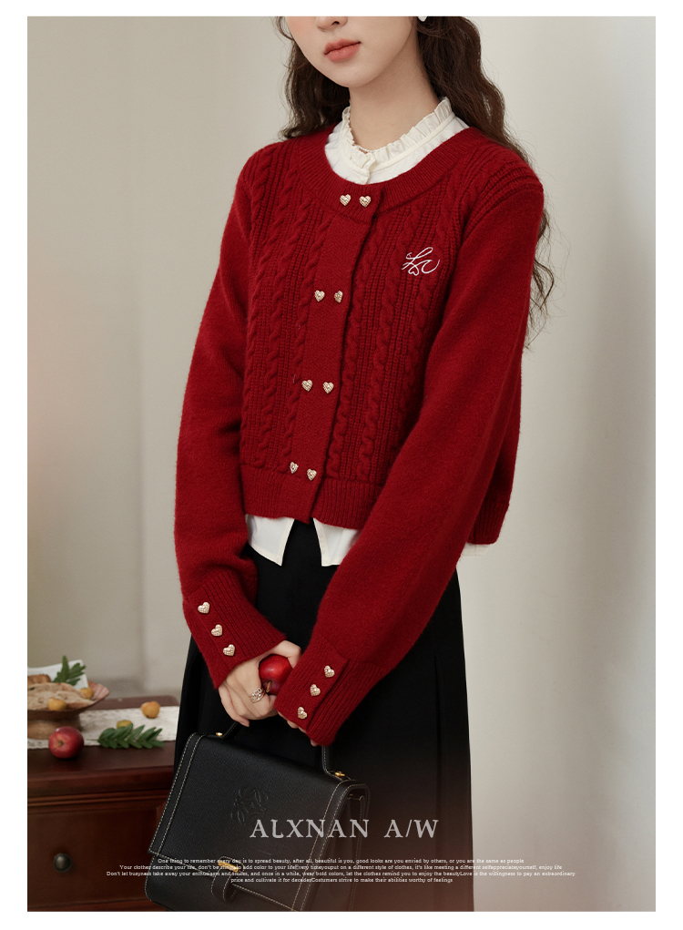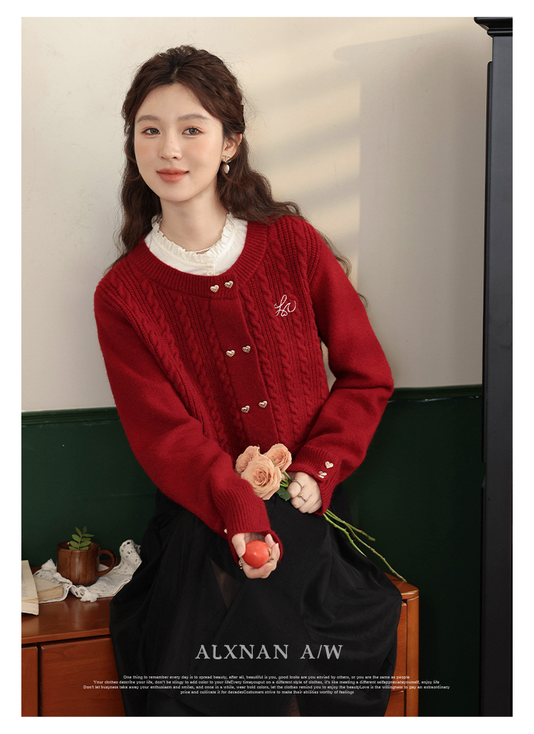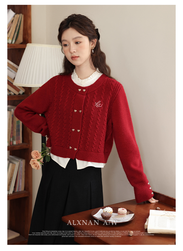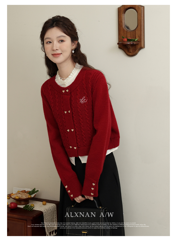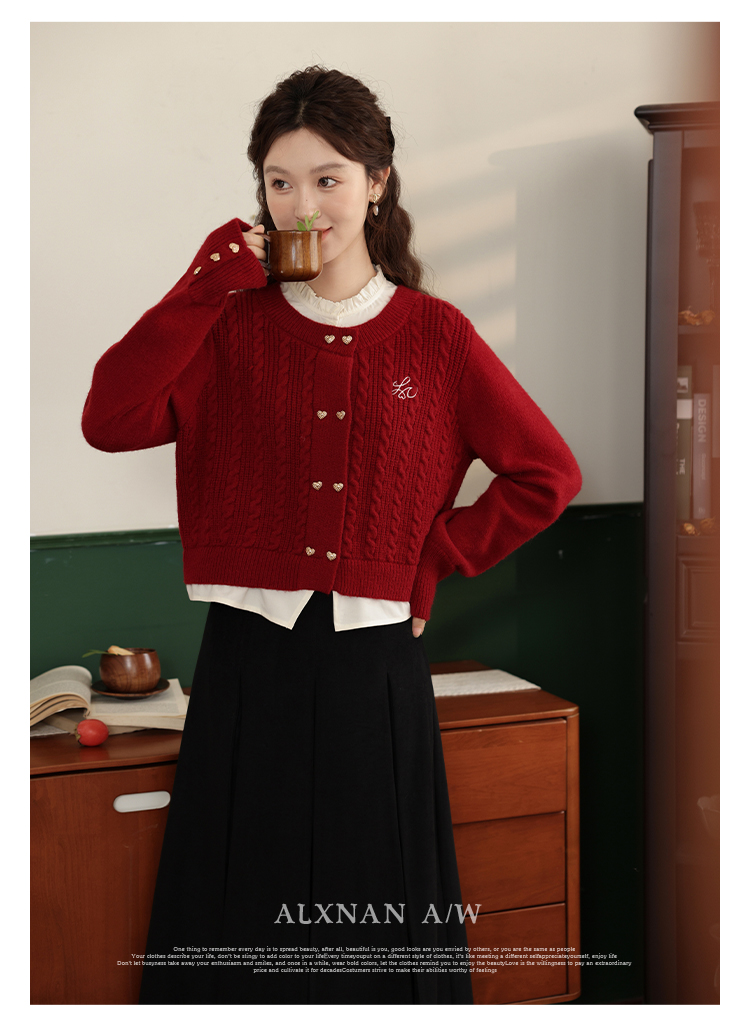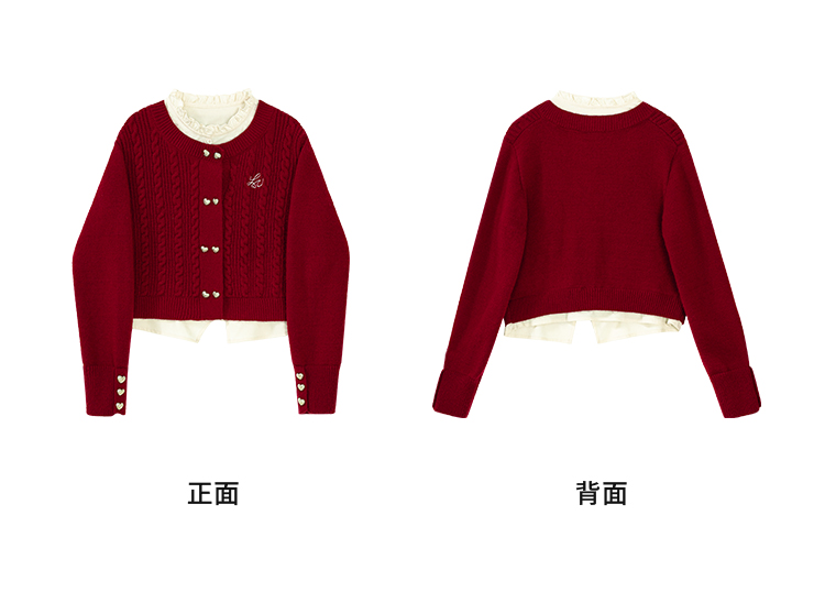 鹿向南「樱桃日记」安可雷红色毛衣秋季立领假两件上衣女&气质时尚高腰半身裙