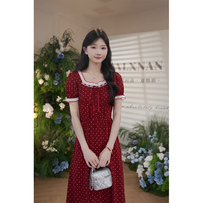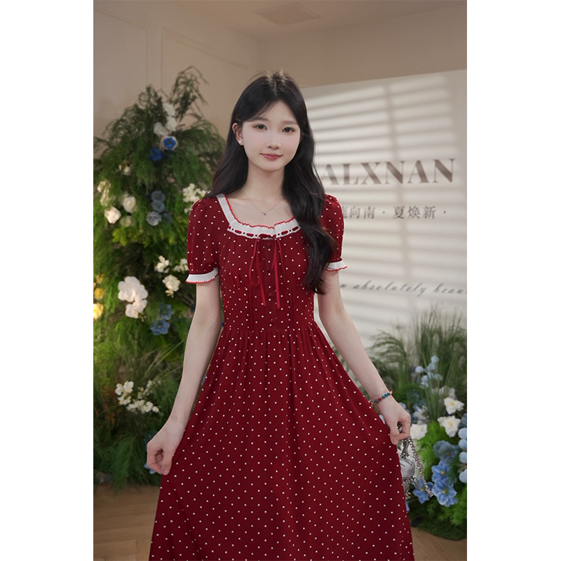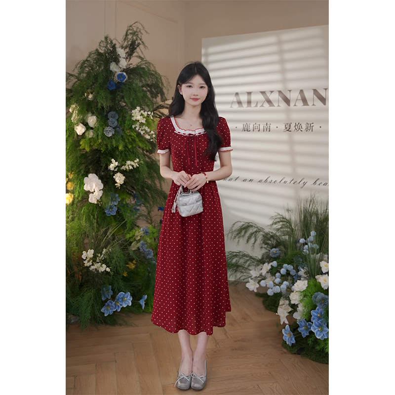 鹿向南「托卡艳阳」法式波点甜美连衣裙女夏季小个子设计感长裙子DYL661925