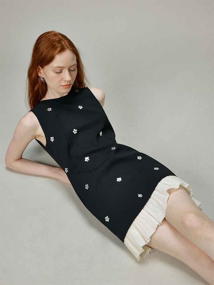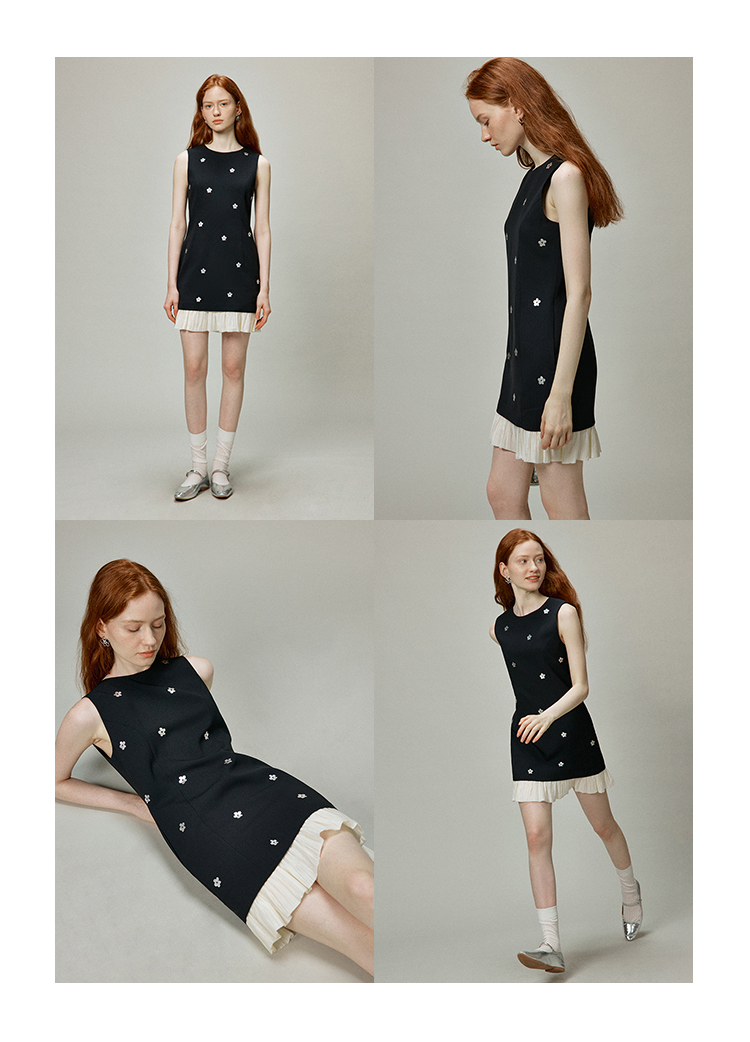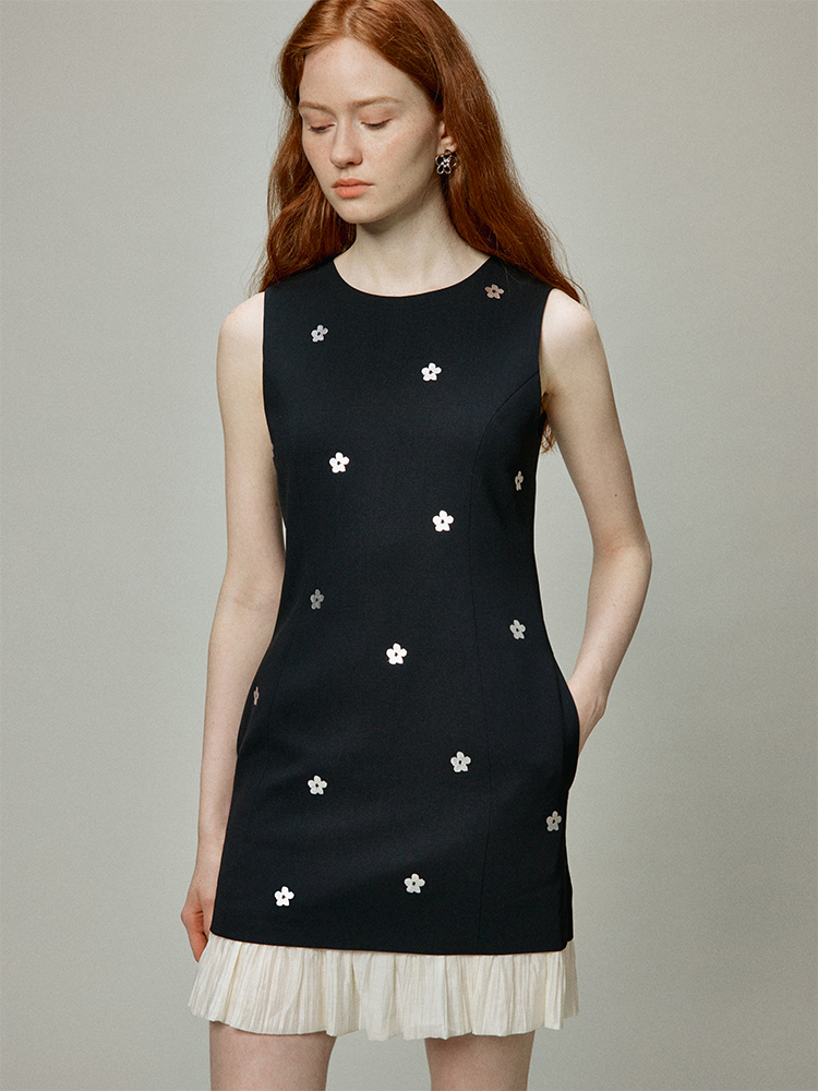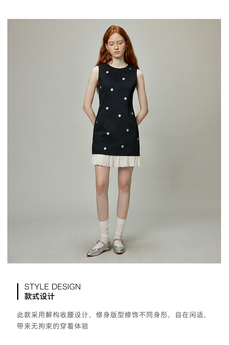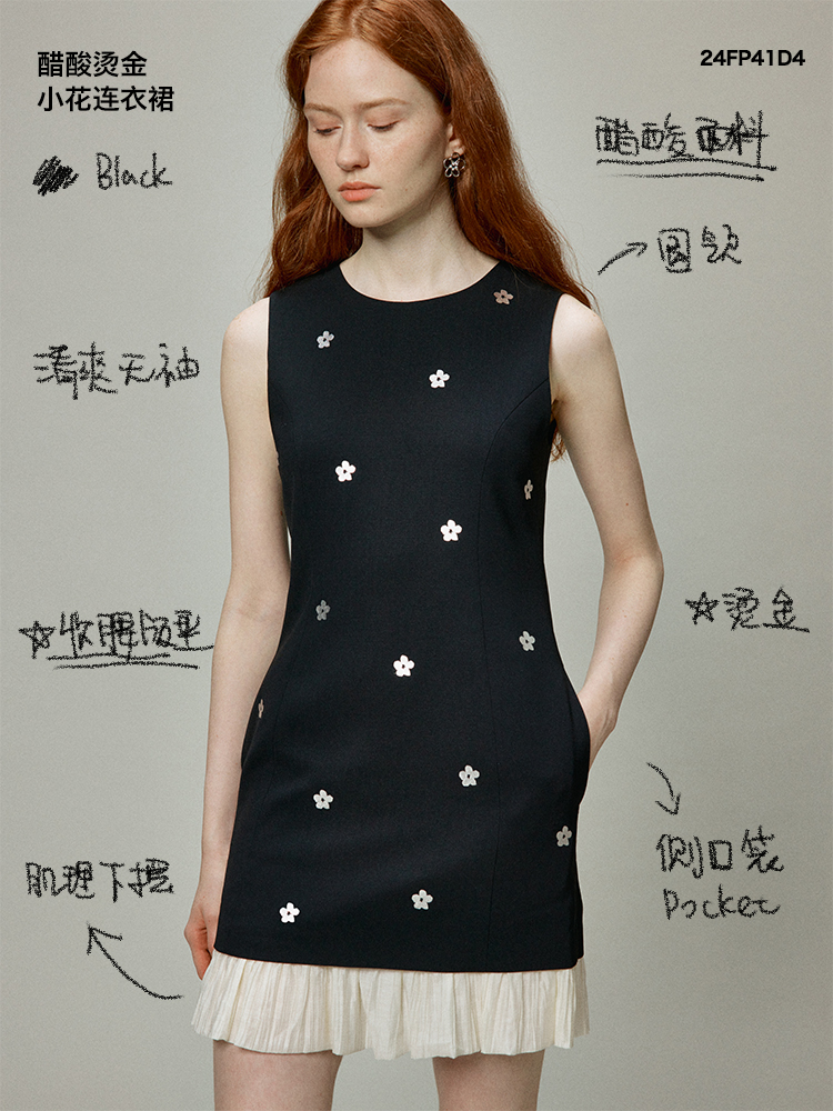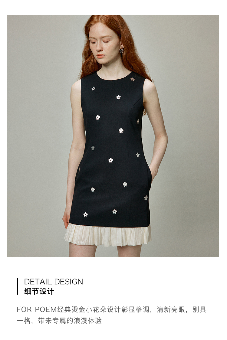 ForPoem 现货 24/SS花朵系列醋酸烫金花朵无袖背心裙收腰修身连衣裙女