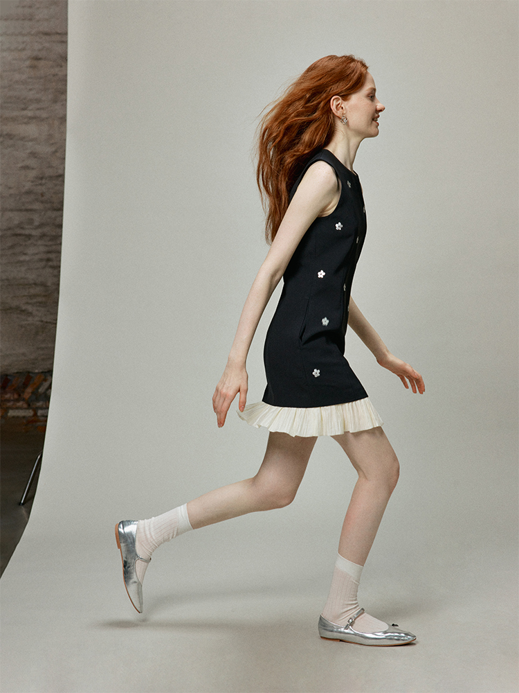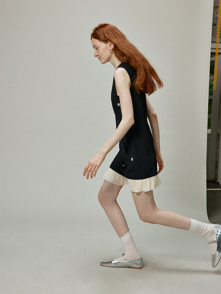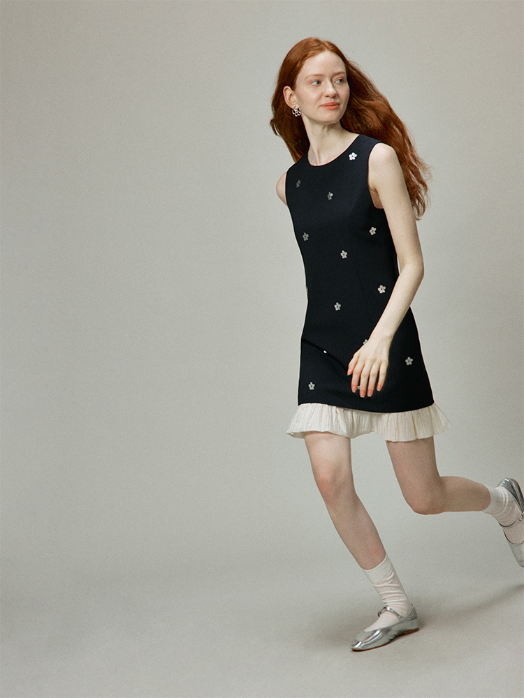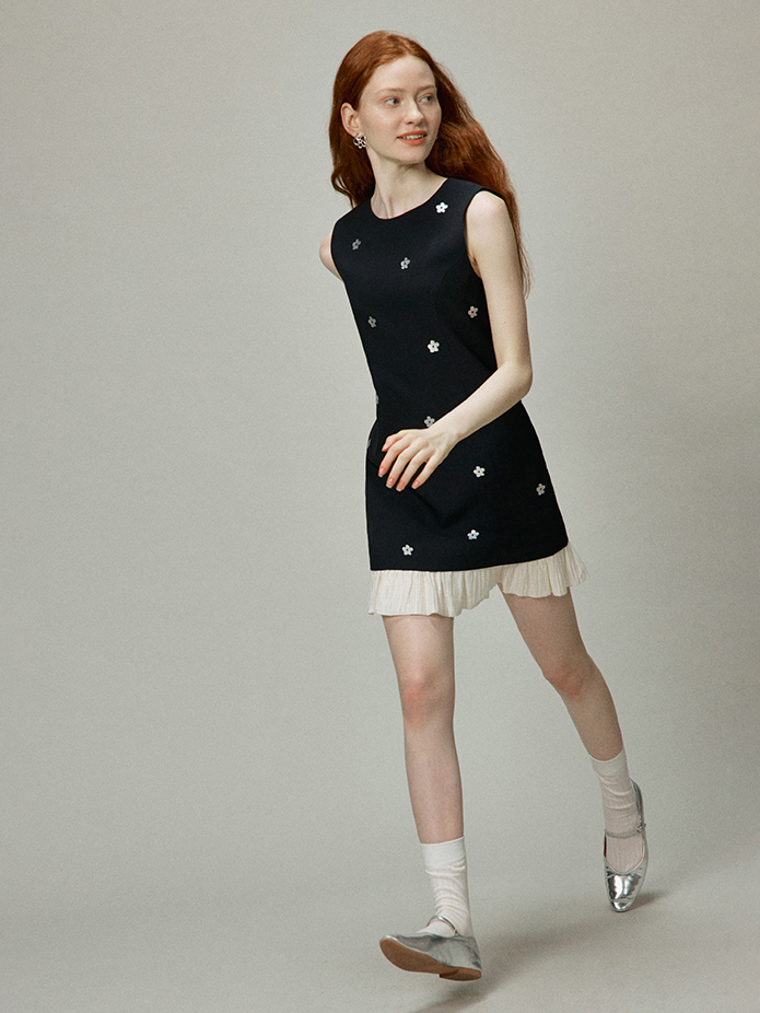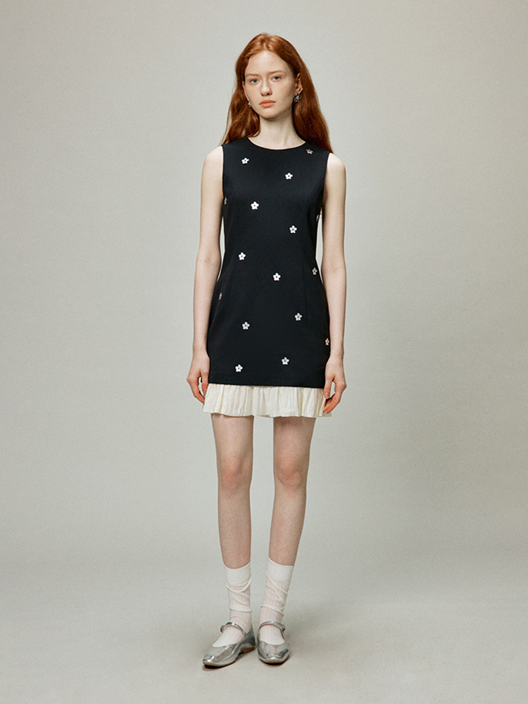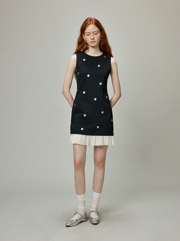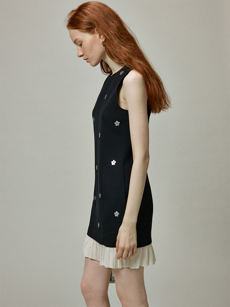 ForPoem 现货 24/SS花朵系列醋酸烫金花朵无袖背心裙收腰修身连衣裙女