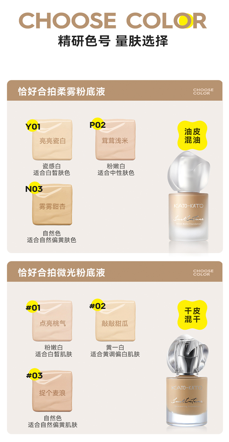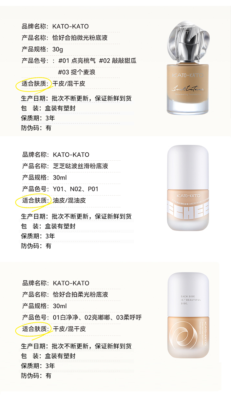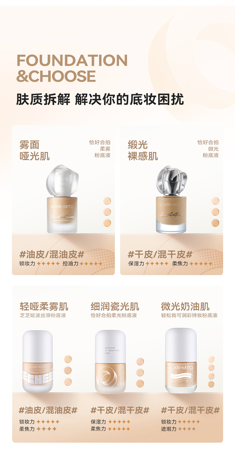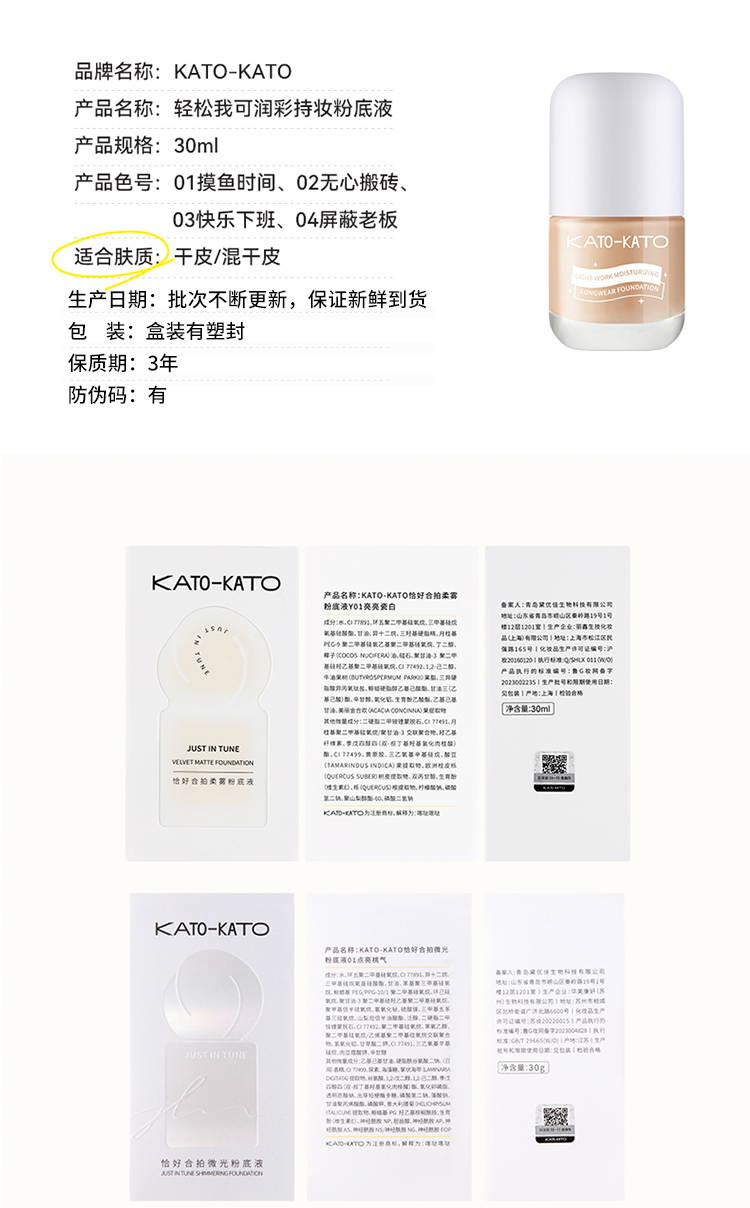 KATO 芝芝哒波丝滑/恰好合拍微光/柔雾粉底液 30ml