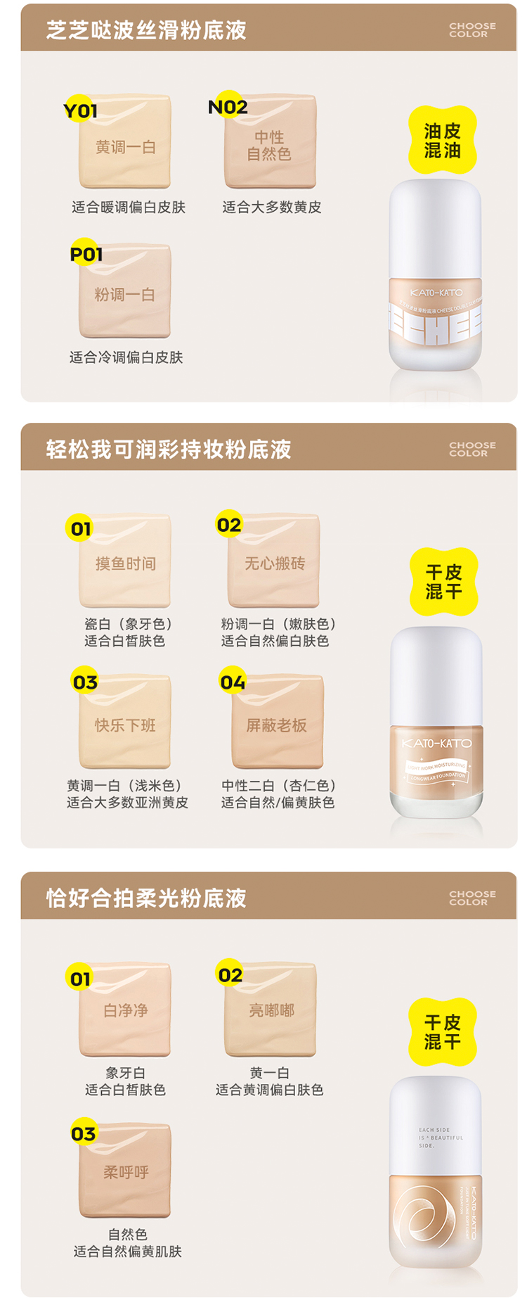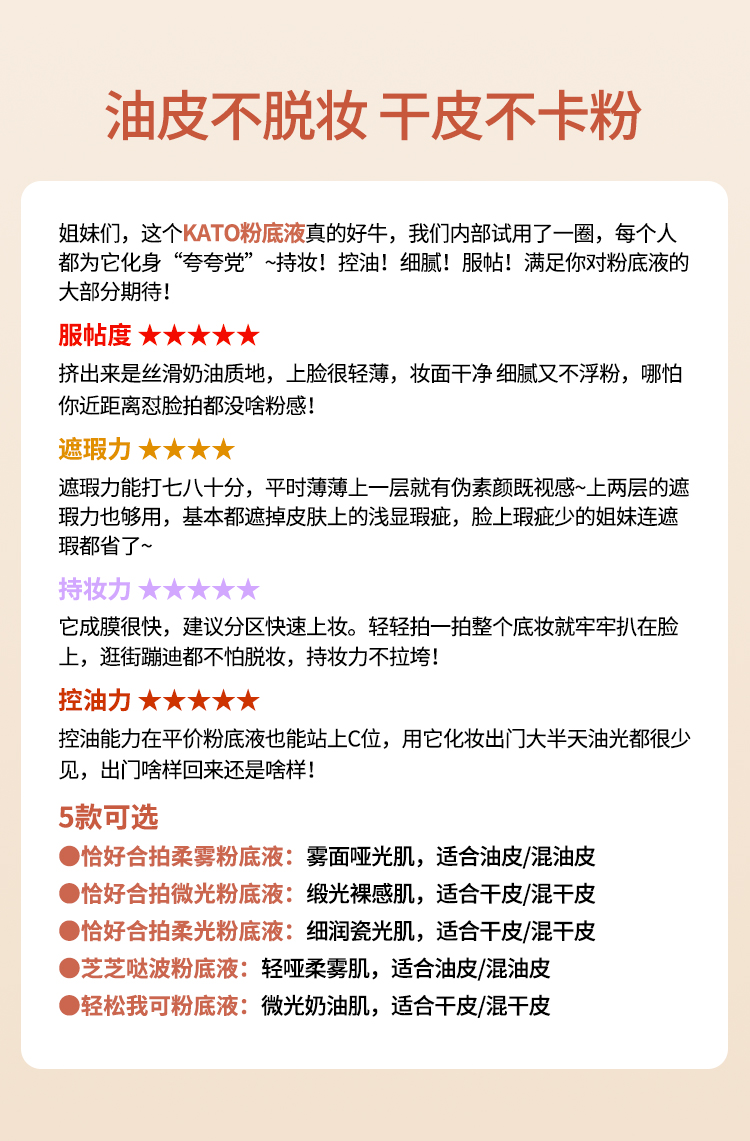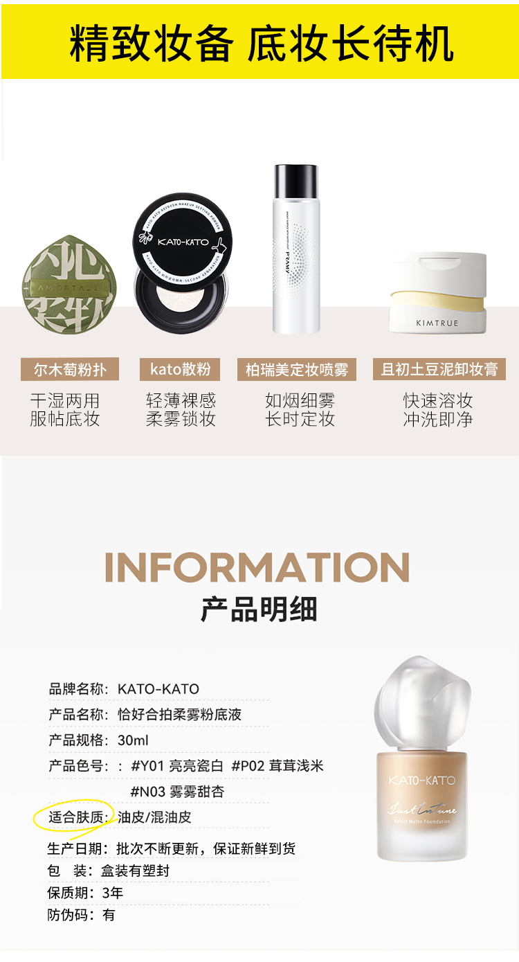 KATO 芝芝哒波丝滑/恰好合拍微光/柔雾粉底液 30ml