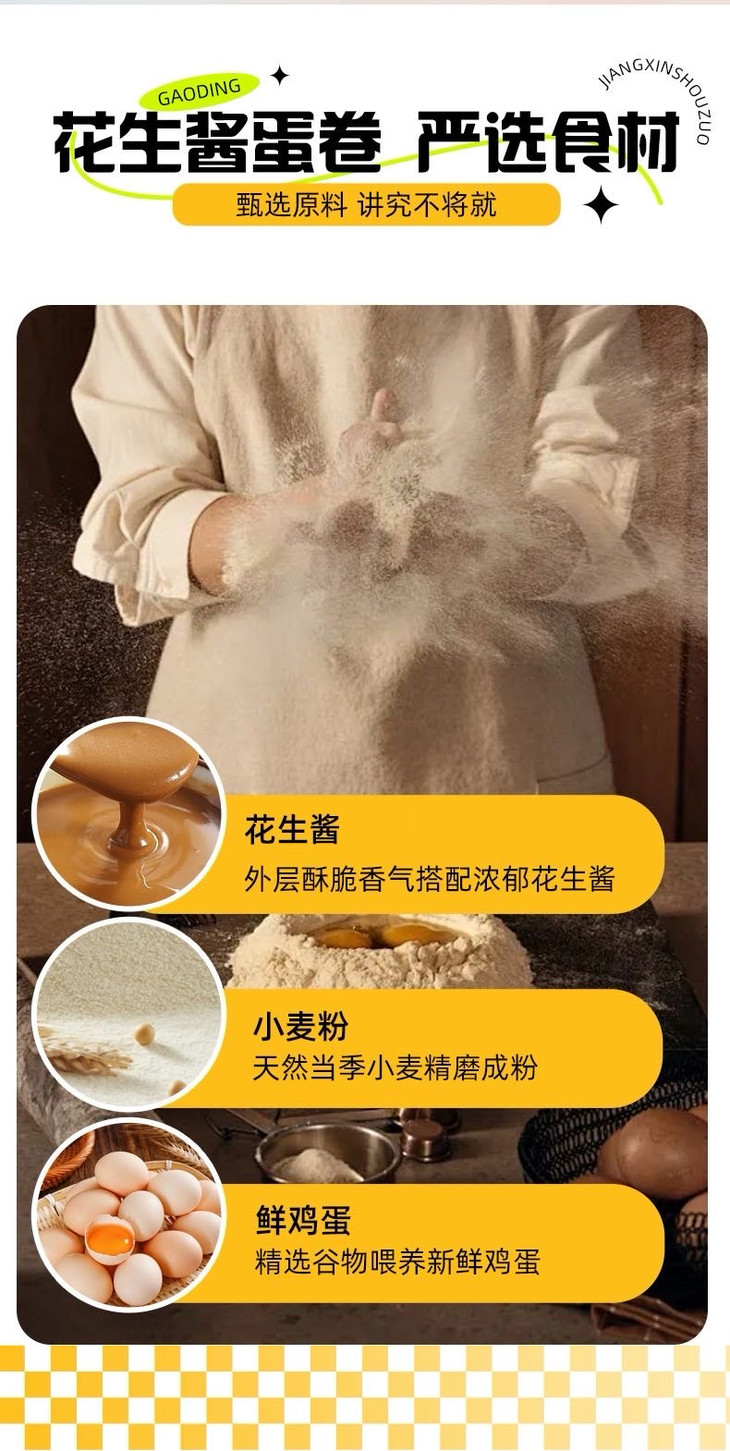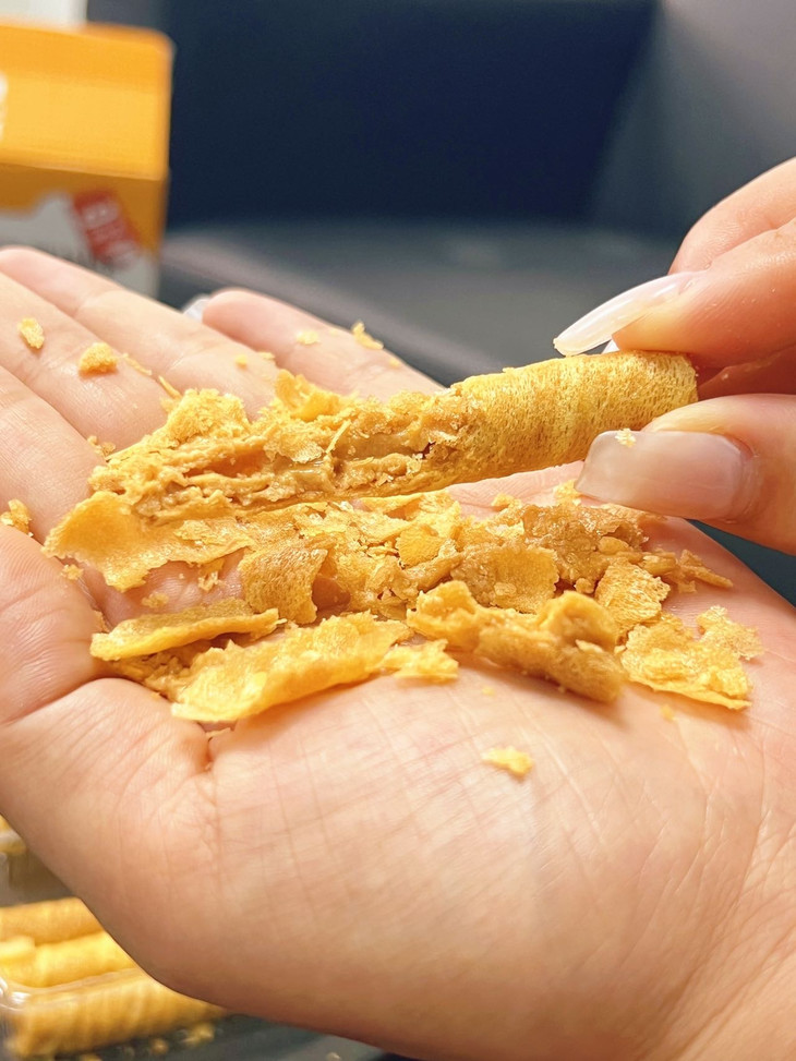 区别于市面上的普通空心蛋卷 这个有“心”蛋卷真的惊艳到了!! 夹心真的满到溢出来了,这是真敢给料啊‼️ ✅花生酱添加量≥45%‼️ 是超级浓郁的“酱”香味~ ✅优质小麦粉➕鲜鸡蛋,全程不加一滴水‼️ 高温烘烤至金黄色泽😍多层酥脆 花生酱🥜和脆皮蛋卷融合的非常好,不觉得甜腻,层次也更丰富 真的是宇宙zui强组合