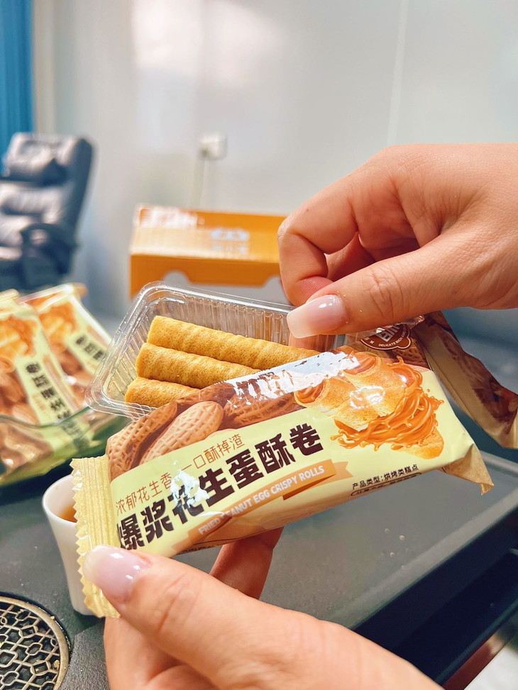 29.9💰整整2大箱❗浓郁花生酱+酥脆蛋卷❗巨香❗巨上头❗【沫小言爆浆花生蛋酥卷】 🔴旗舰店一箱24.9,开团两箱只要29.9💰 🔴吃一根❗满嘴花生香❗ 🔴内馅≥45%