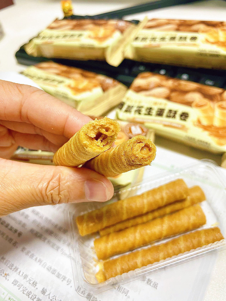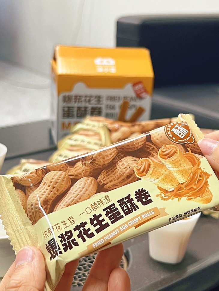 办公室为了最后一包蛋卷差点打起来‼️‼️ 就是这个—— 「沫小言爆浆花生蛋酥卷」 被同事取名“到手没”!! 🔺花生酱含量≥45%‼️ 一口咬下,满口的蛋香和花生酱香!!! 是会爆浆的程度!!!! 吃到最后 连袋子里的渣渣都要倒进嘴里才过瘾😋