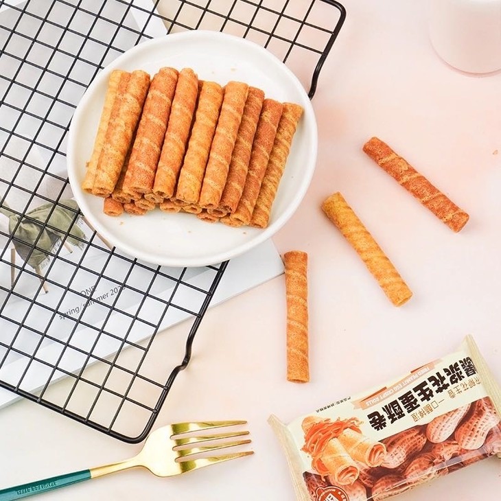 每一块香酥碎屑都像是在挑逗你的味蕾 顺滑花生酱咸甜咸甜又酥酥的 酥的掉渣,入口分分钟融化掉 酥香四溢,营养丰富,乐享美味 既好吃,又好看的美心蛋卷 让人无法抵挡这诱惑