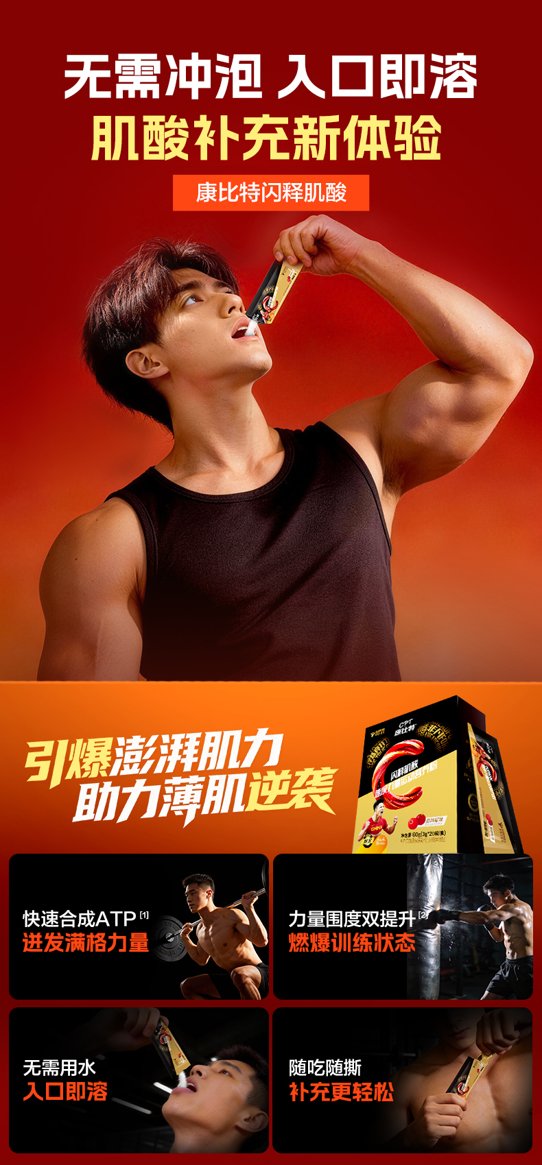 康比特闪释肌酸一水肌酸纯肌酸增肌塑形提升爆发力官方旗舰店