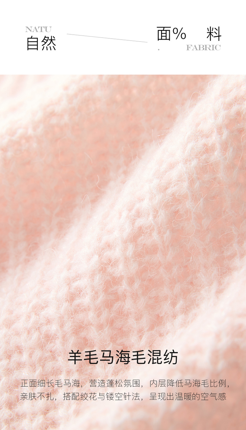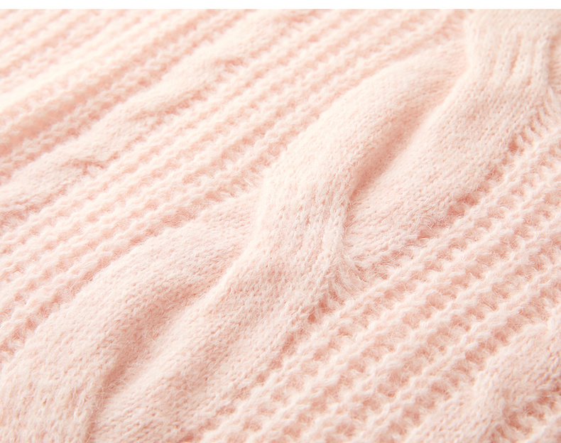 三彩2025秋季新款绞花针织衫V领毛衫宽松落肩袖套头毛衫S