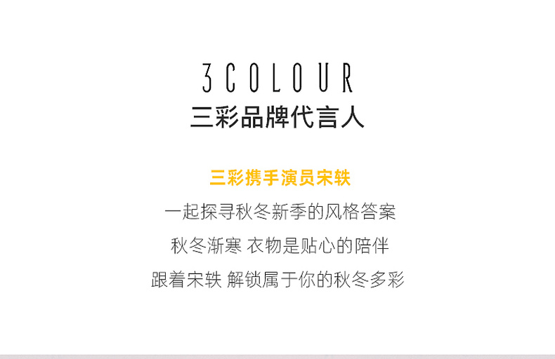 - 3COLOUR,一直致力于探索自我与时尚审美,用穿衣哲学折射生活主张,在流动中探寻恒久。