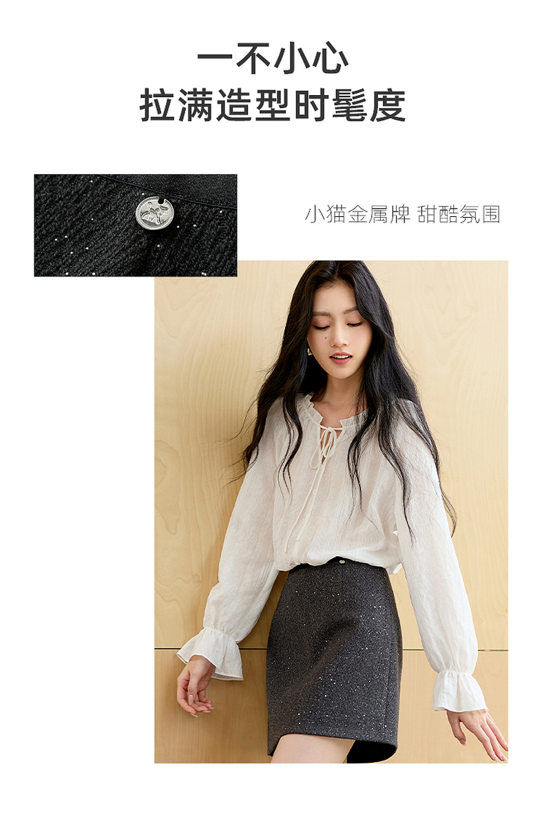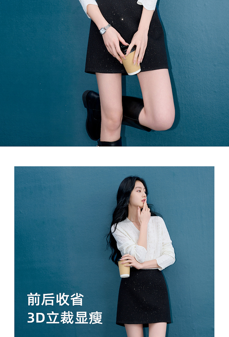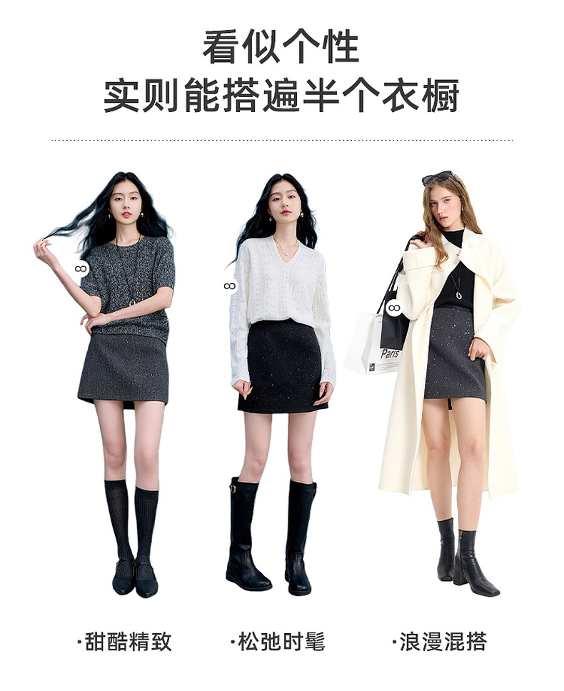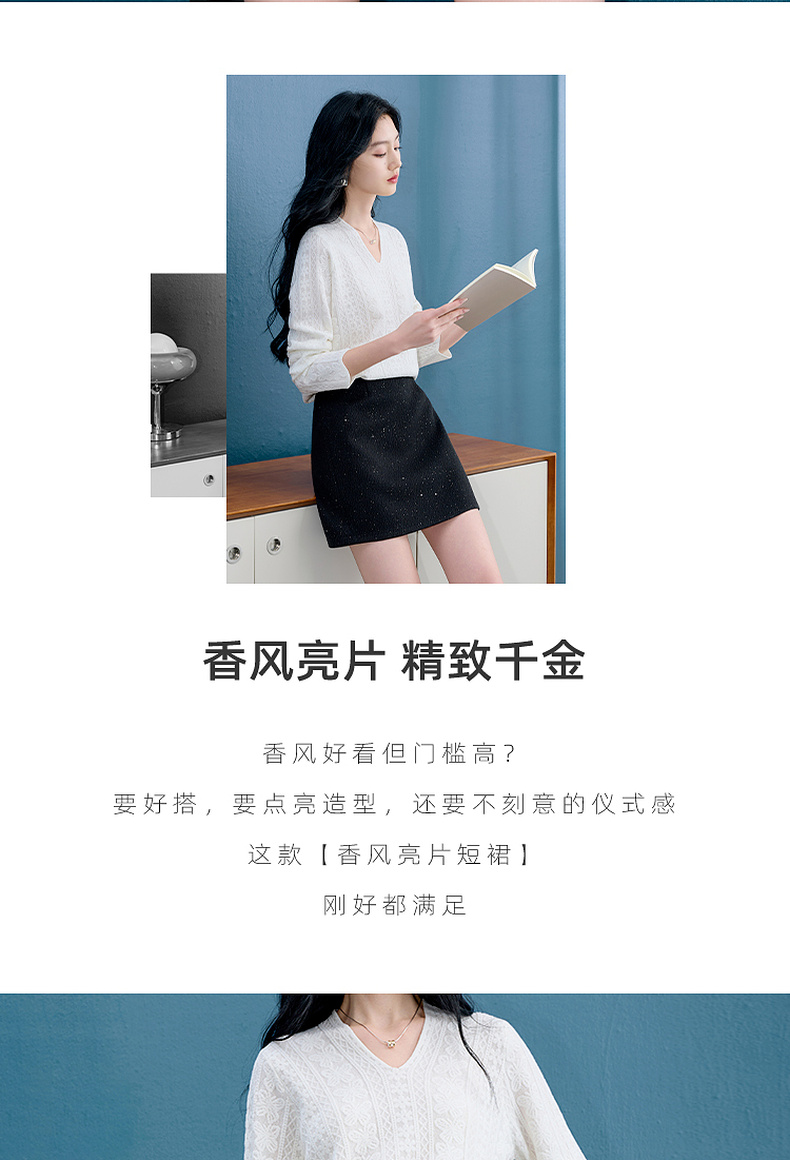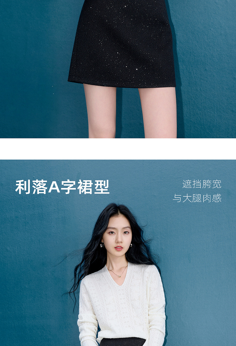 【宋轶同款】三彩2025秋季新款亮片半身裙香风A字裙短裙优雅气质S