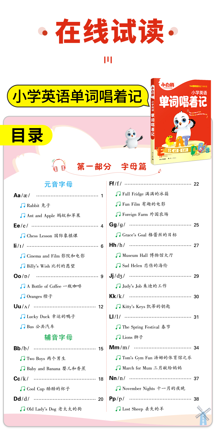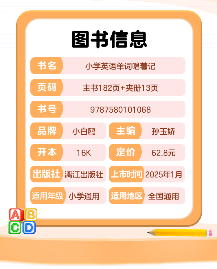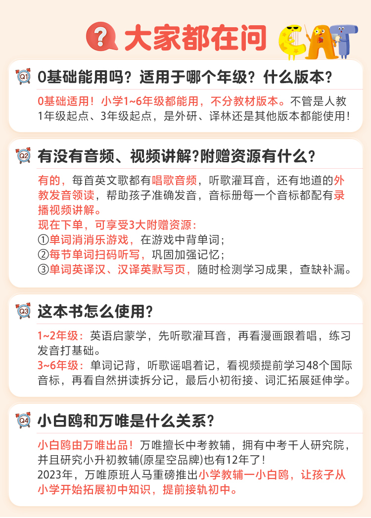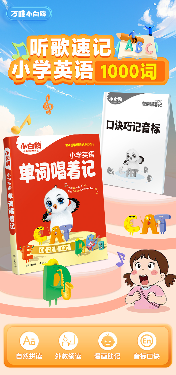 万唯小白鸥2025新小学英语词汇自然拼读单词唱着记学音标专项训练