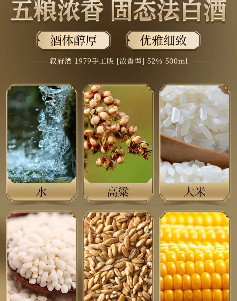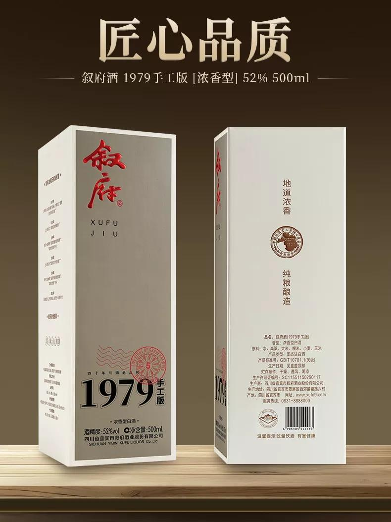 【直播热销】叙府 1979手工版 浓香型白酒 52度 500ml*6瓶整箱