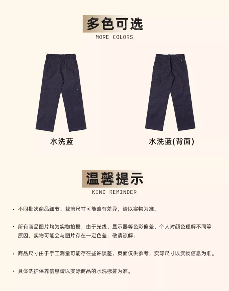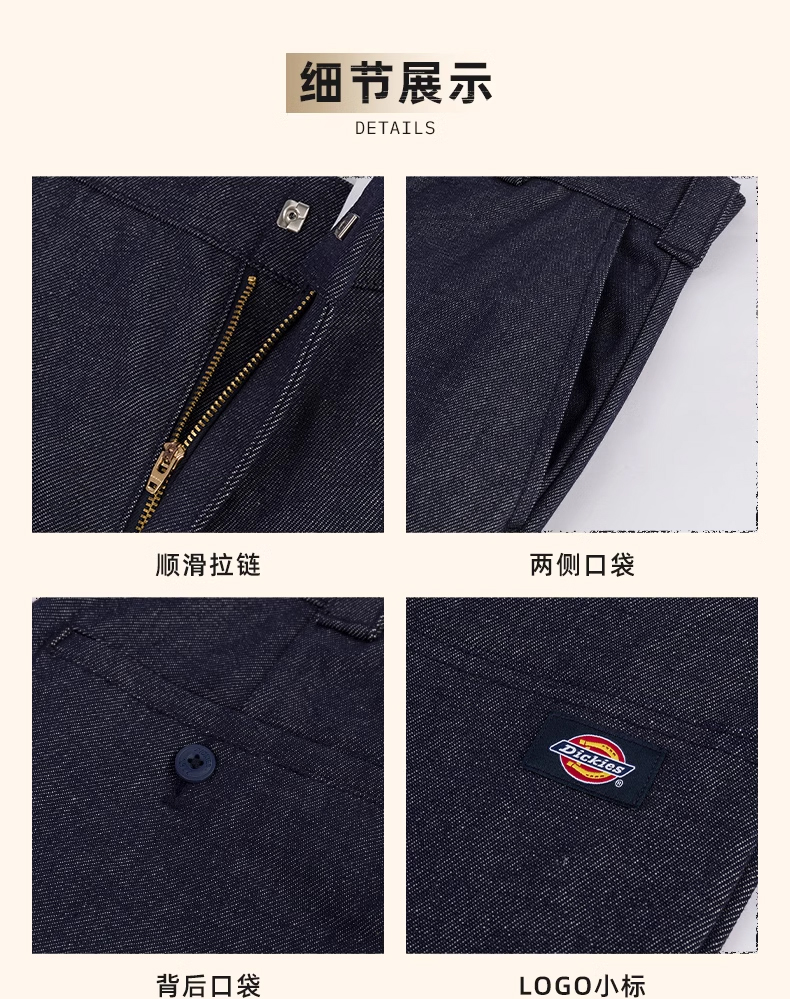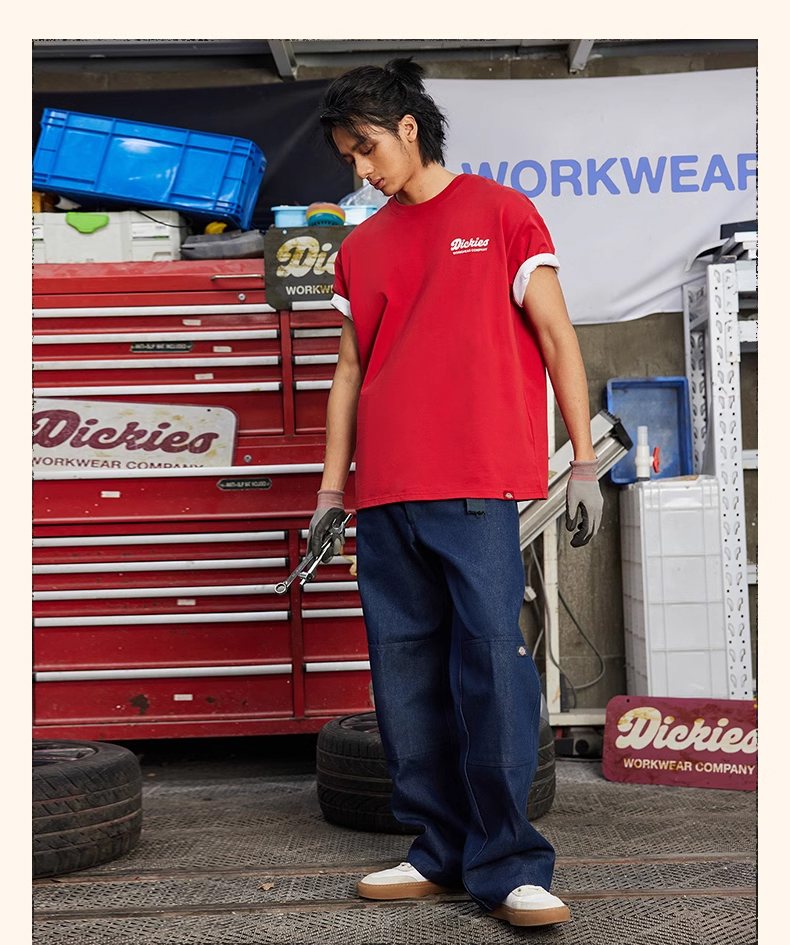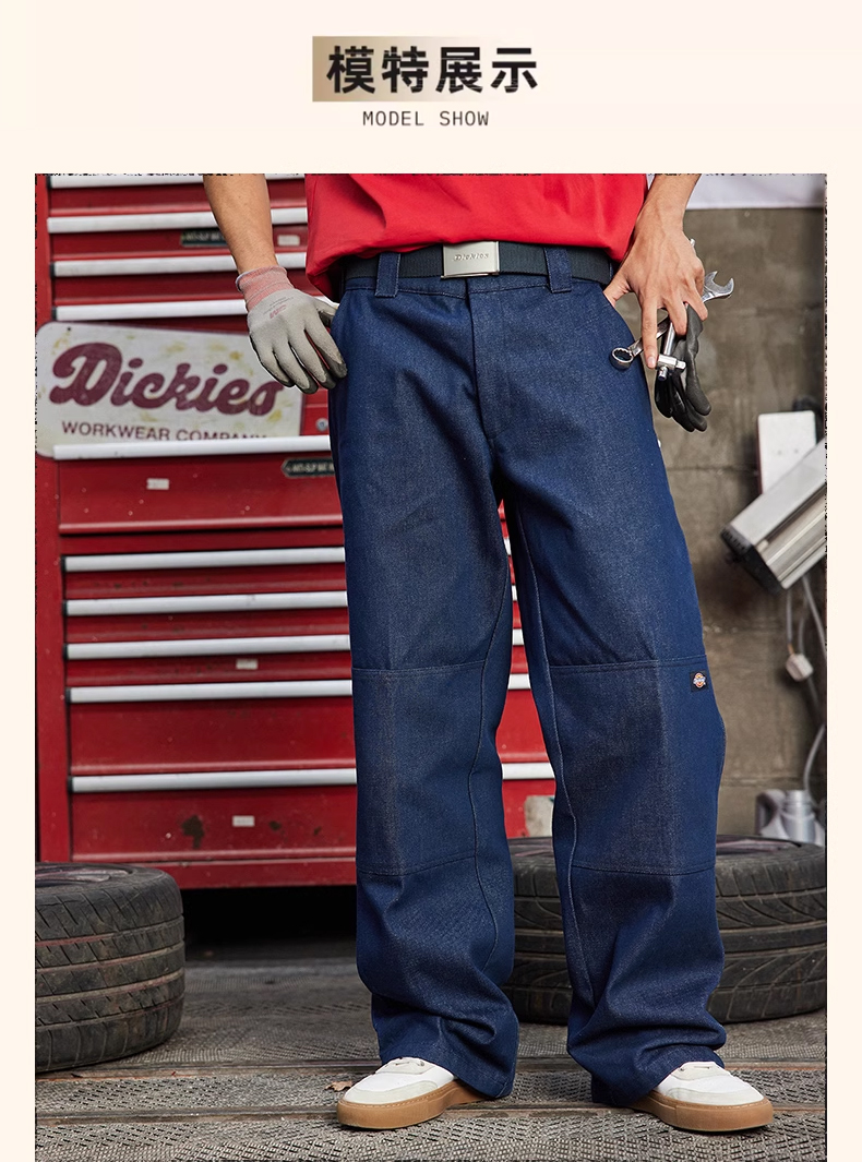 Dickies春夏水洗牛仔双膝裤宽松廓形工装风牛仔裤男女情侣直筒长裤