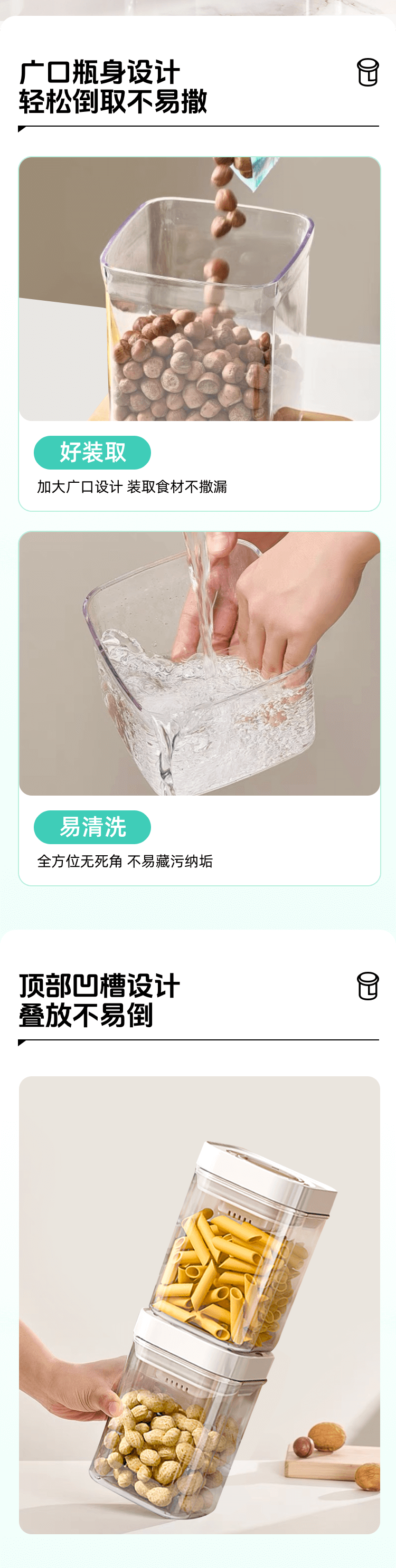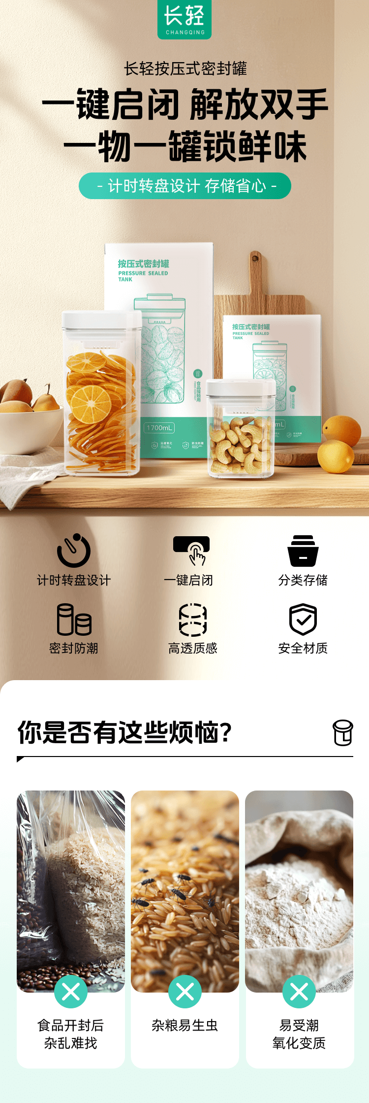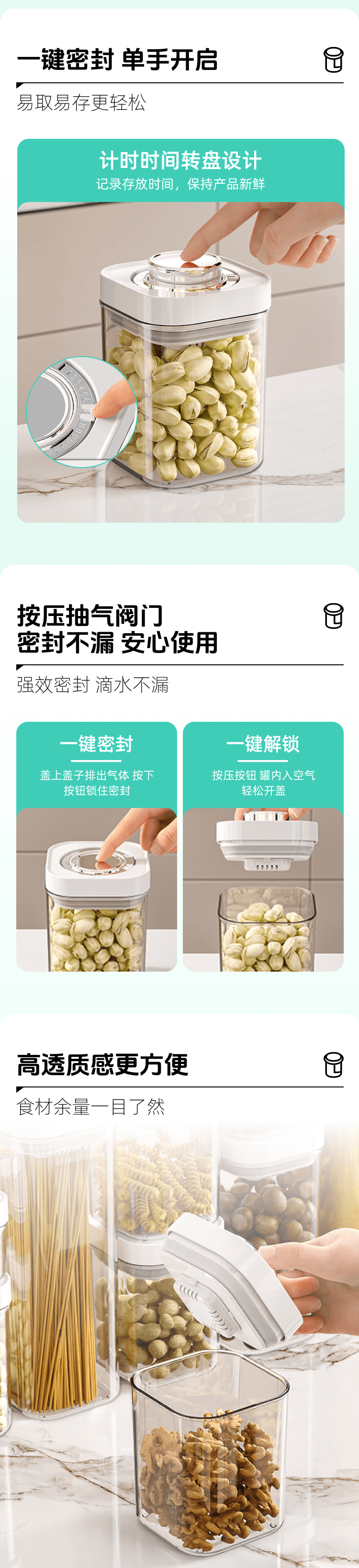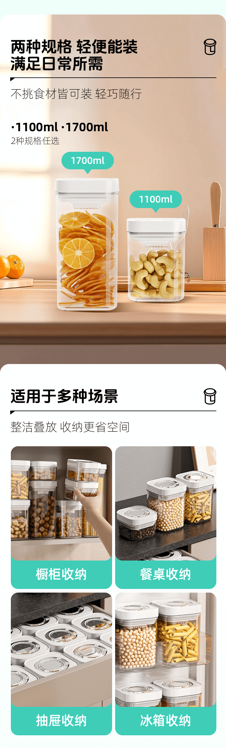 【密封防潮】长轻 按压式密封罐 1100/1700ml*1罐 一键启闭解放双手