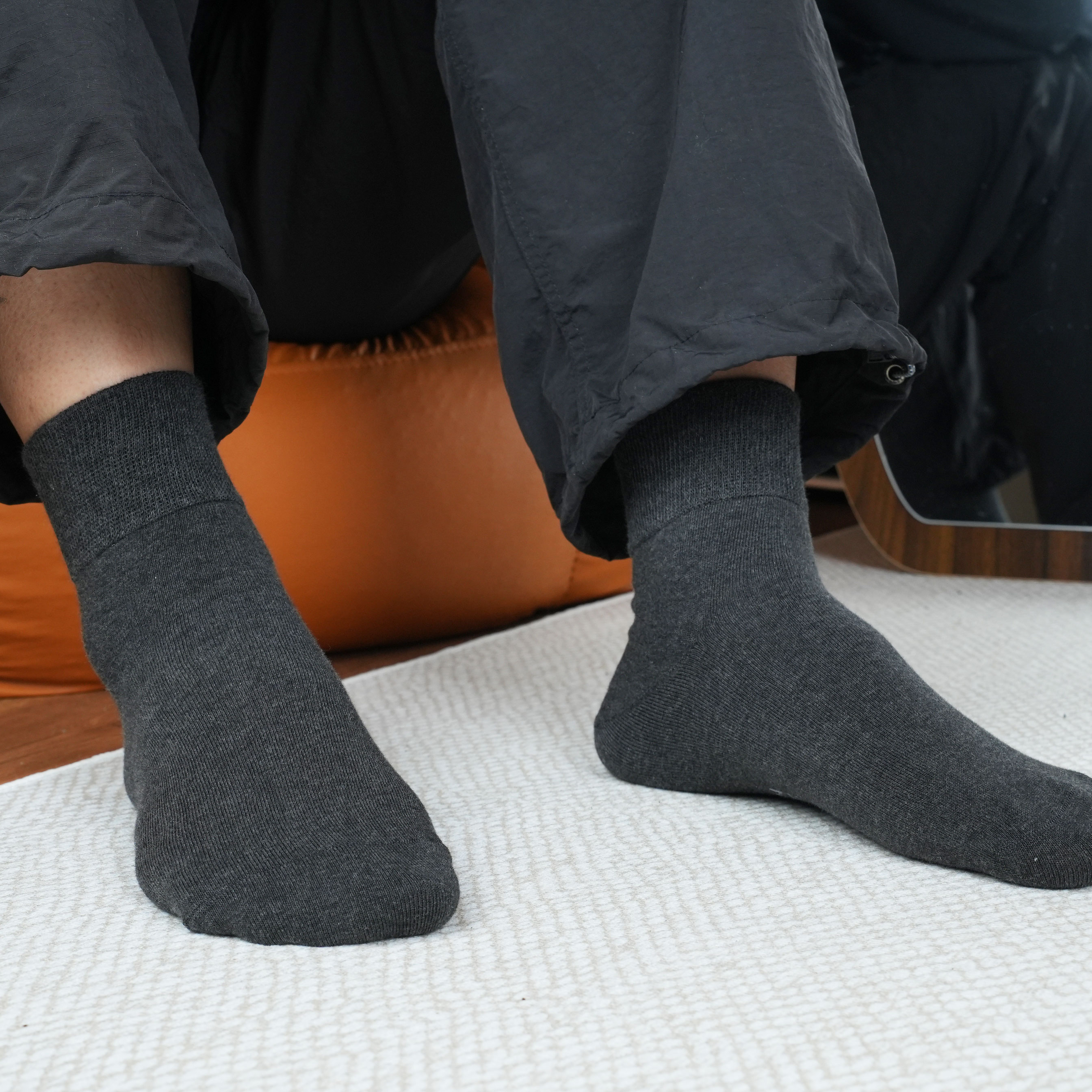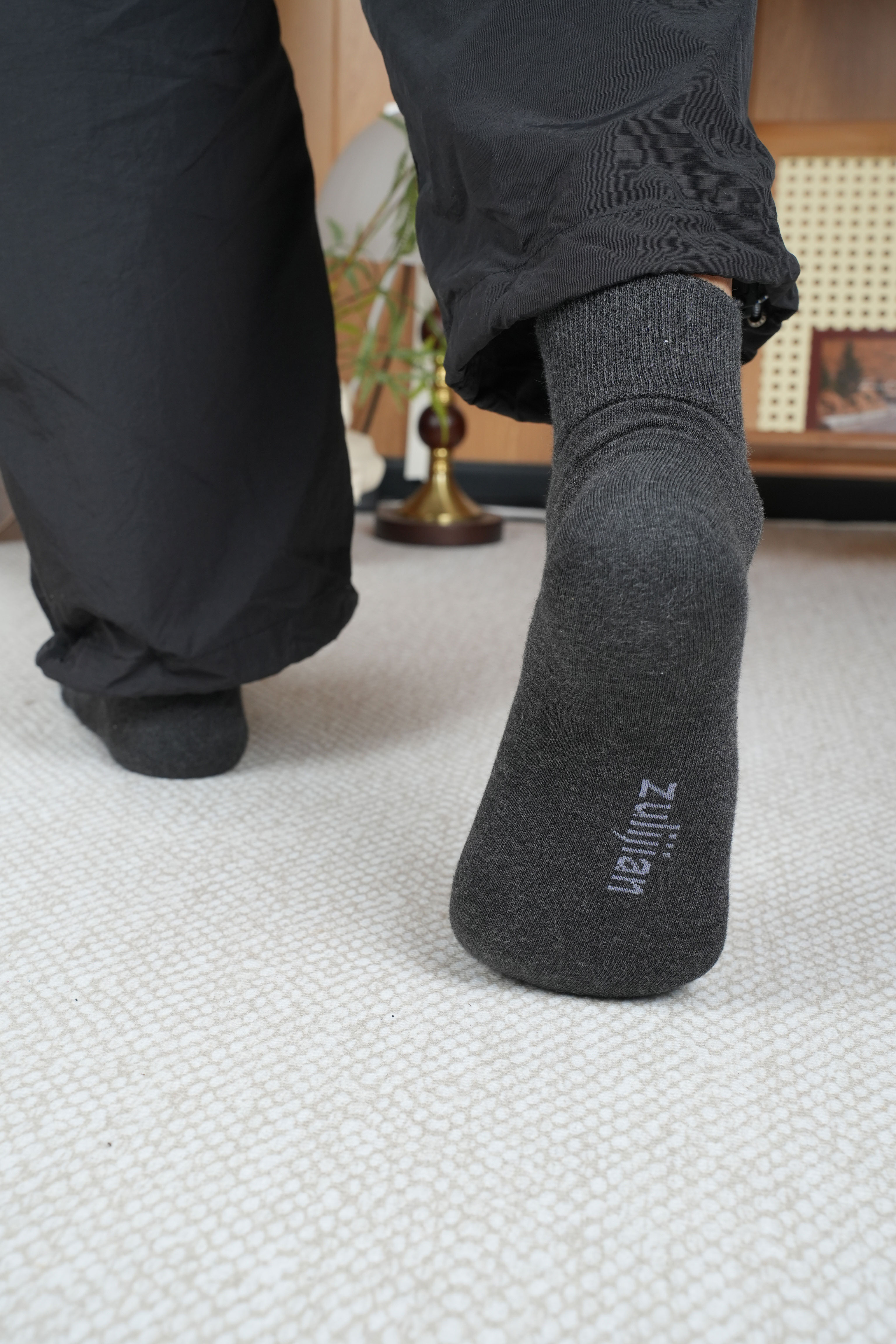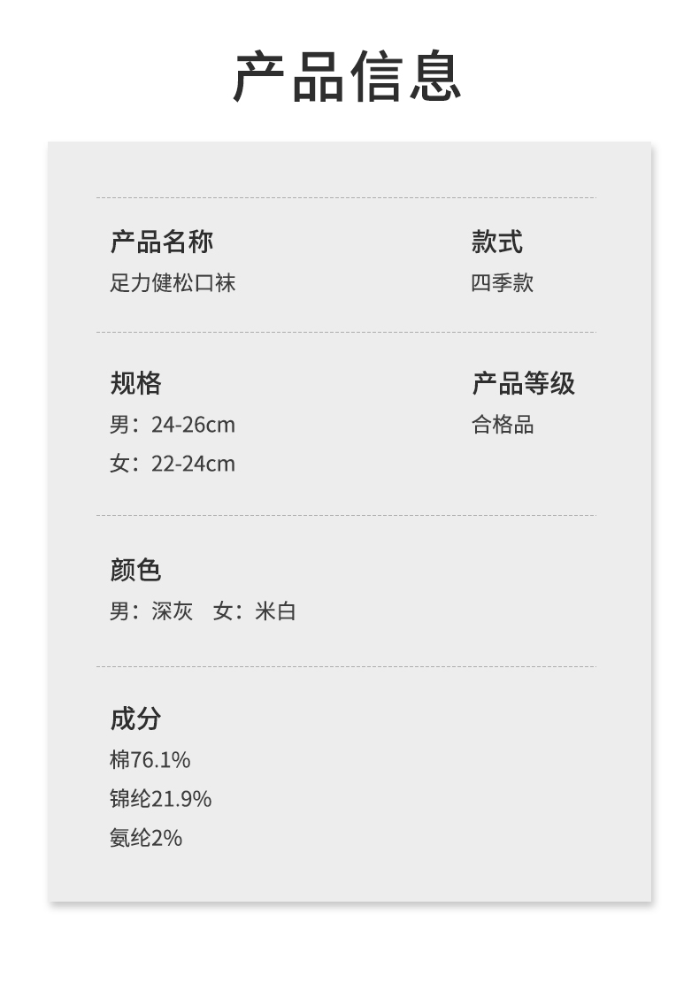 【四季款】足力健 松口袜(6双装)深灰色/米白色