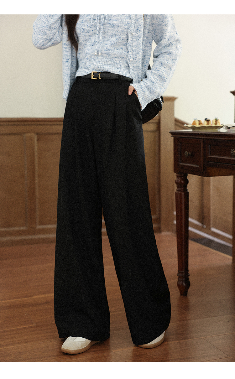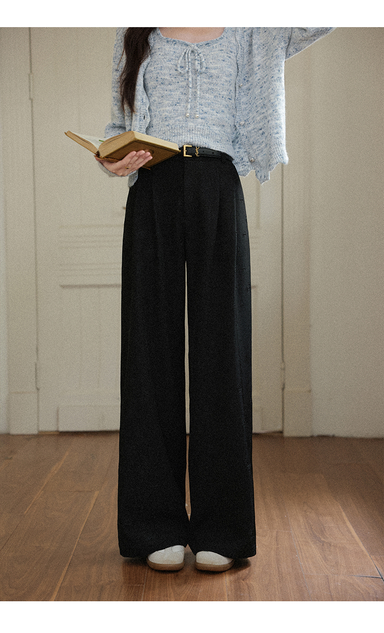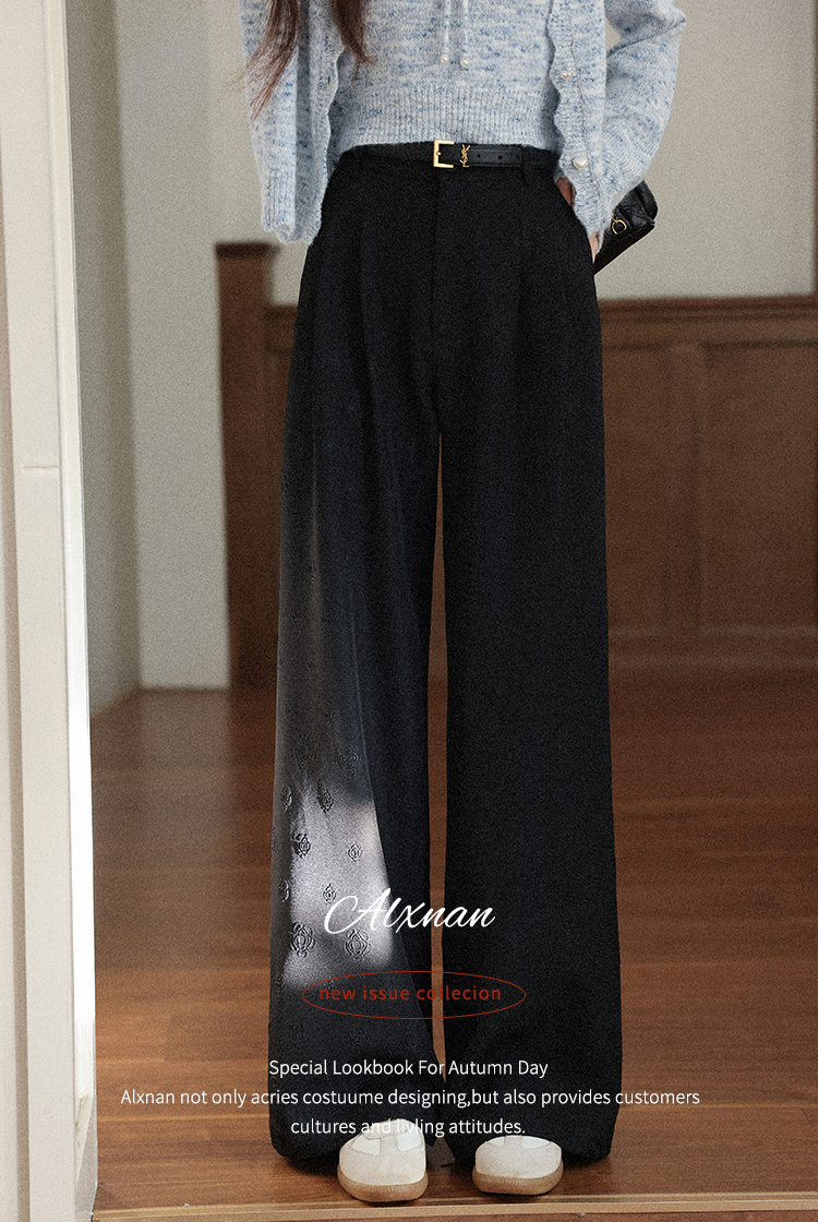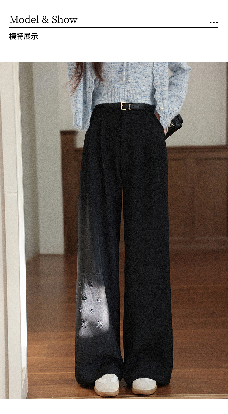 鹿向南「秋日山茶」黑色提花宽松直筒休闲裤女初秋显瘦垂感阔腿裤