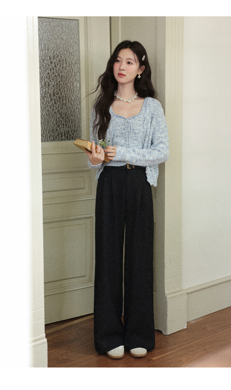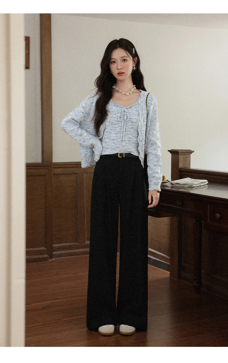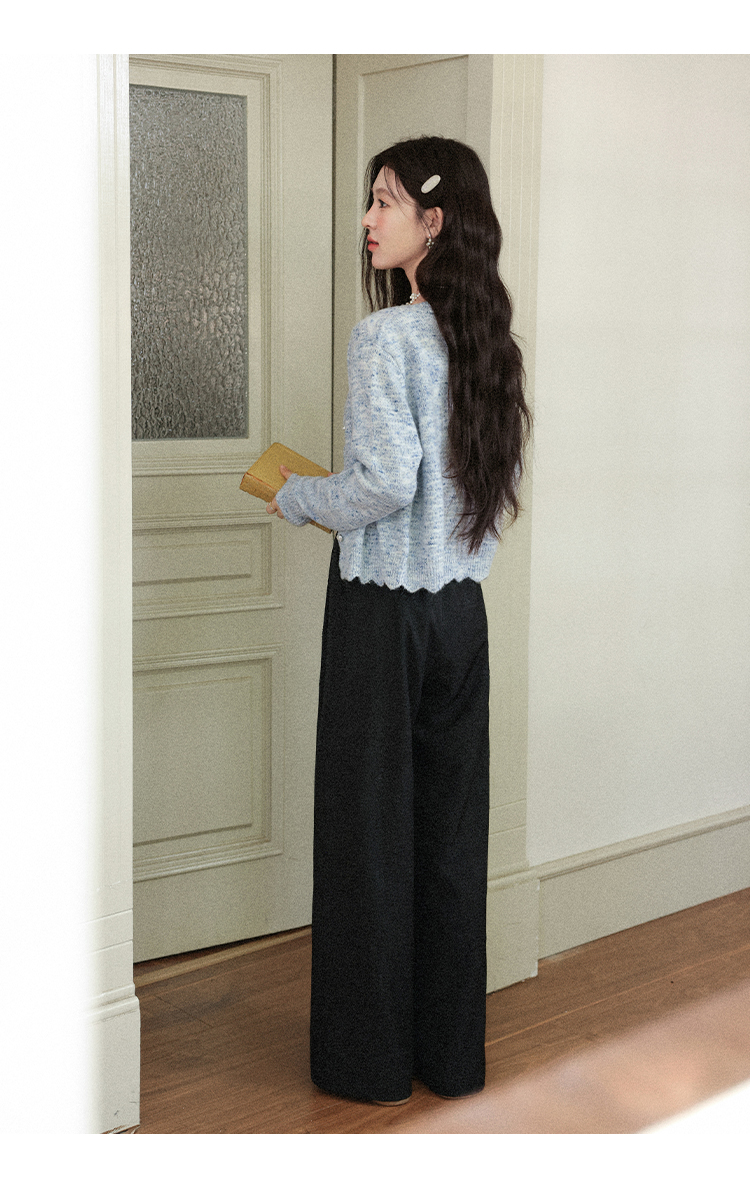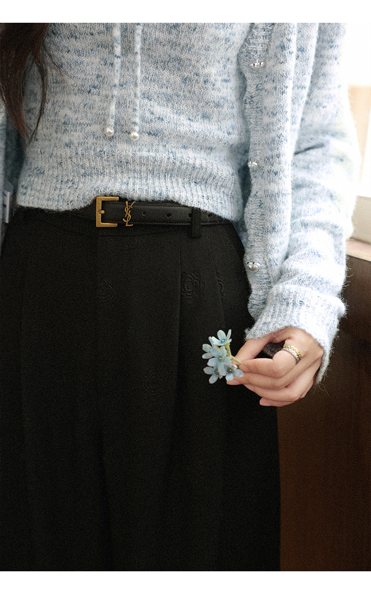 鹿向南「秋日山茶」黑色提花宽松直筒休闲裤女初秋显瘦垂感阔腿裤