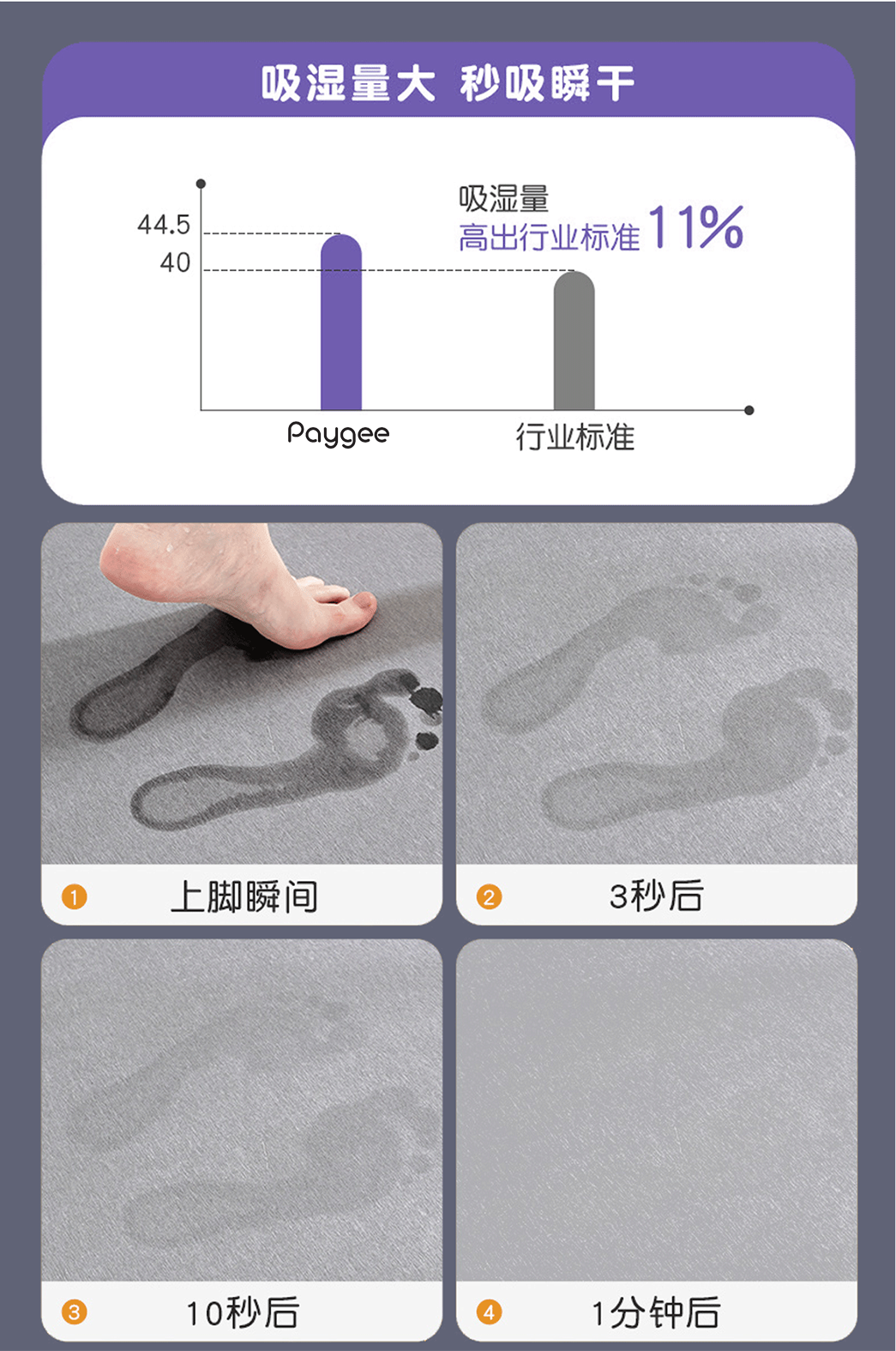 【3秒速干】倍集paygee硅藻泥吸水脚垫