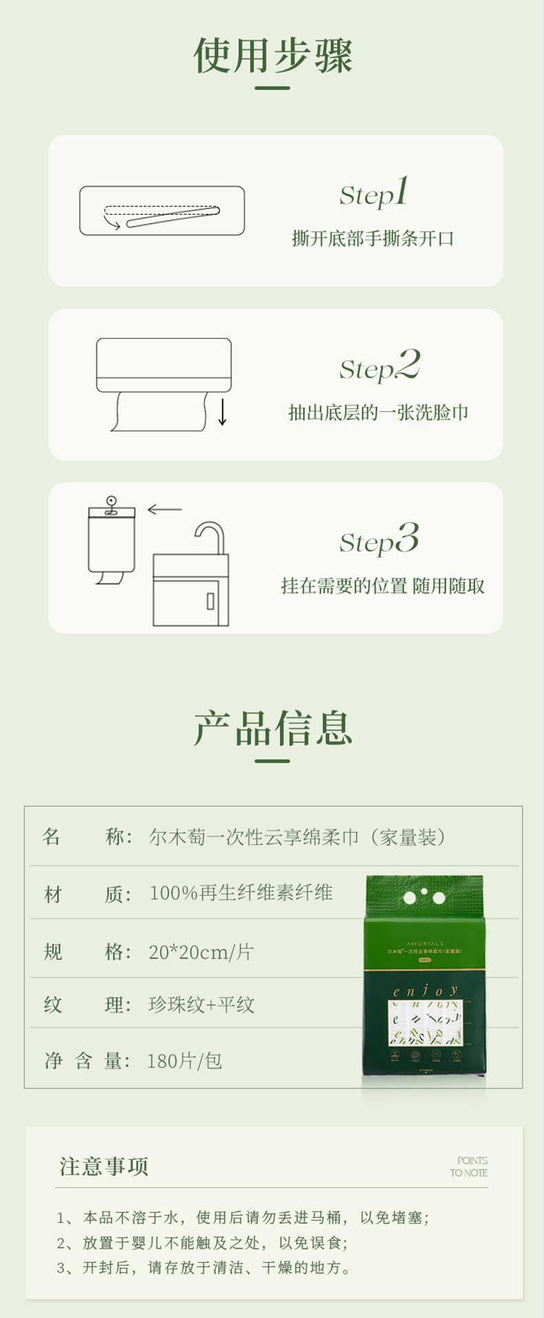 尔木萄 一次性云享绵柔巾(家量装)180抽*3包