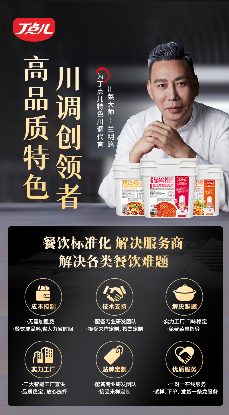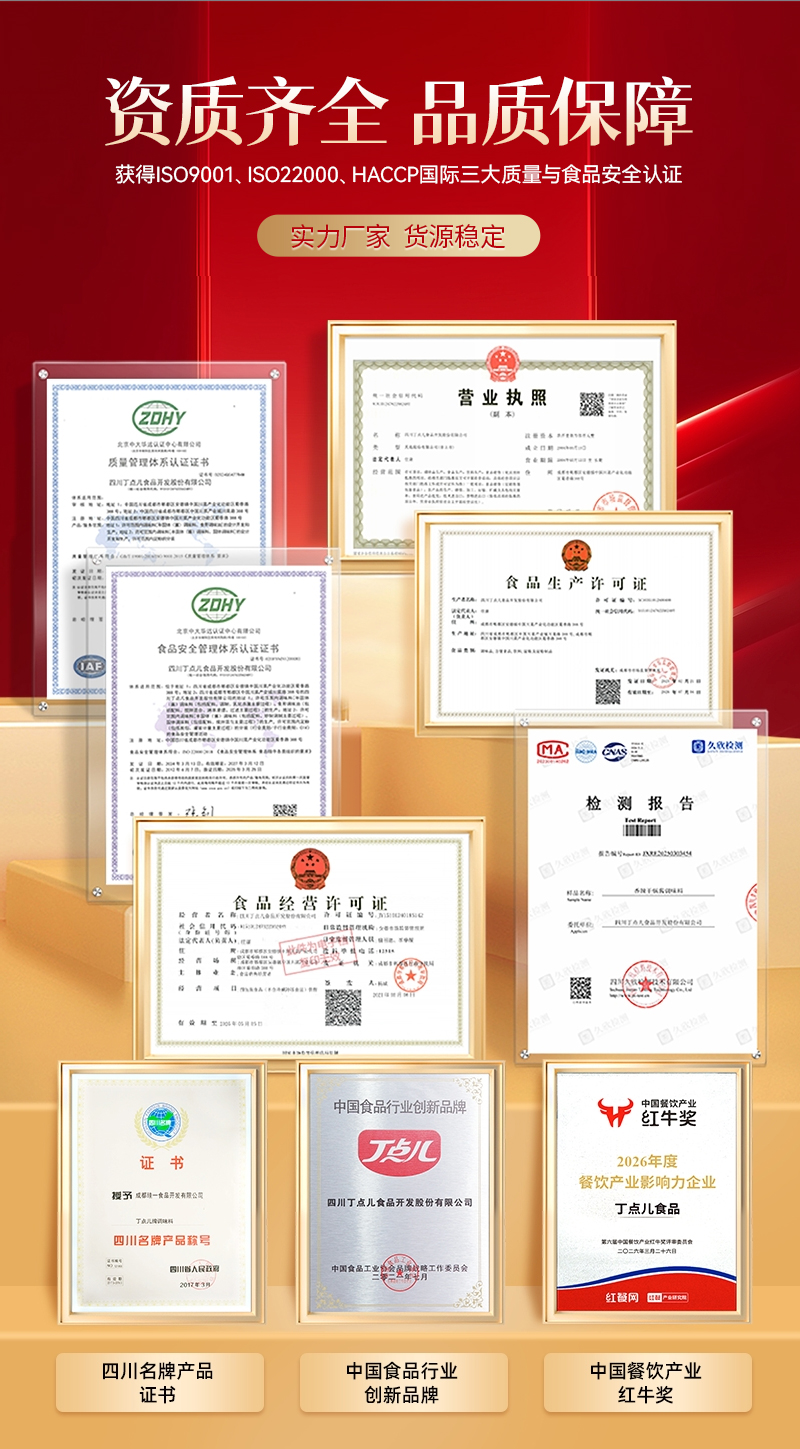 四川丁点儿食品开发股份有限公司,是集川菜调味料研发、生产、销售、服务为一体的现代化企业,专注为餐饮客户提供川菜调味解决方案。公司成立至今,服务了超百万家的餐饮门店以及连锁品牌。