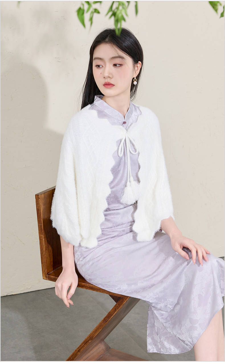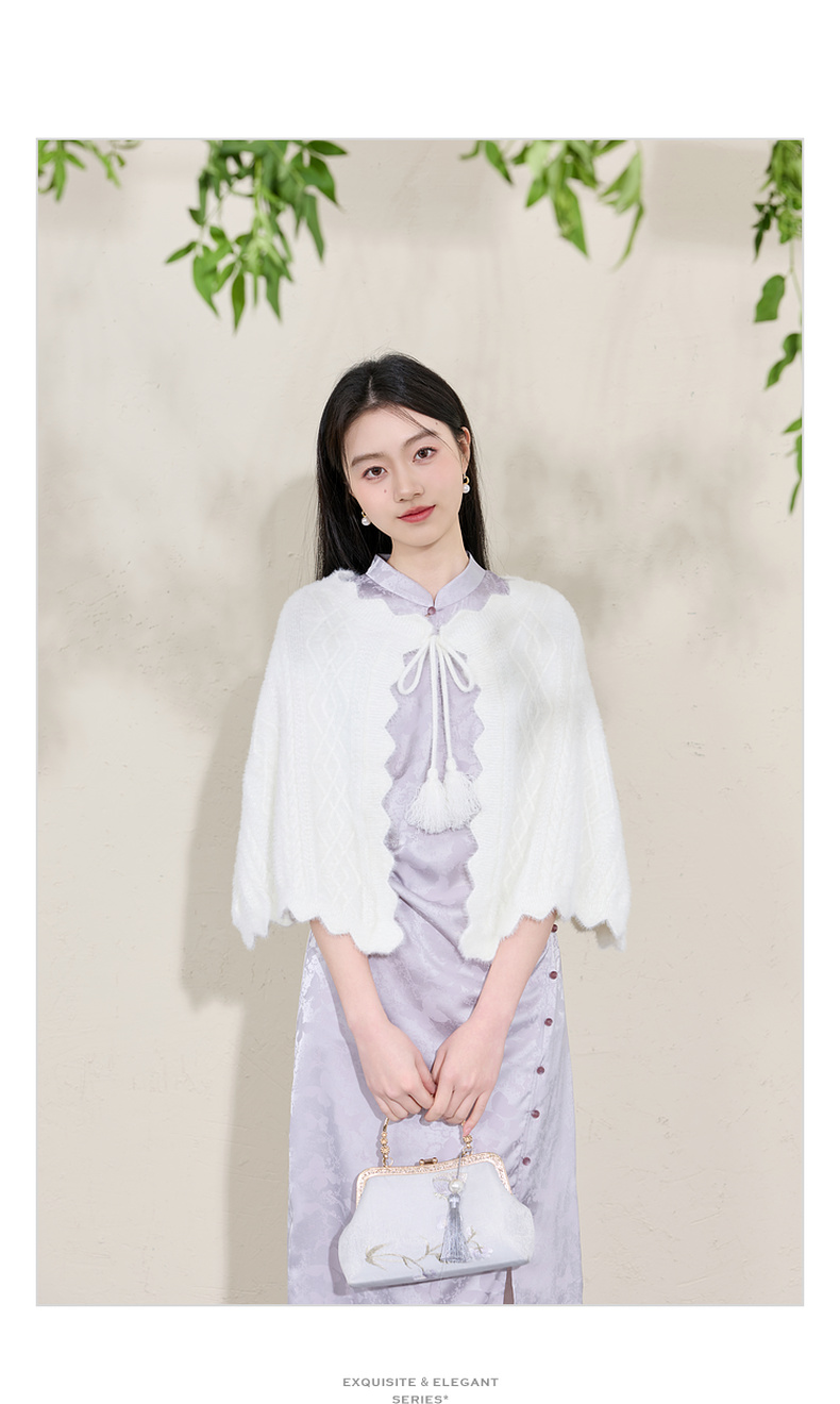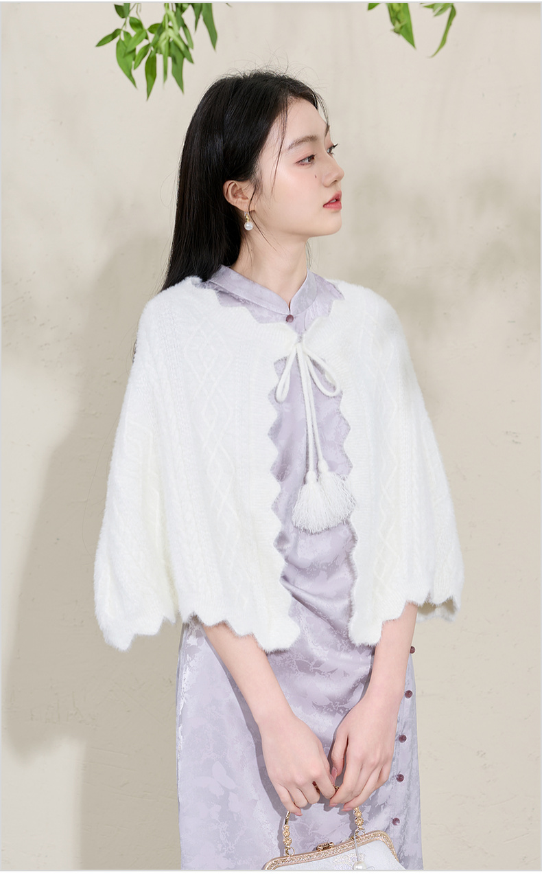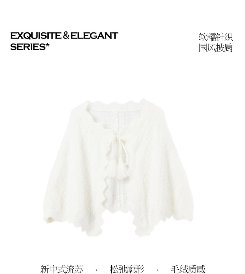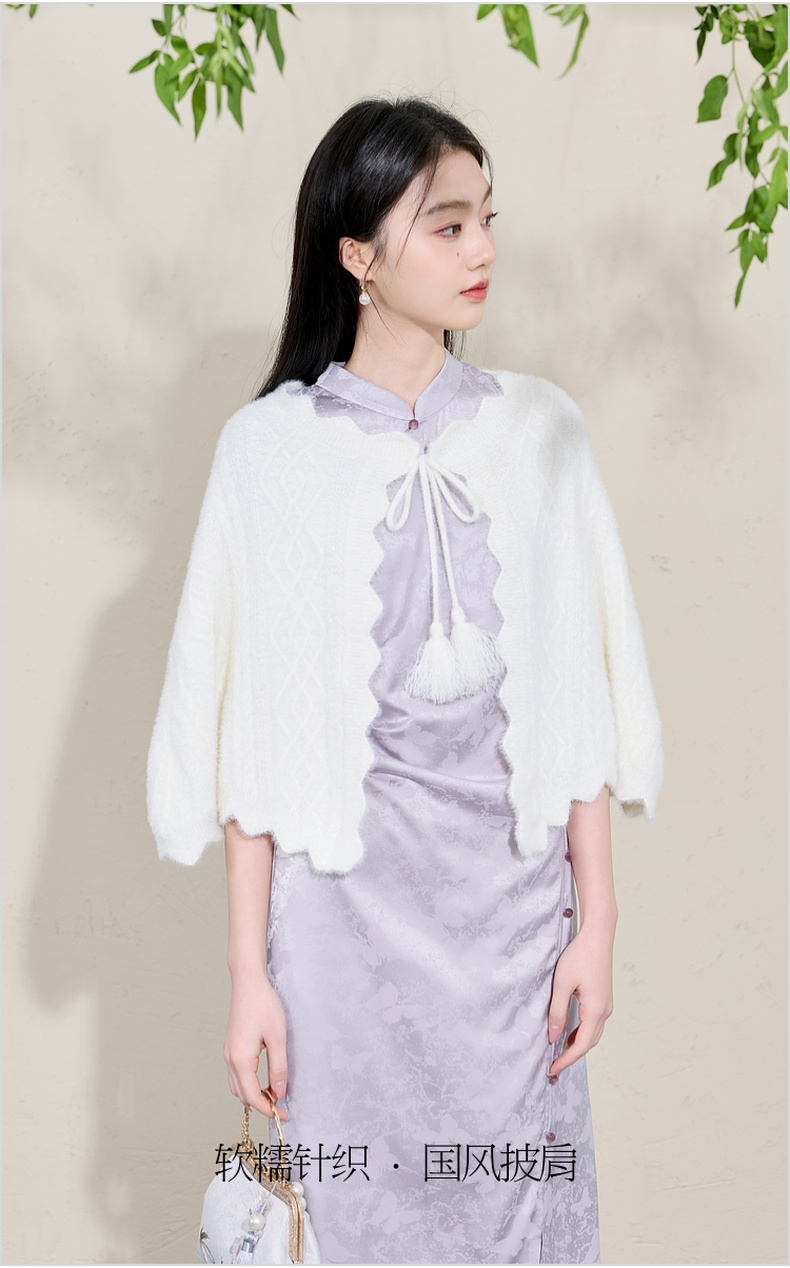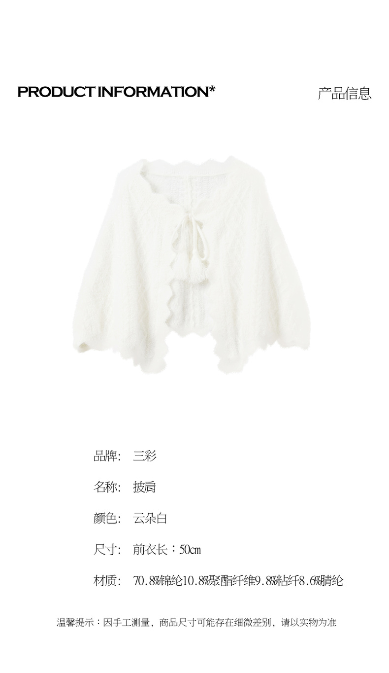 三彩2026新款奶白绒感肌理针织披肩外搭国风流苏氛围感约会宴会女