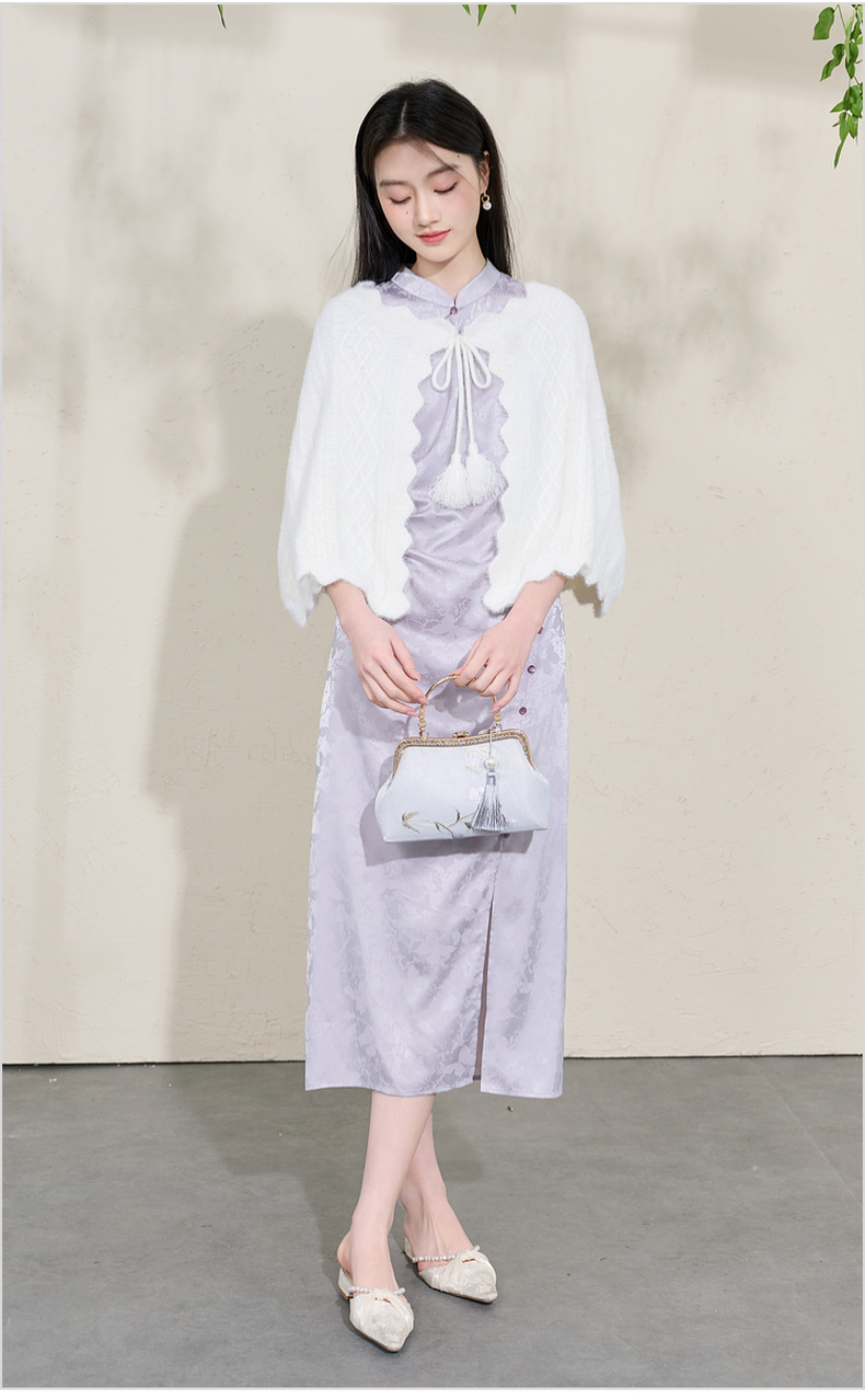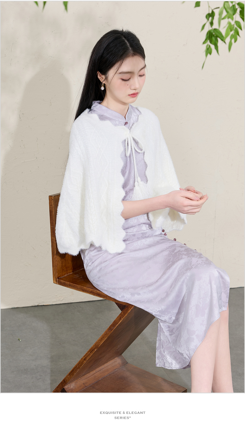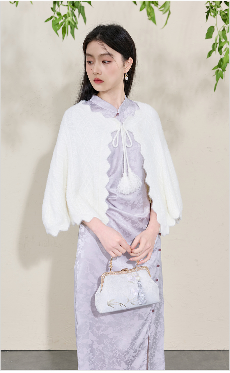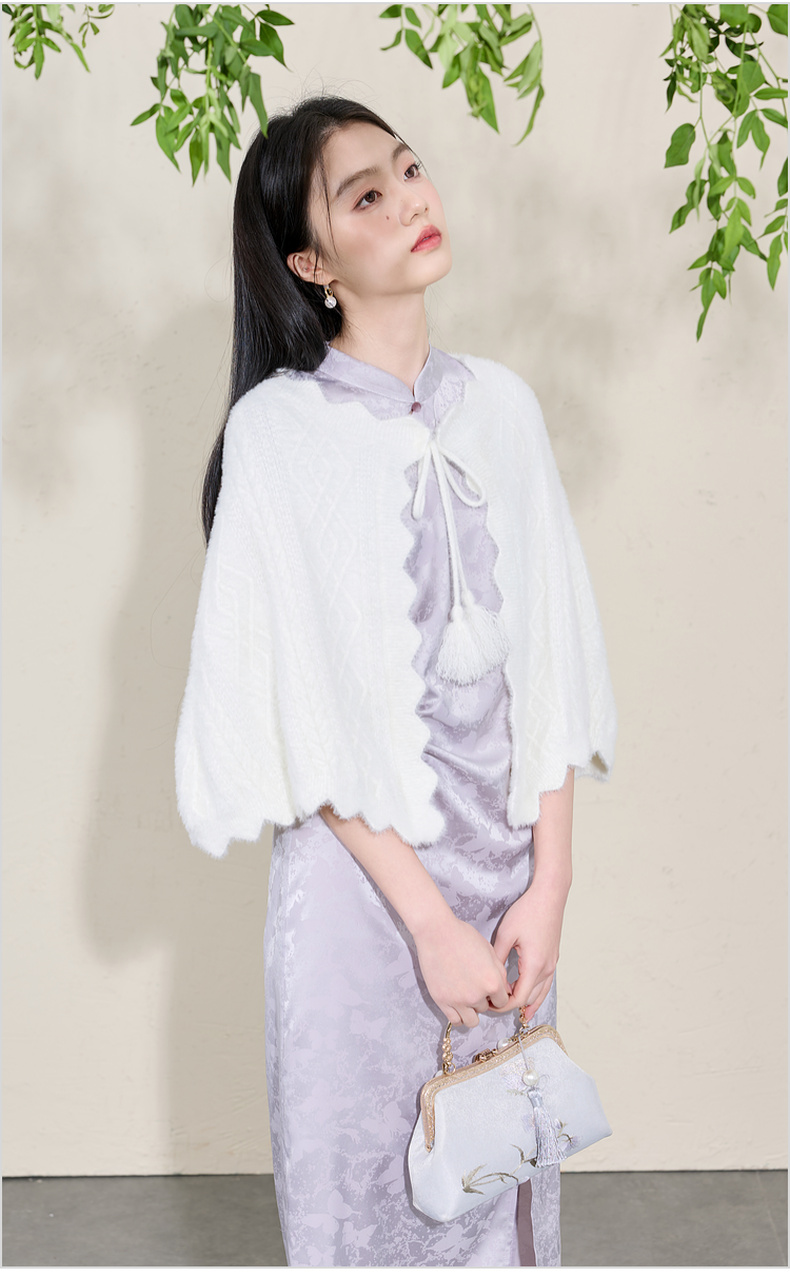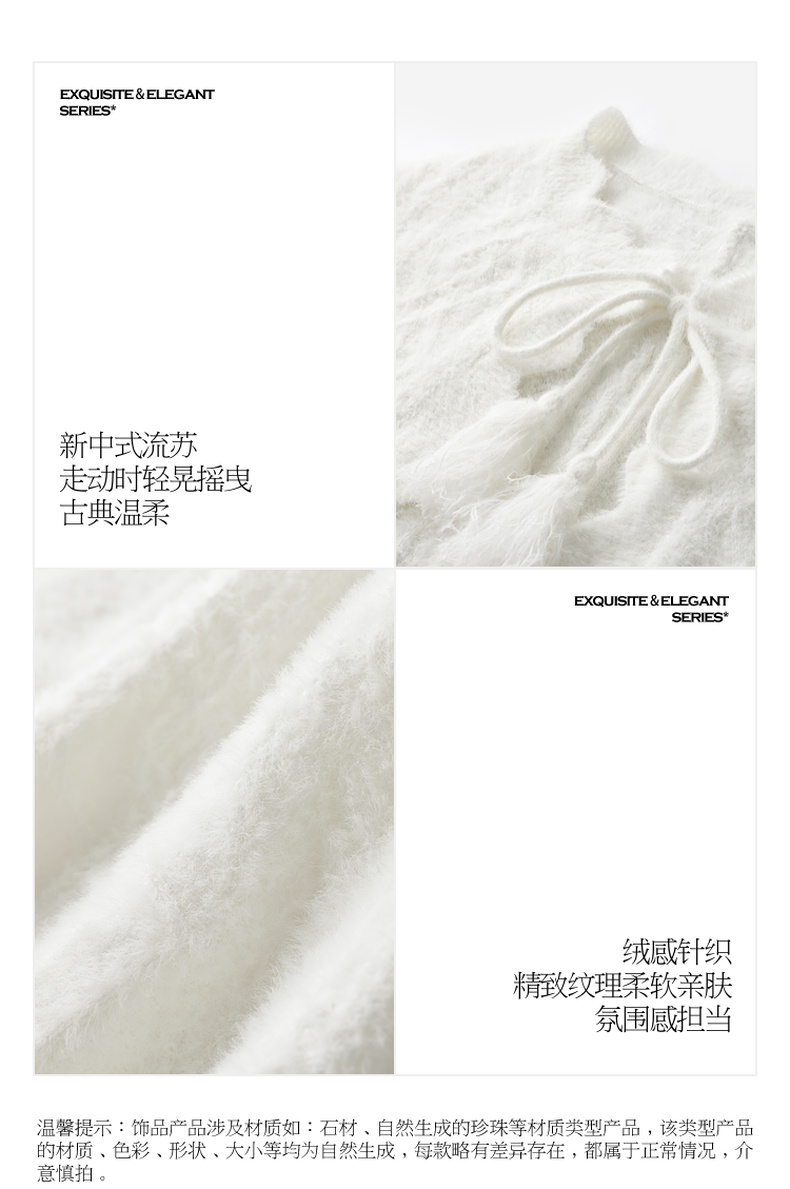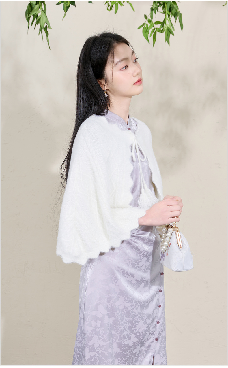 三彩2026新款奶白绒感肌理针织披肩外搭国风流苏氛围感约会宴会女