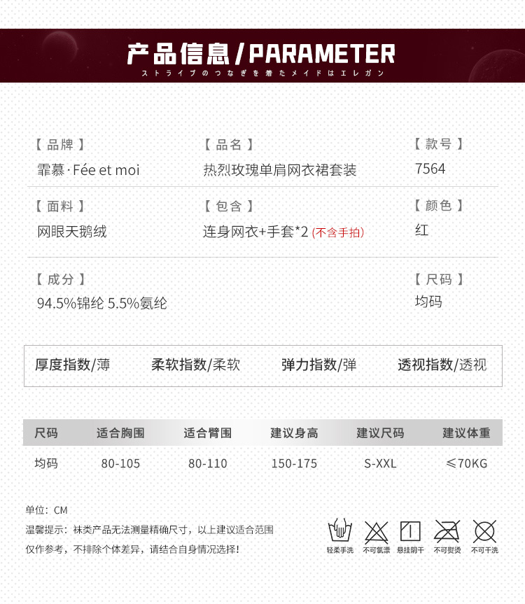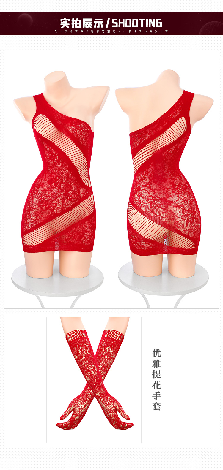 【情趣内衣】霏慕 热烈玫瑰单肩网衣裙连身袜套装7564