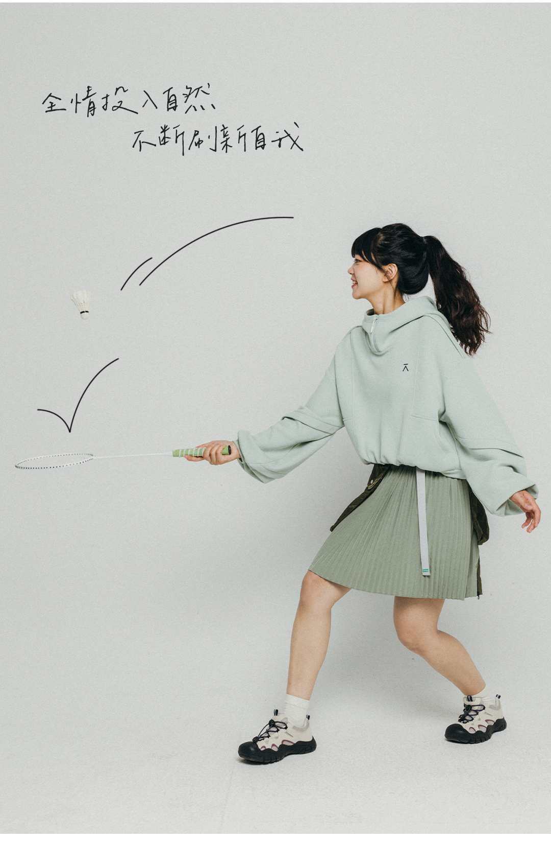 【十一破价福利】ACMEITEM爱棵米 户外空气层运动卫衣连帽宽松可调节下摆上衣女士GAF2310053E