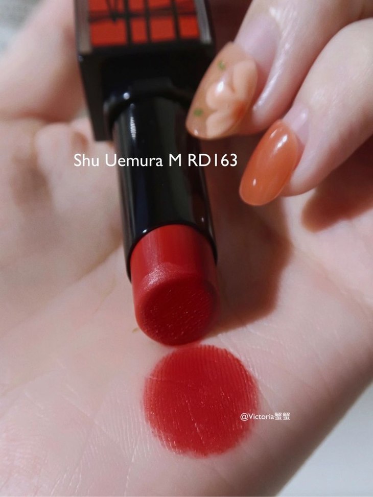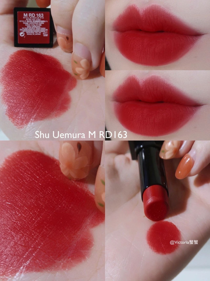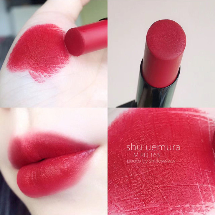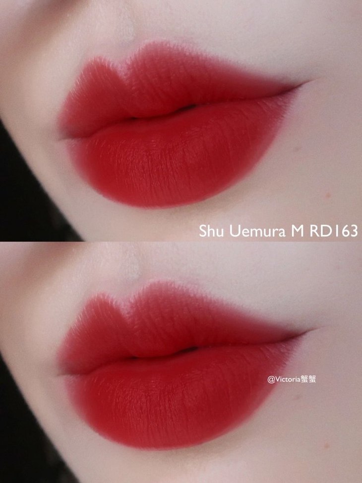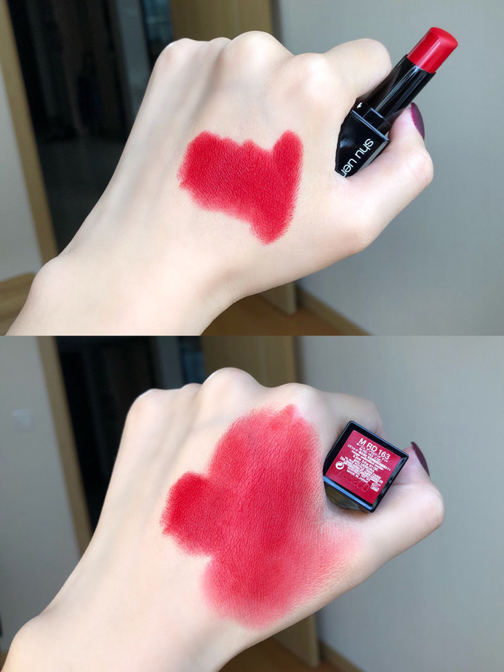植村秀一惯的柔雾质地! !又高级❗又有质感❗ 不偏玫不偏橘的正红色! !显白滋润不拔干!! 神仙色号不挑皮✅ 黄皮/白皮的宝贝们人手必备!