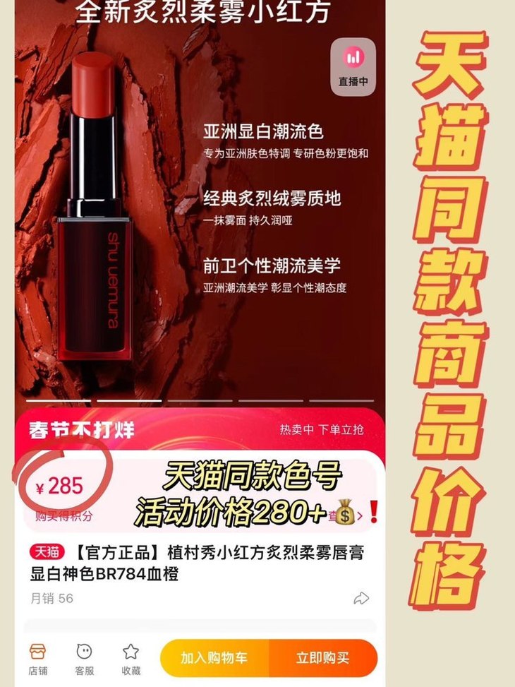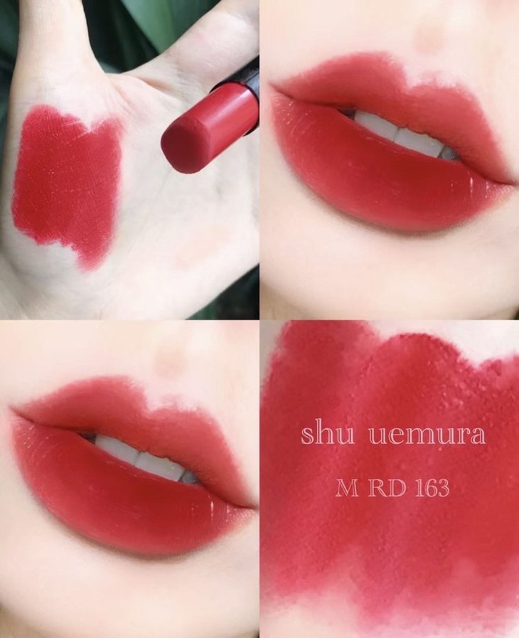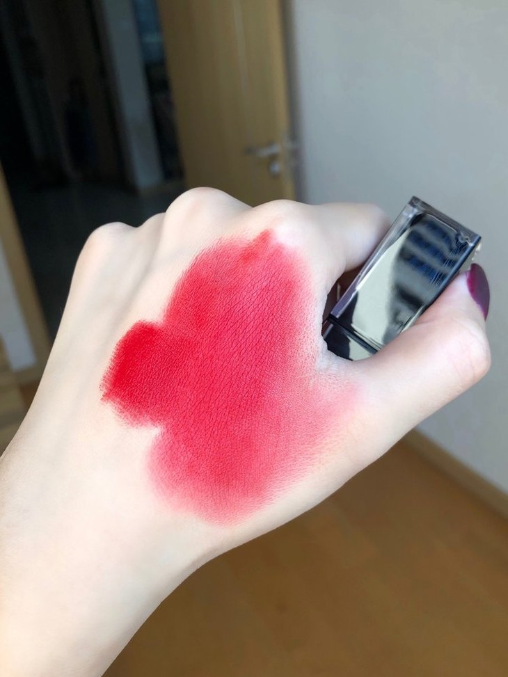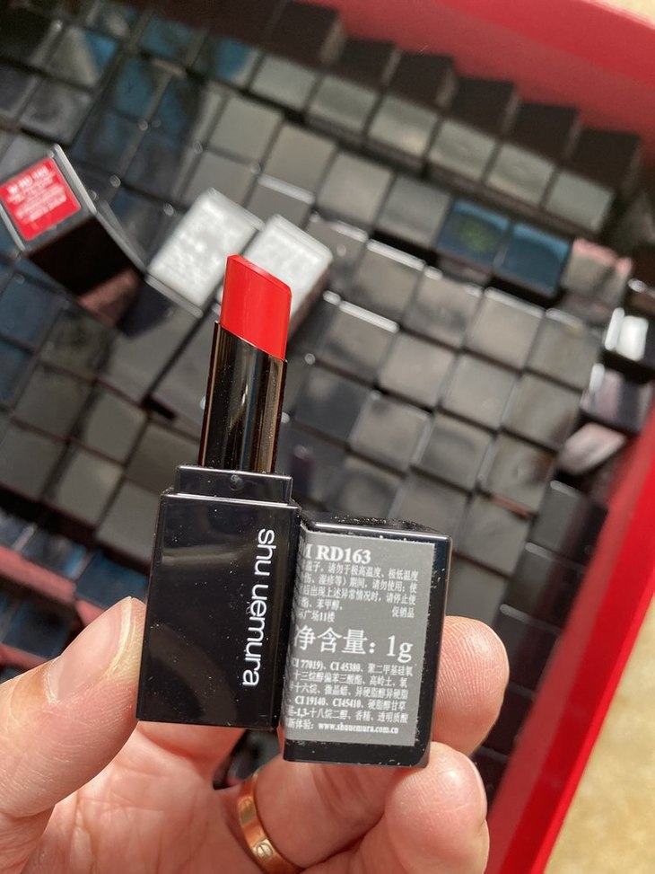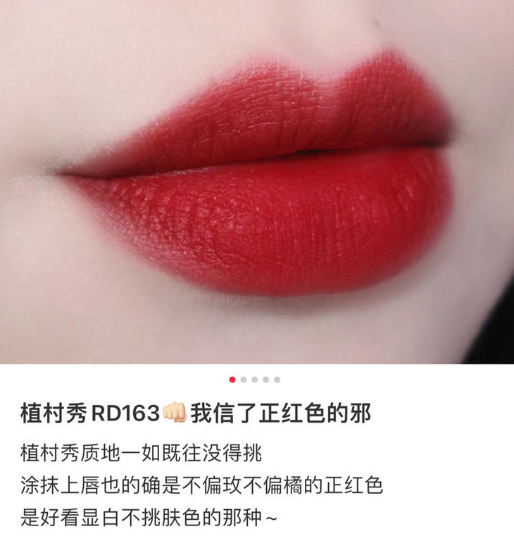 植村秀一惯的柔雾质地! !又高级❗又有质感❗ 不偏玫不偏橘的正红色! !显白滋润不拔干!! 神仙色号不挑皮✅ 黄皮/白皮的宝贝们人手必备!