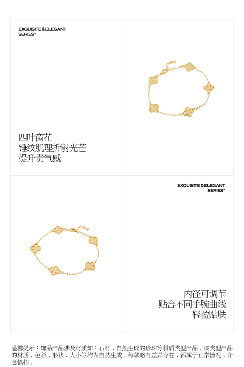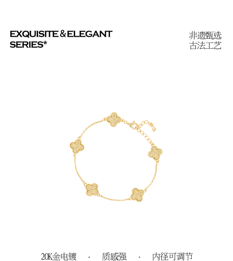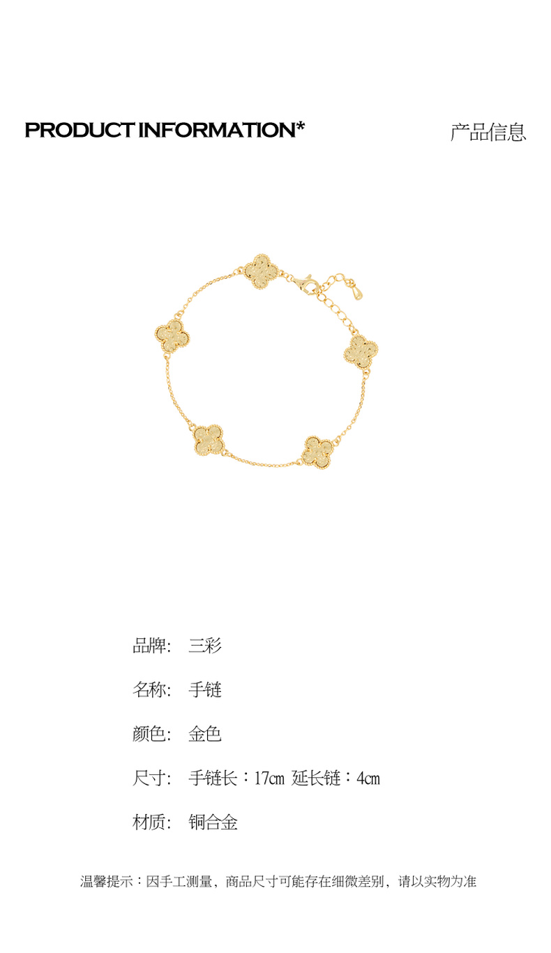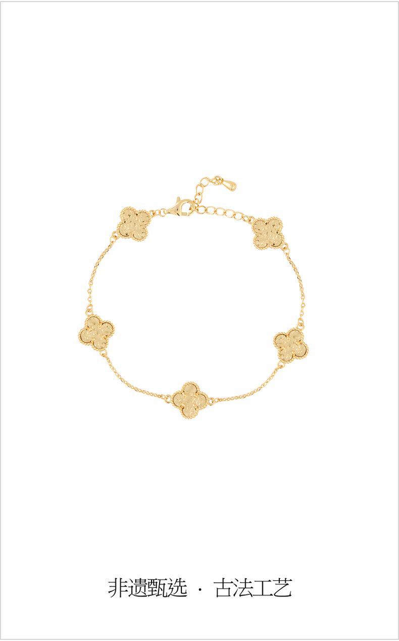 三彩2026新款国风四叶窗花手链锤纹肌理光泽小众轻奢优雅通勤约会