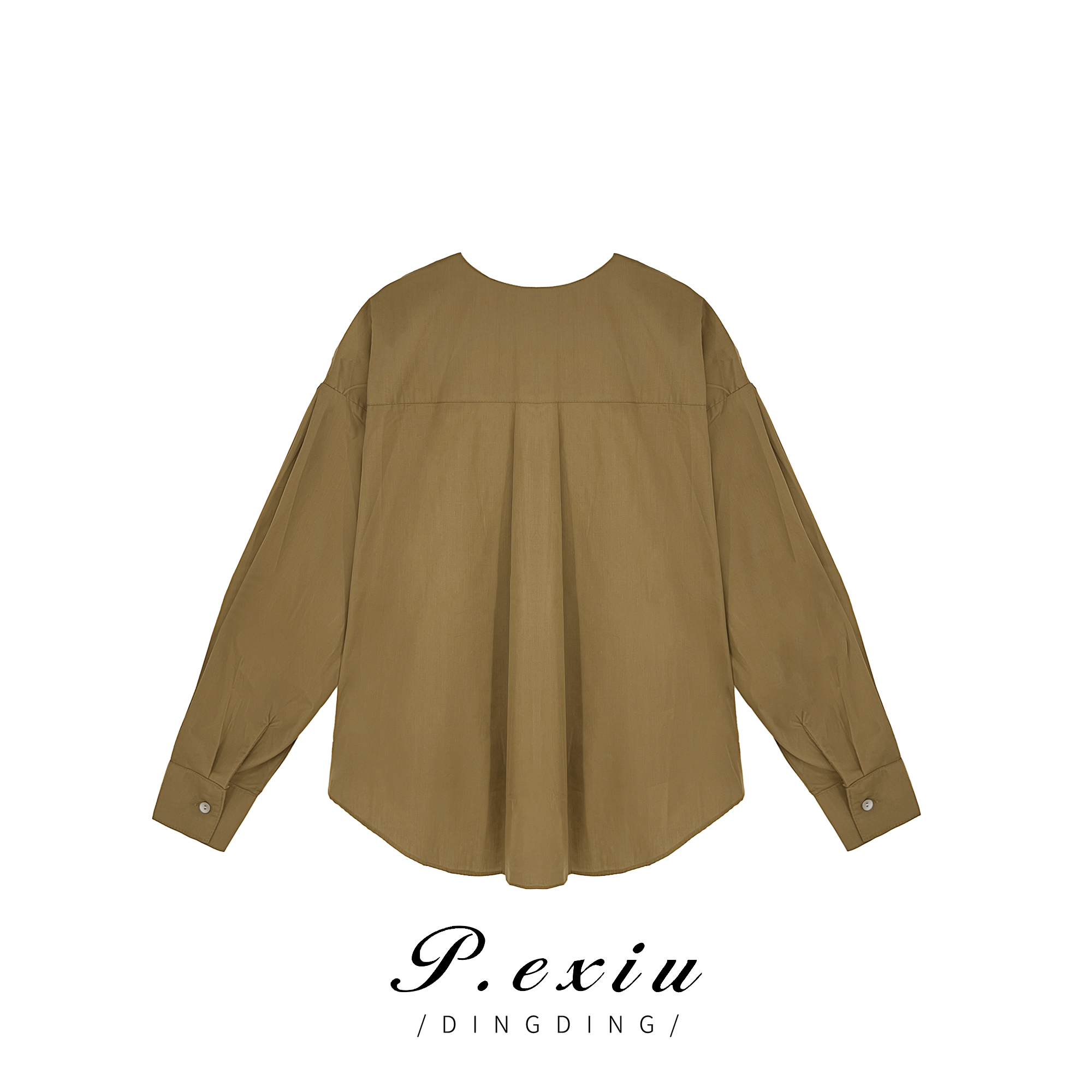 03-3潘依绣丁丁宠粉PanYiXiu/潘依绣秋冬新款极简风宽松简约设计长袖衬衫 K2139