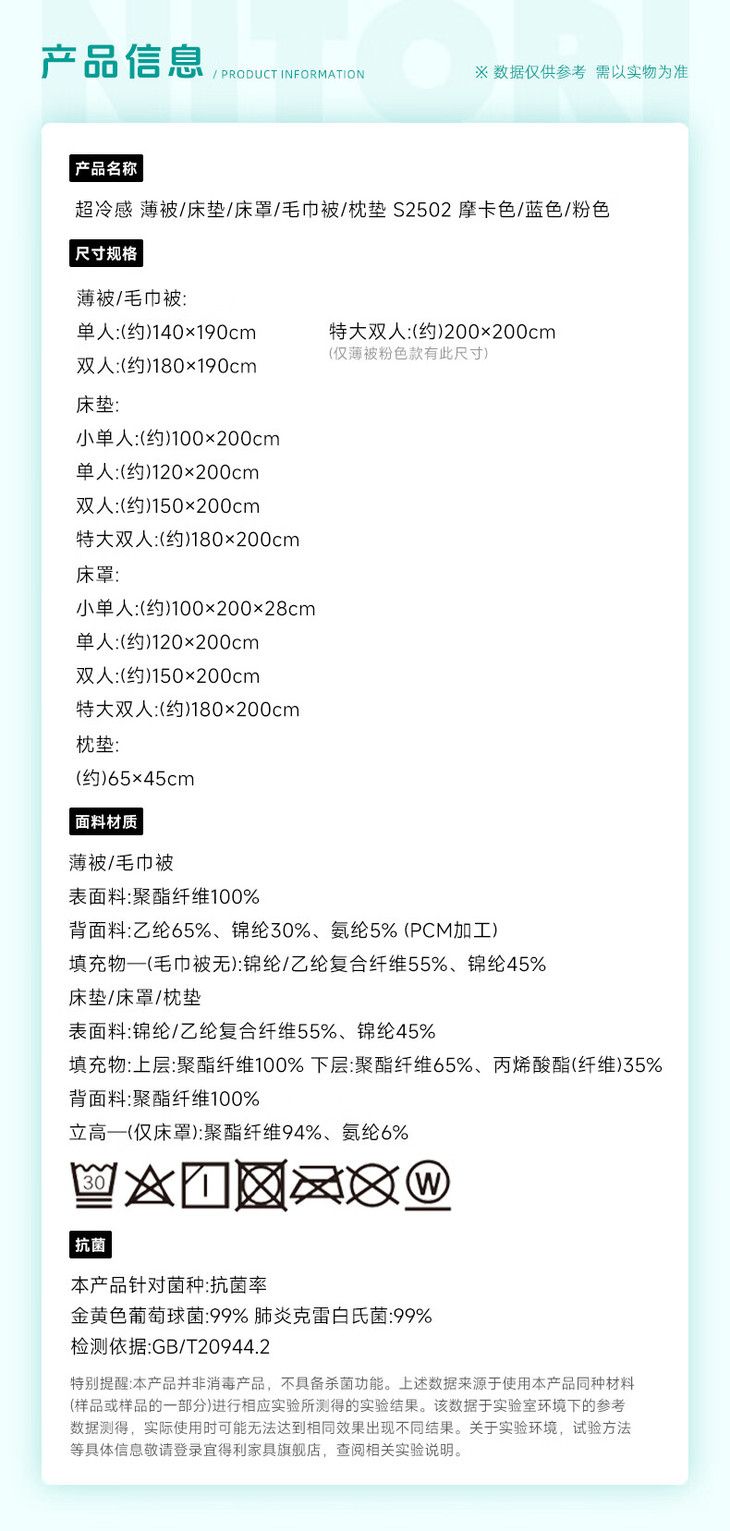 强冷感S2502 蓝色床品系列 薄被/床垫/枕垫 单人/双人/特大双人