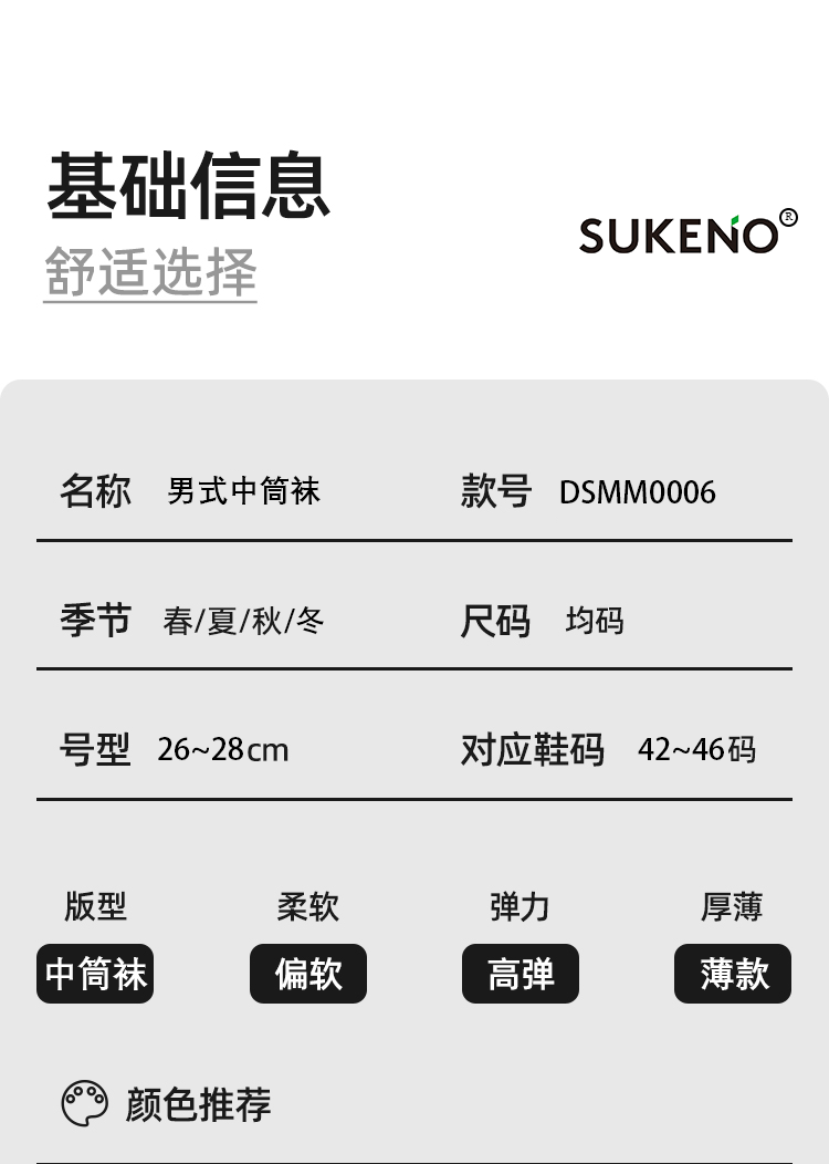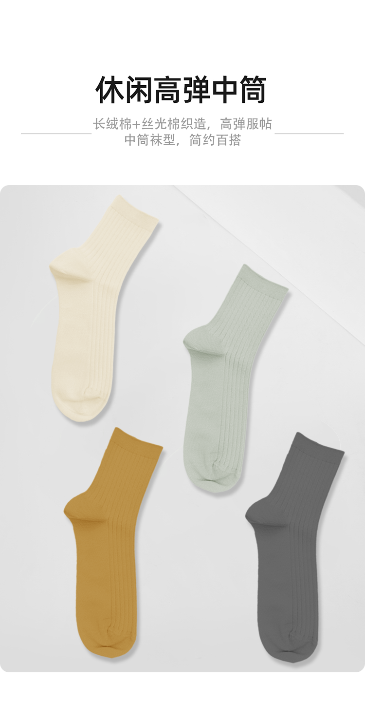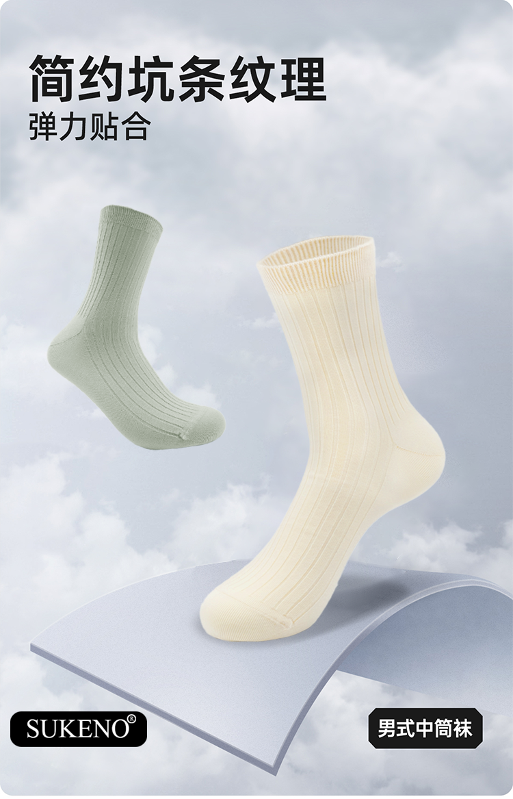 SUKENO夏季透气中筒袜日系百搭长绒棉丝光棉舒适男袜
