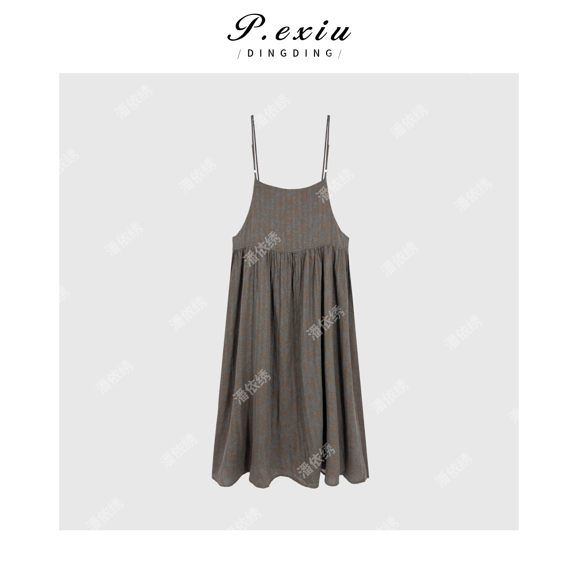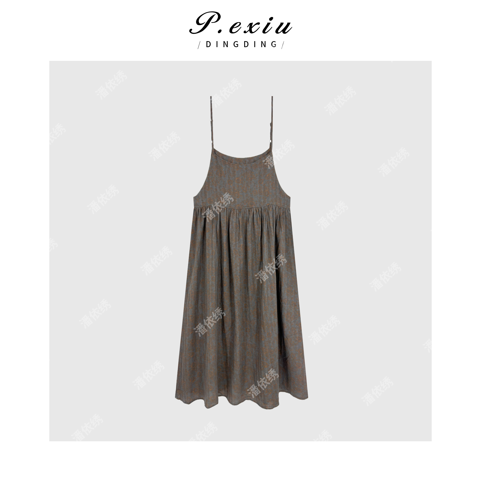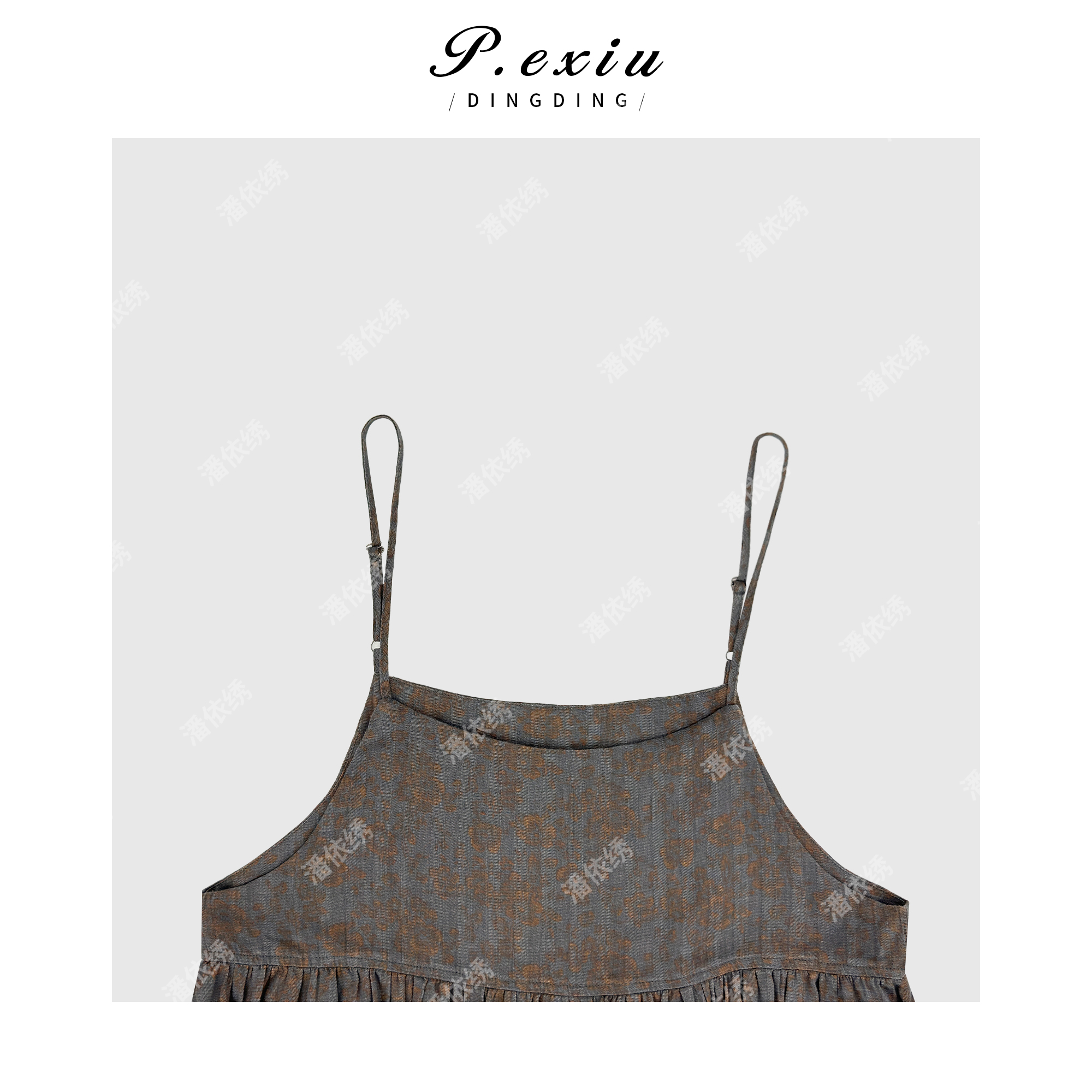 04-1潘依绣丁丁宠粉麻料温柔复古碎花简约气质吊带连衣裙 SH98898