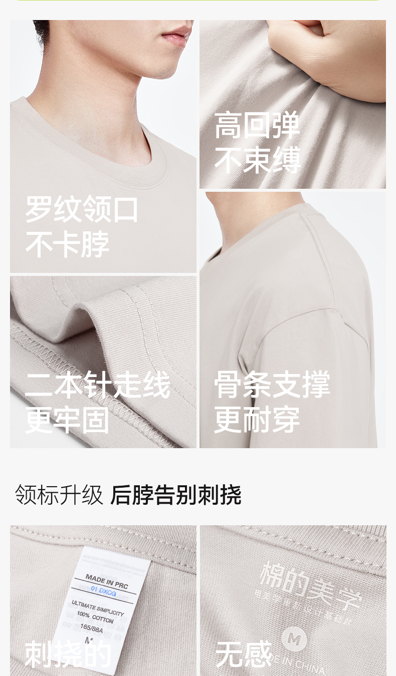 「棉的美学」230g重磅纯棉长袖T恤秋冬季设计感宽松活力休闲上衣