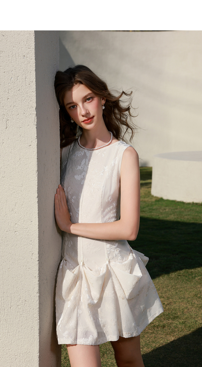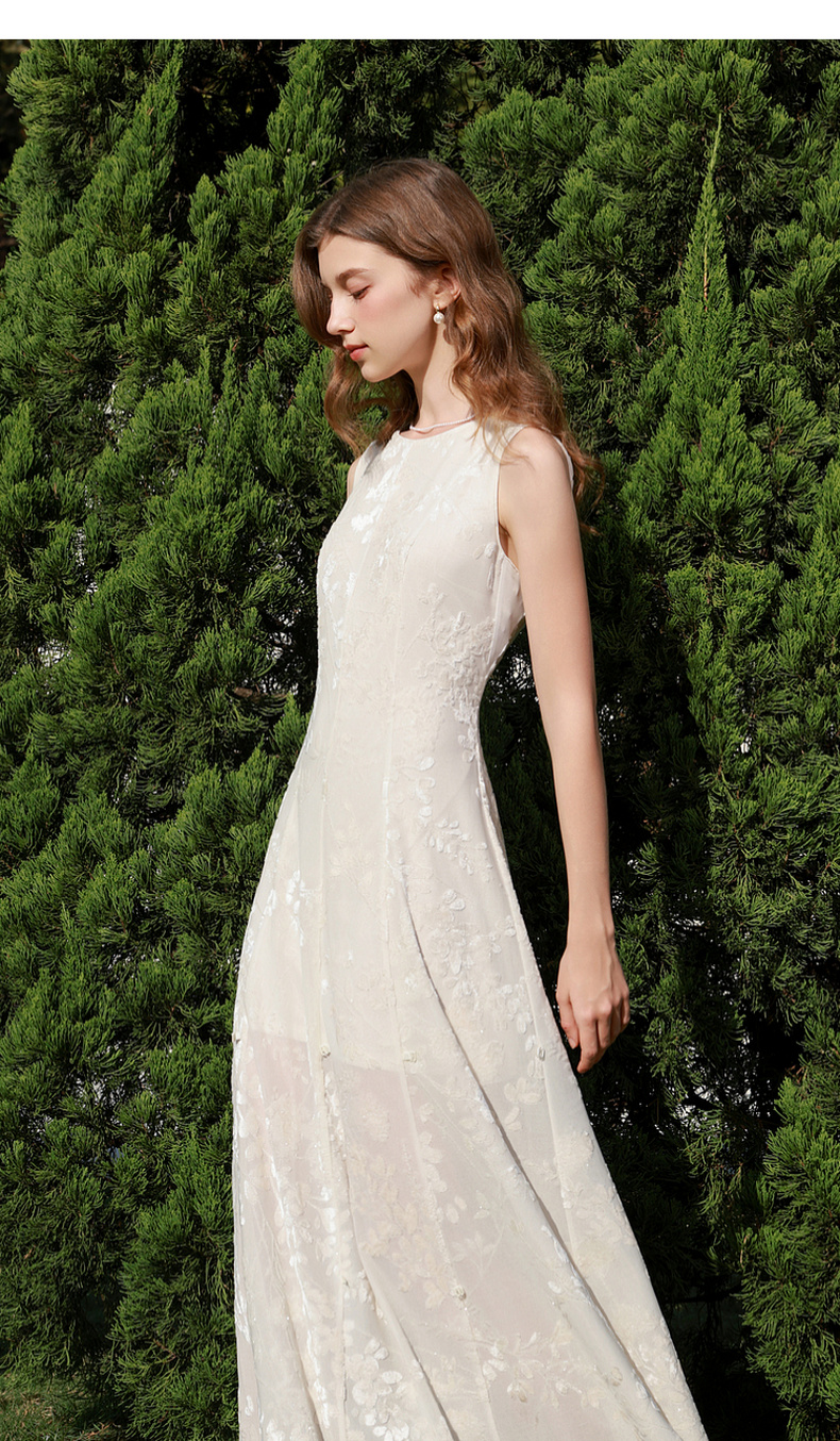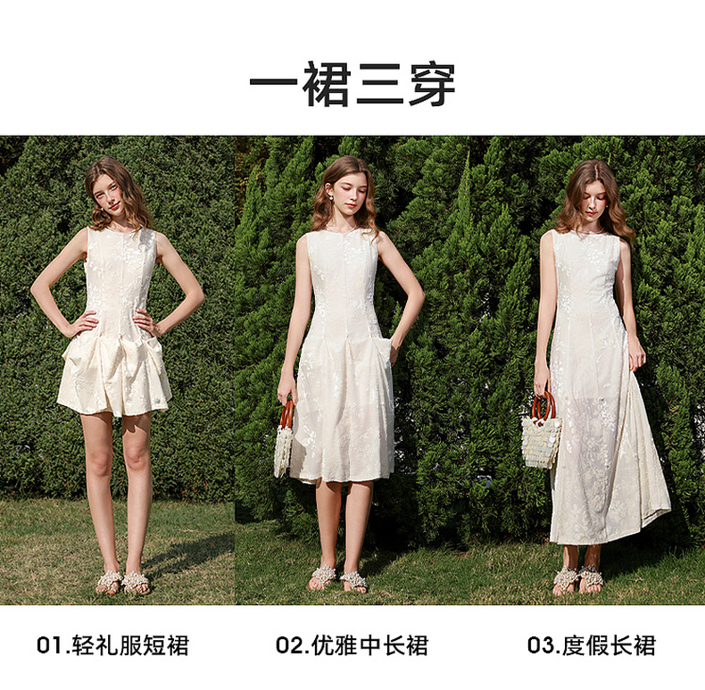三彩2026春季新款圆领无袖收腰连衣裙三穿A字裙长裙气质优雅M
