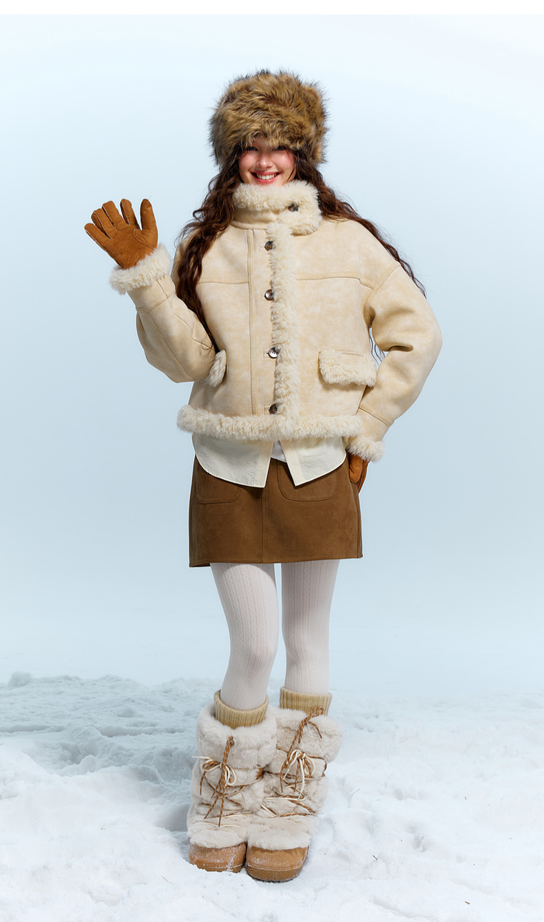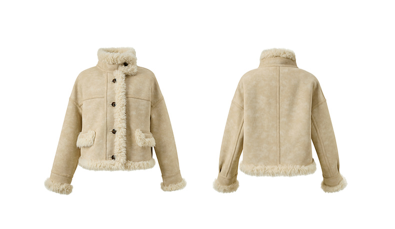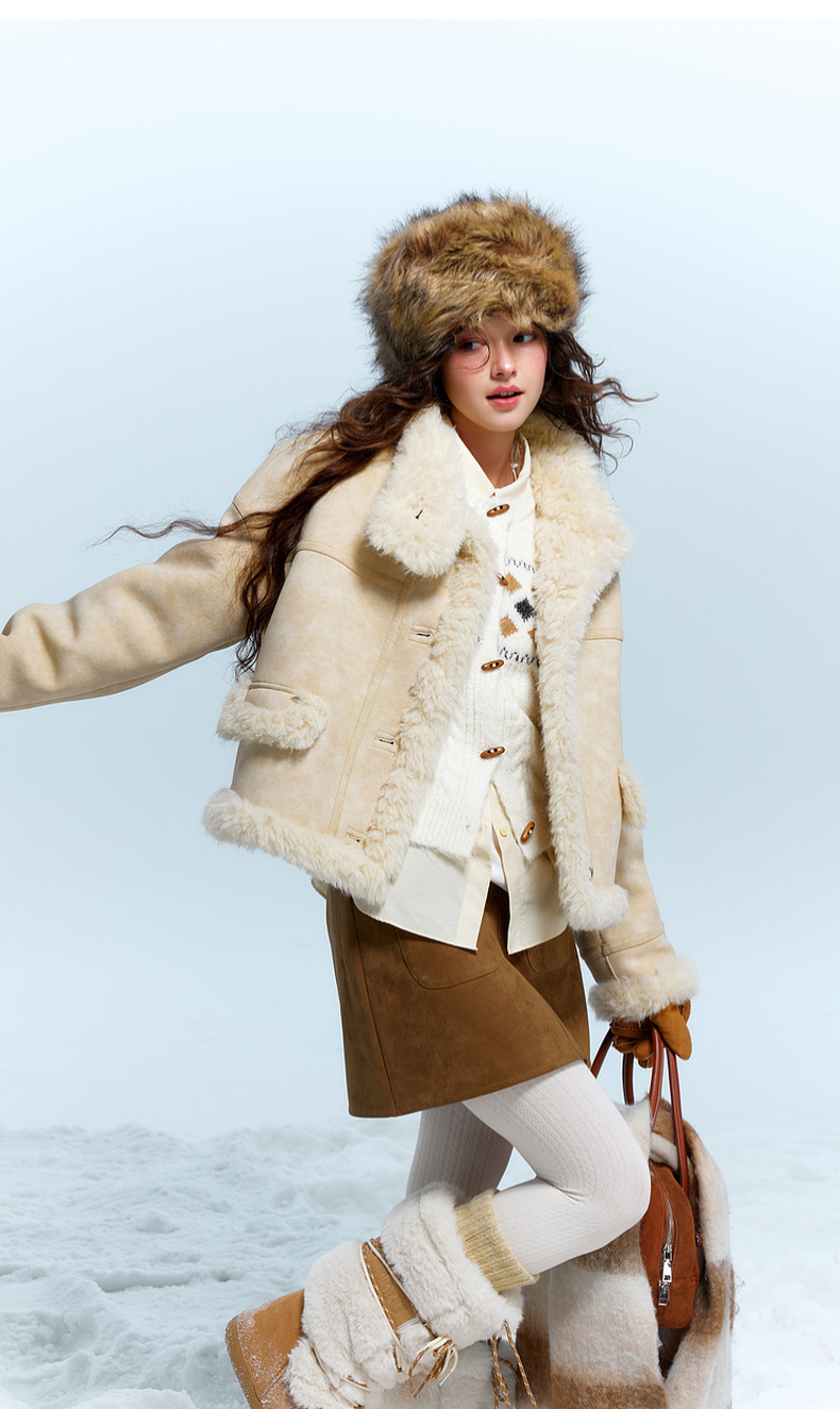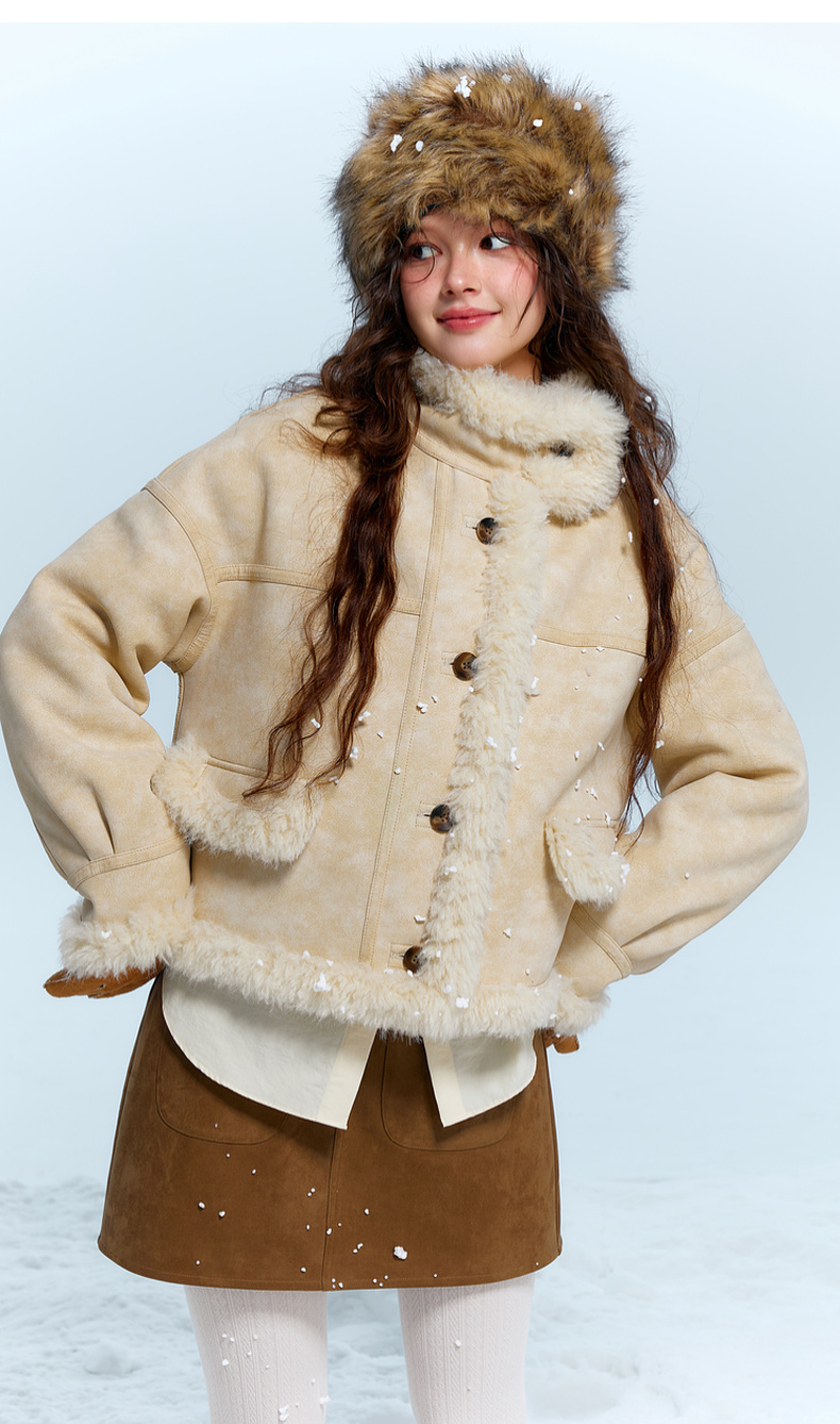 三彩独醒2025冬季新款环保皮草立领毛毛外套短款宽松甜酷F
