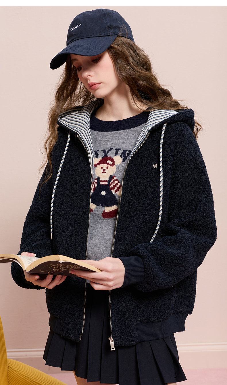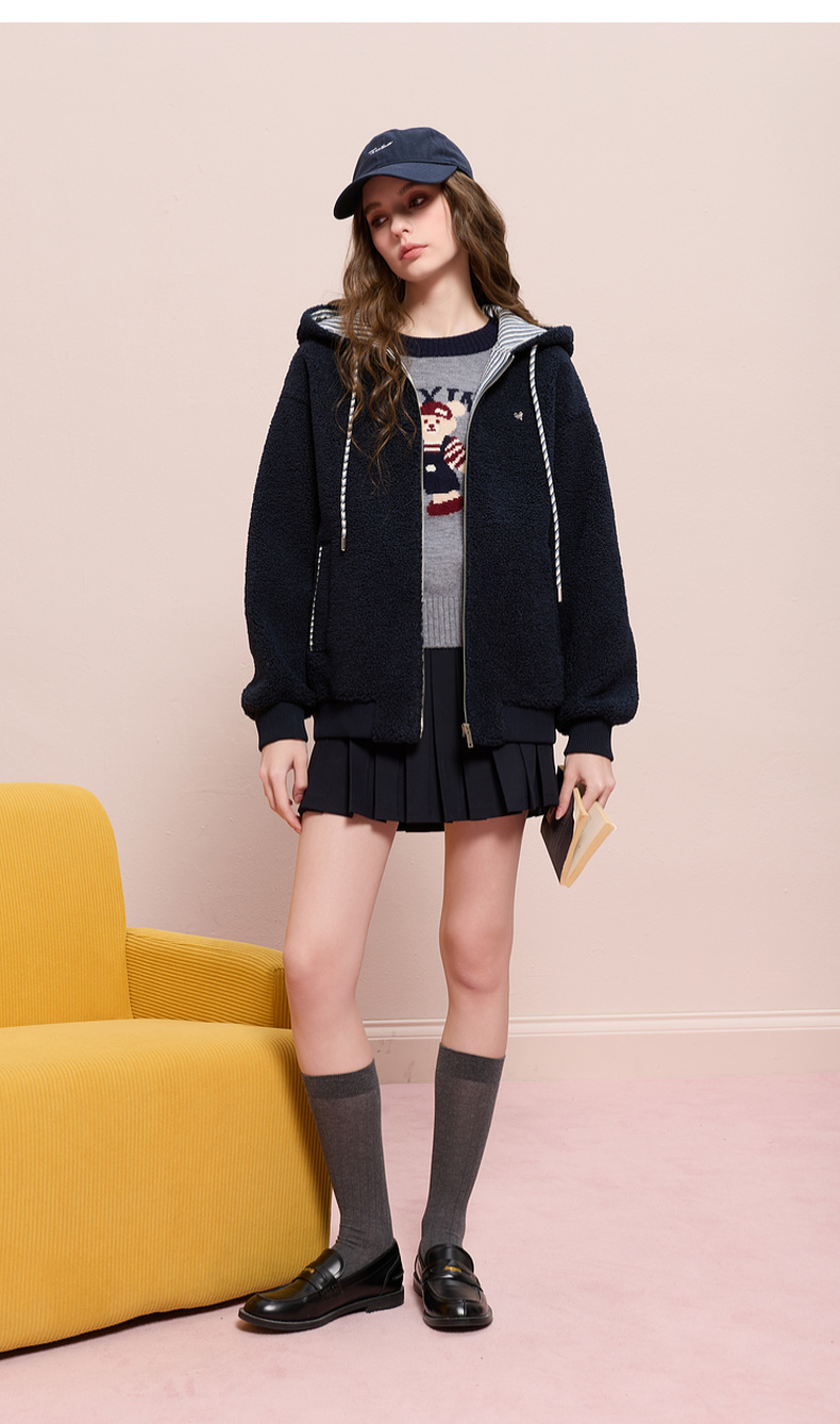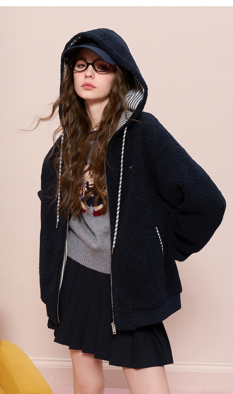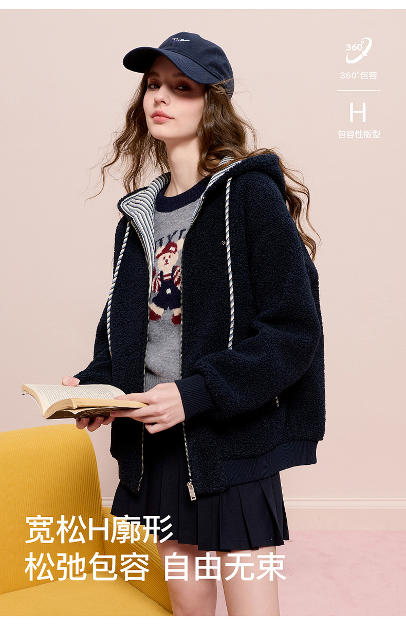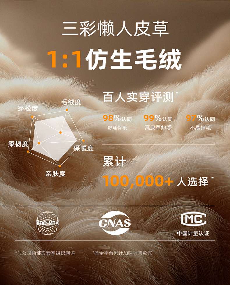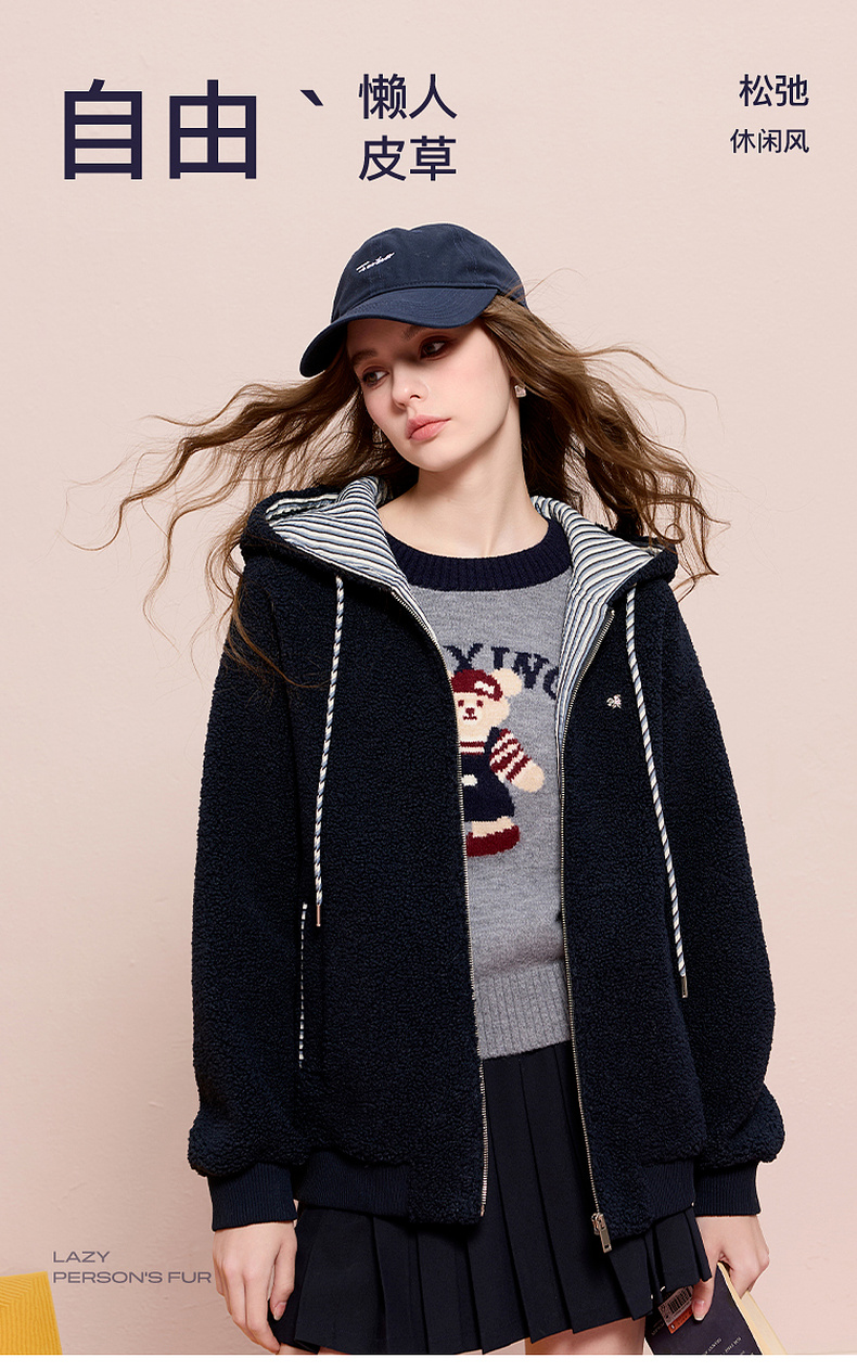 三彩2025冬季新款环保皮草连帽毛毛外套宽松保暖休闲仿皮草M