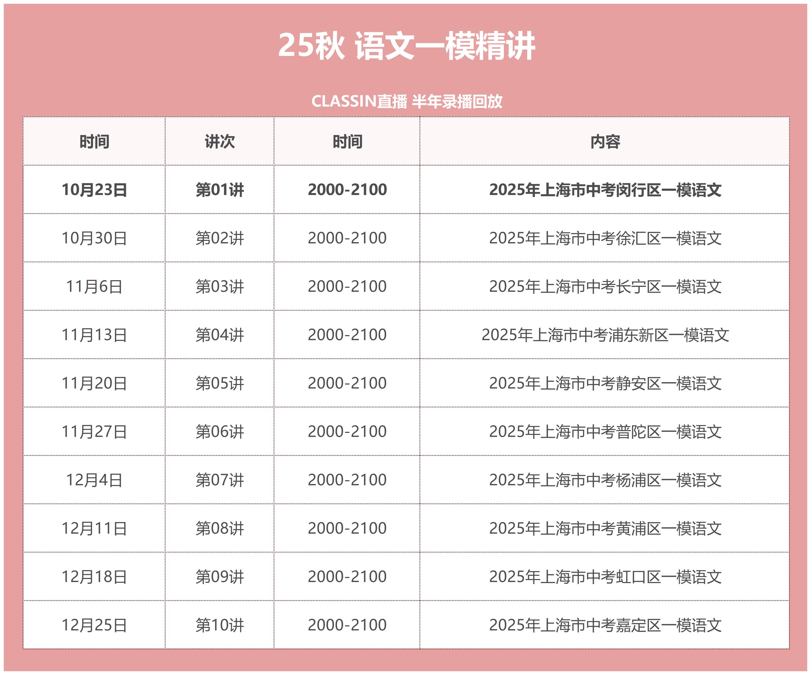 每讲学习1套一模试卷(作文不讲)具体看下方课表