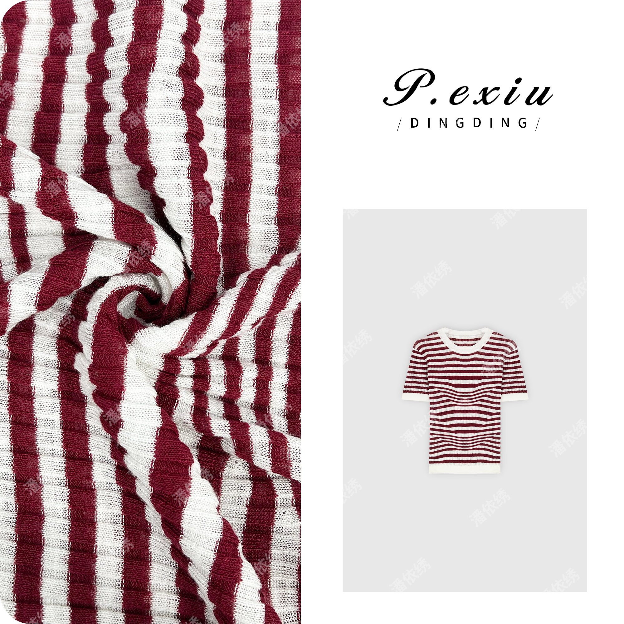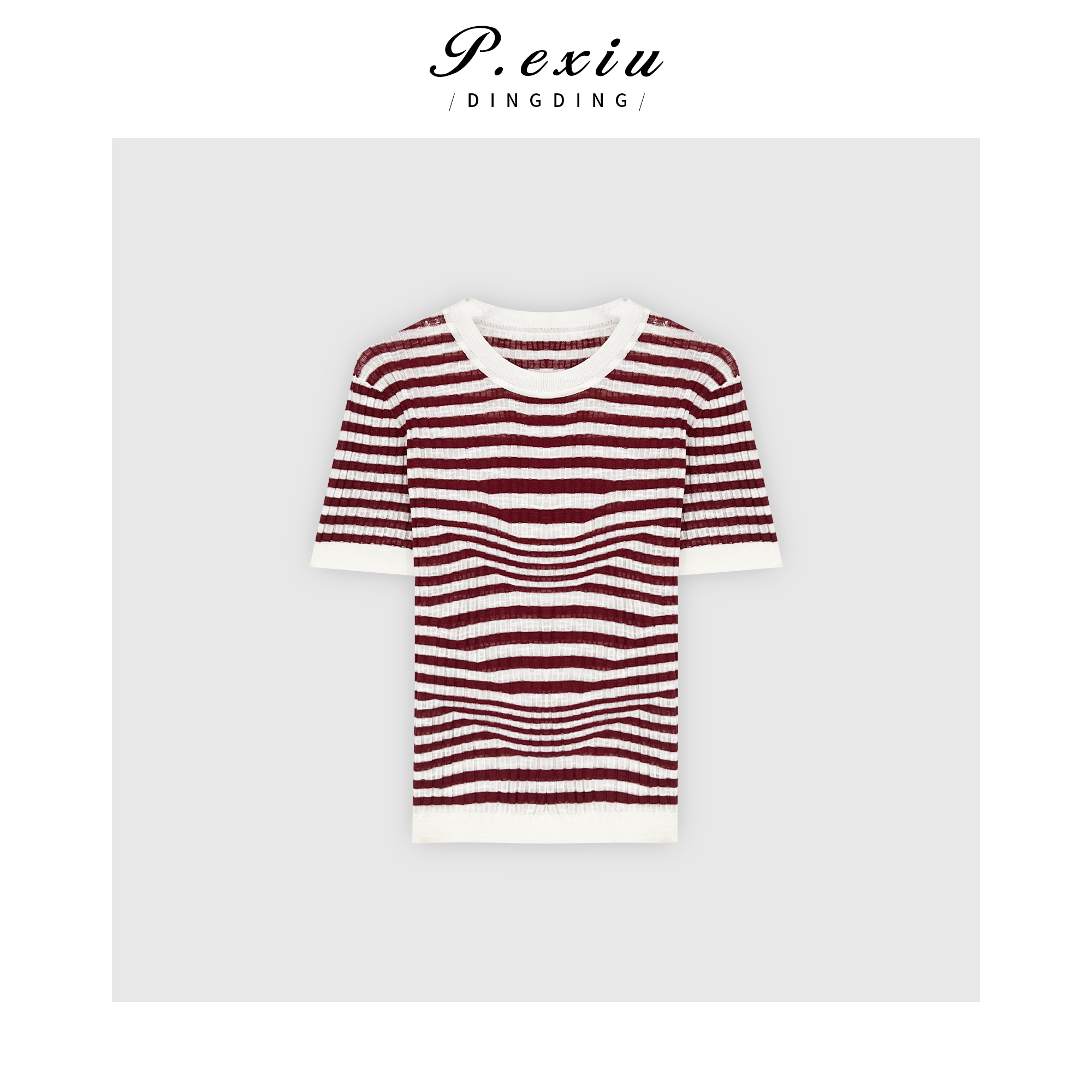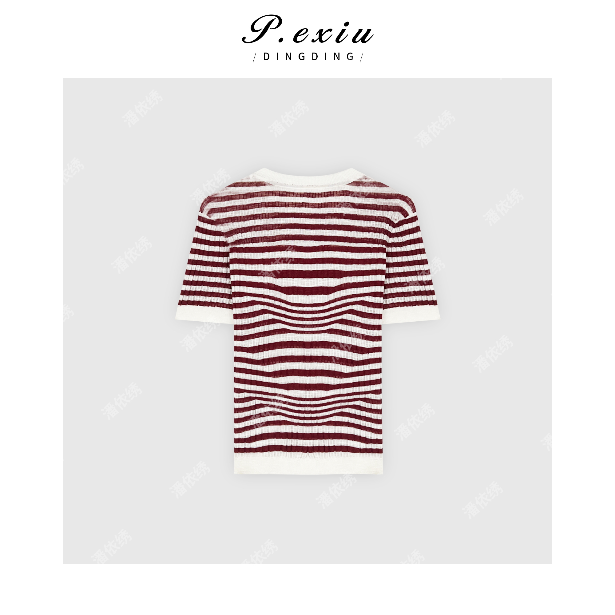 03-4潘依绣丁丁宠粉PanYiXiu/潘依绣氧气感人丝韩版撞色条纹针织短袖上衣 ZZ0556