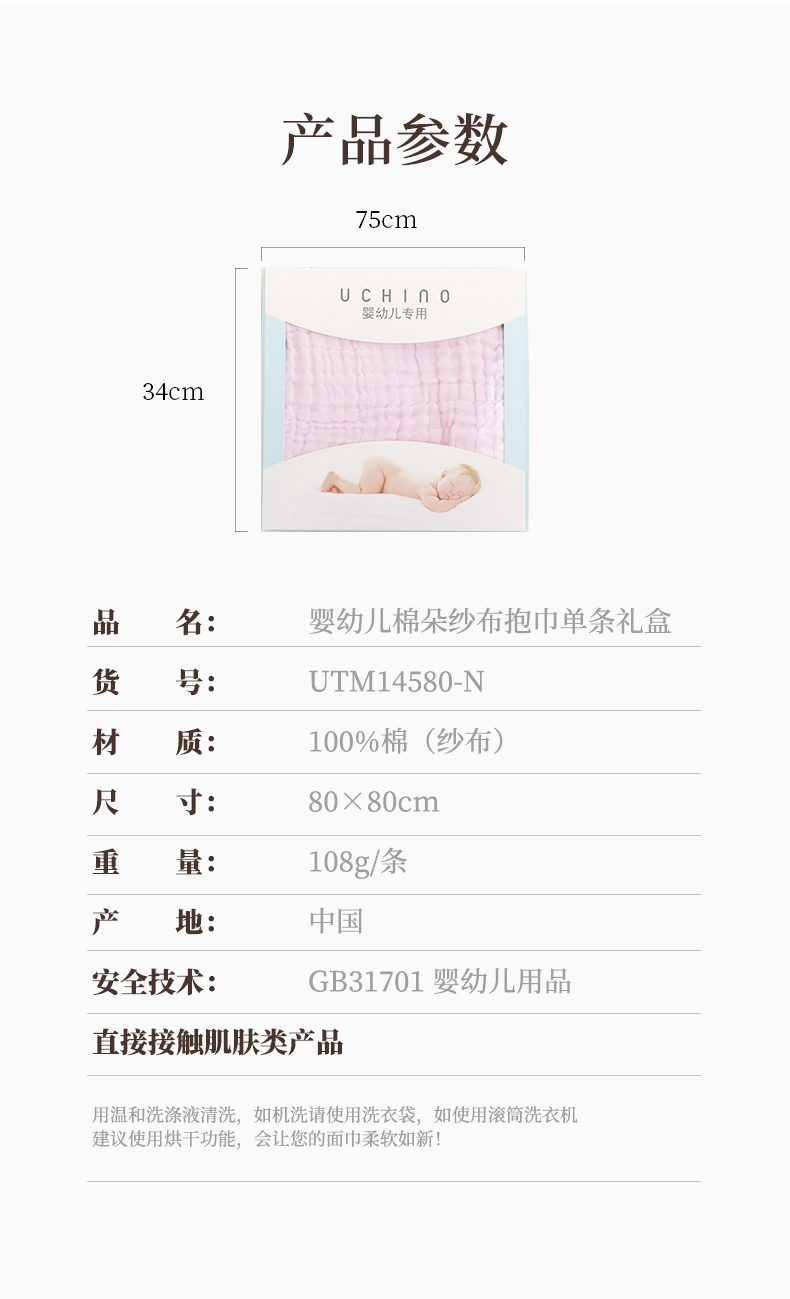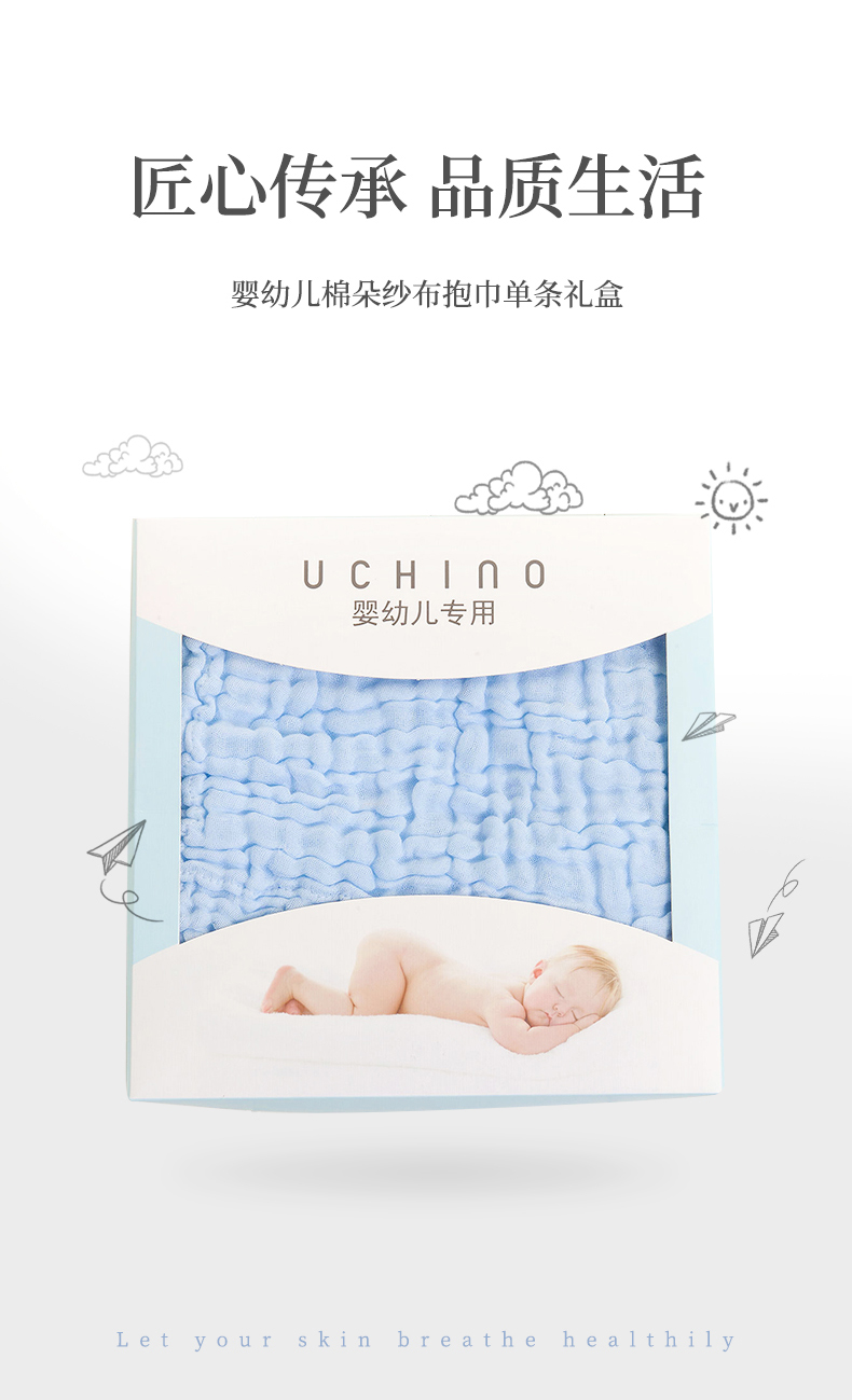 内野X-婴幼儿棉朵纱布抱巾单条礼盒 80*80cm