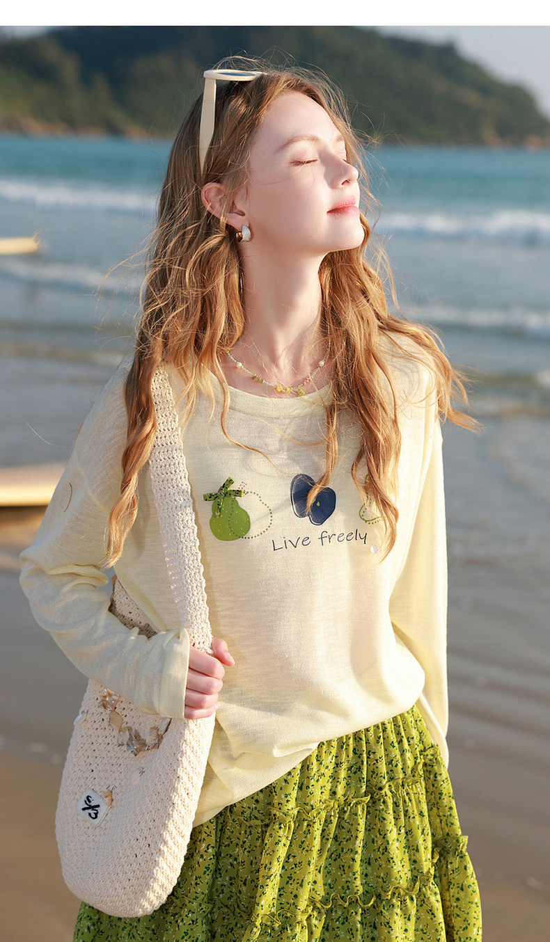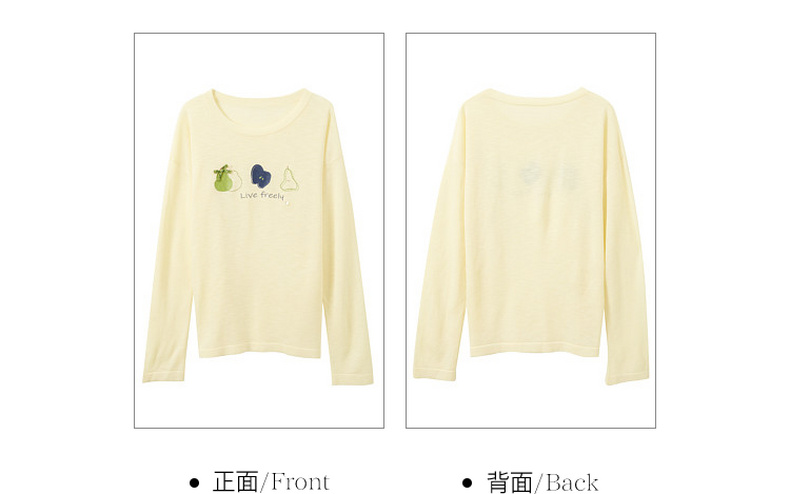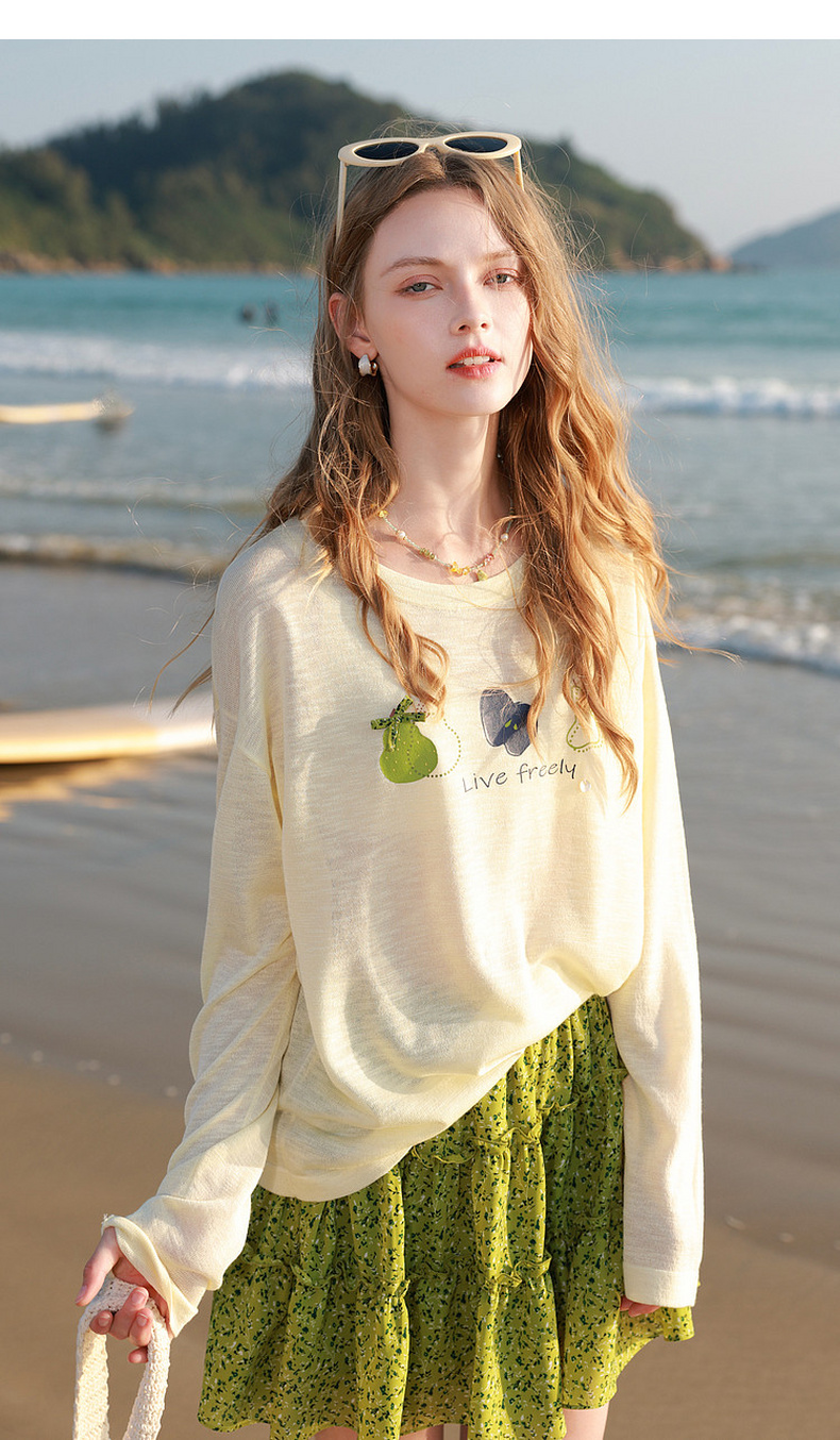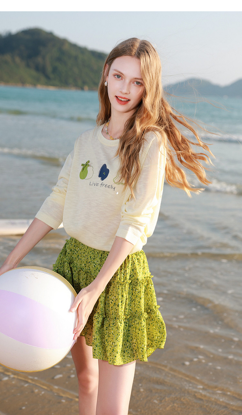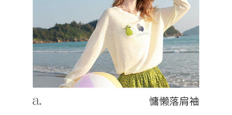 三彩2026夏季新款水果印花罩衫针织衫圆领套头落肩袖上衣简约M