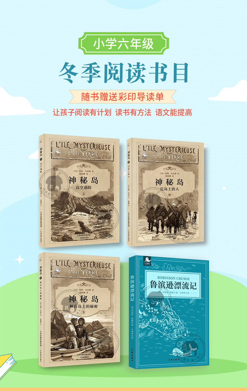 六年级适读《神秘岛》全三册《鲁滨逊漂流记》