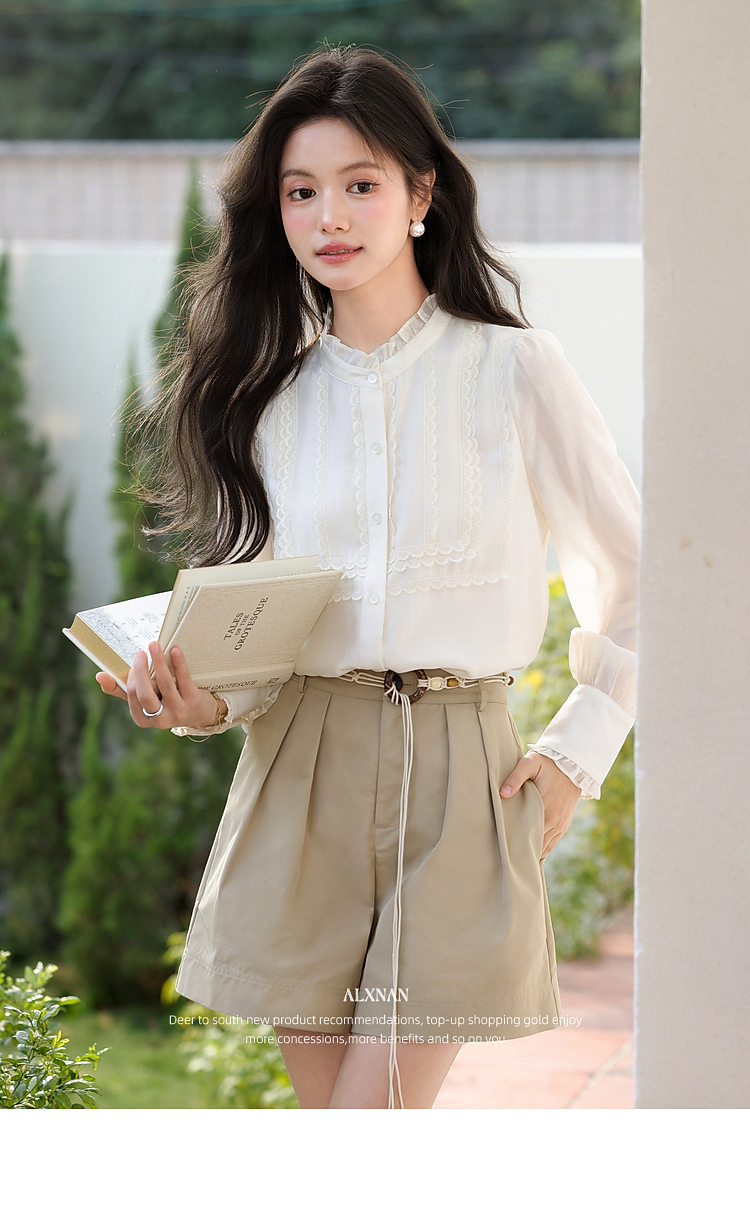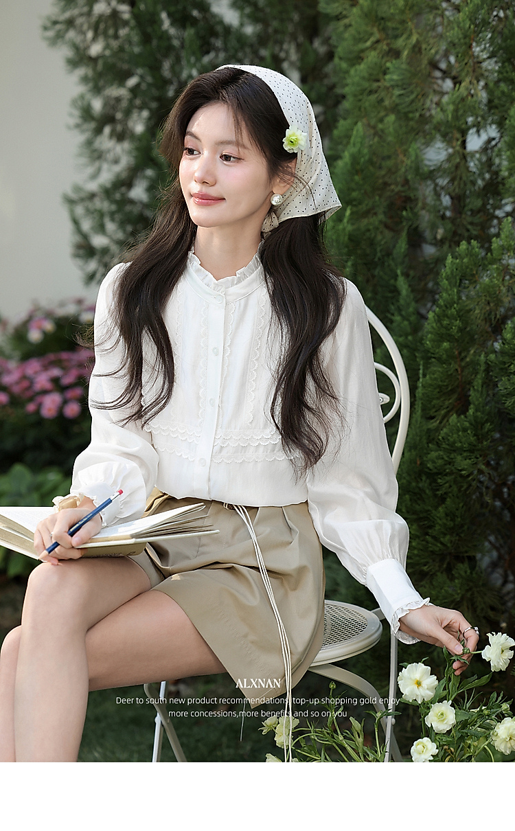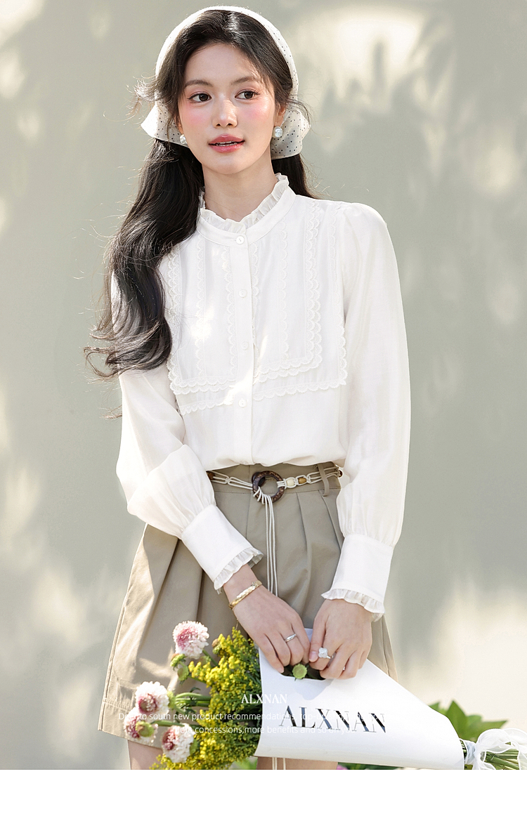 鹿向南「清韵芳姿」杏色半高领衬衫女春季减龄洋气内搭长袖款上衣