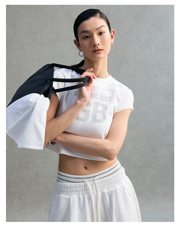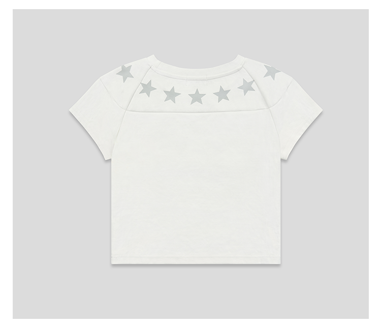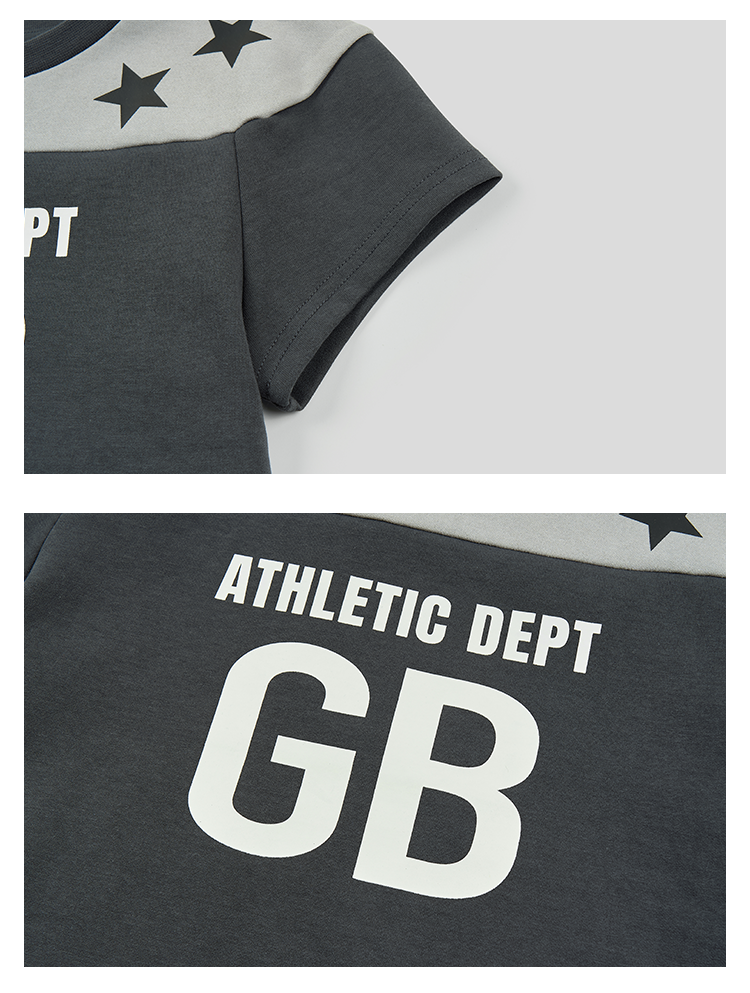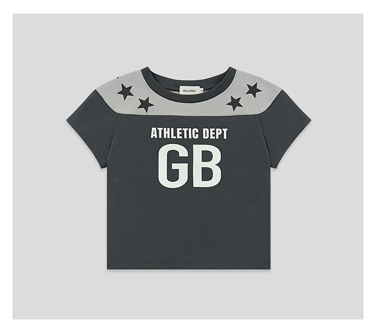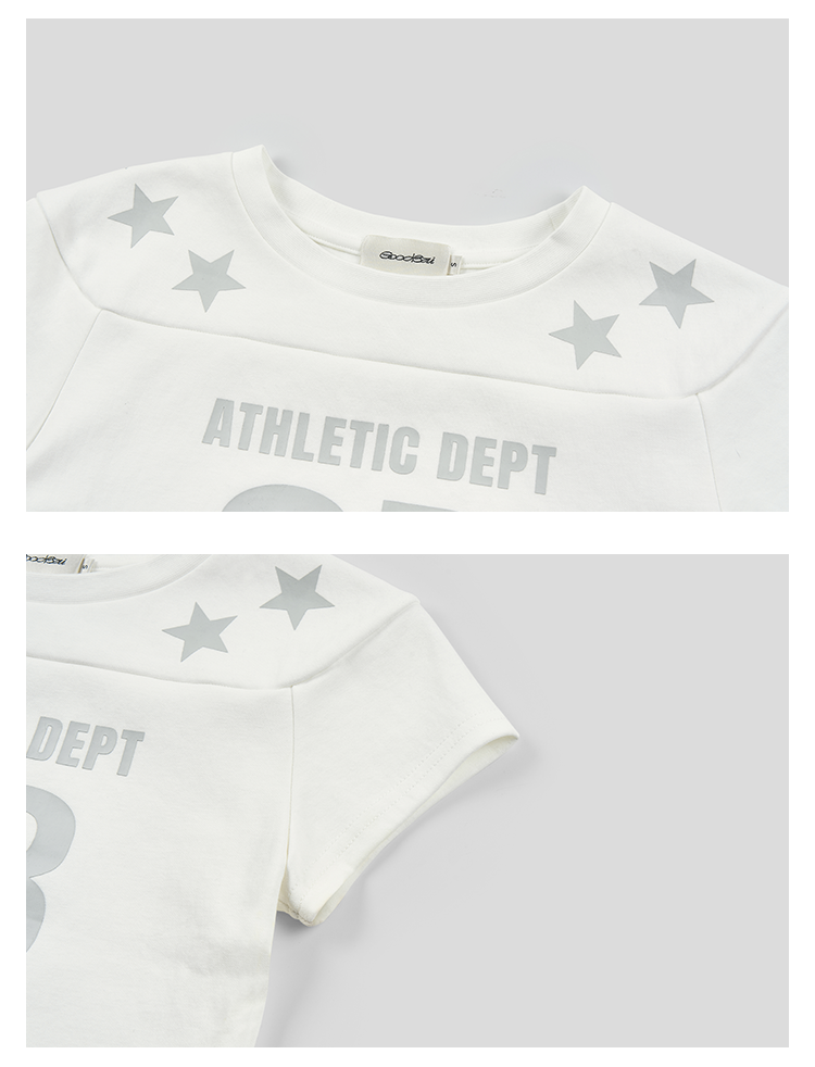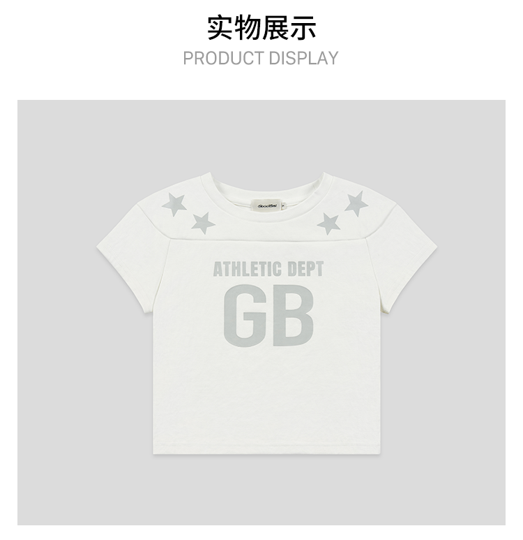 GOODBAI athletic GB logo印花拼接星星圆领紧身短款飞袖T恤