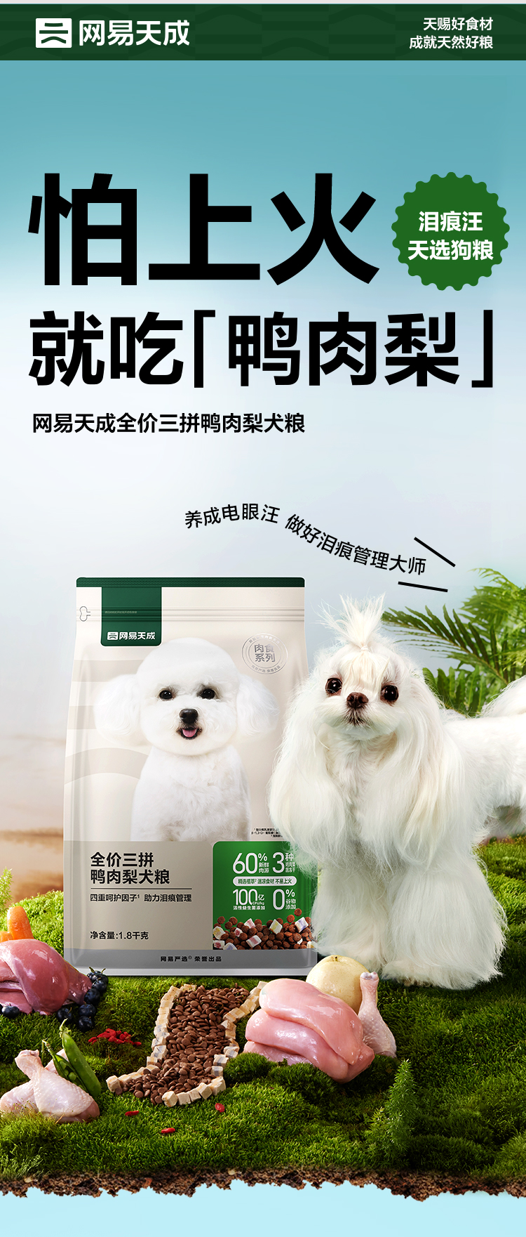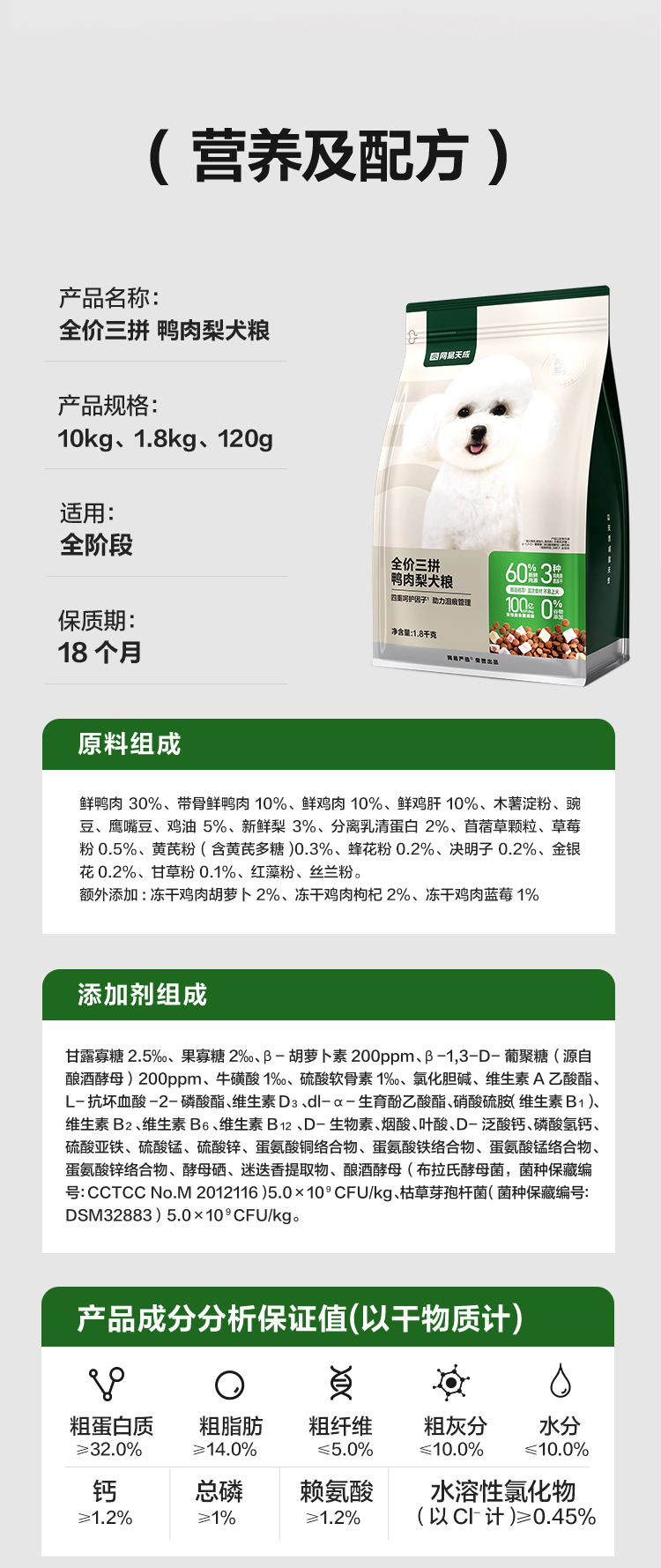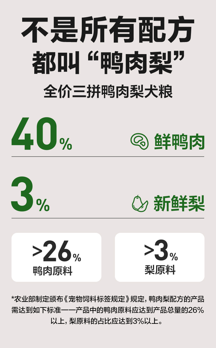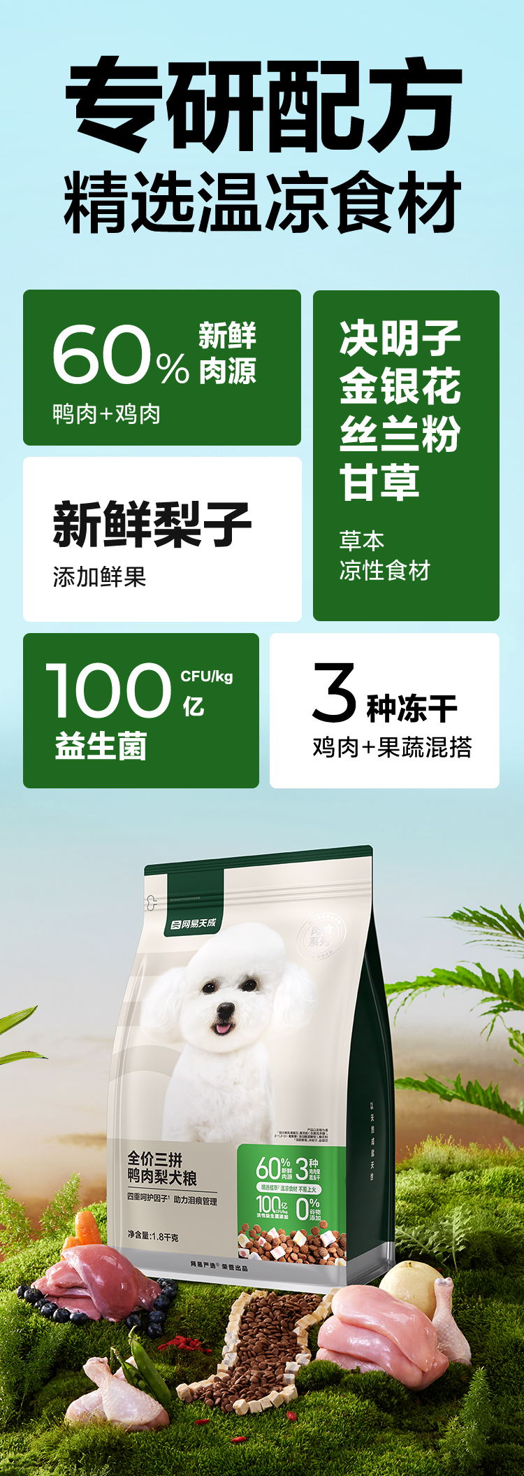 全价三拼鸭肉梨犬粮,清火抗炎控泪痕