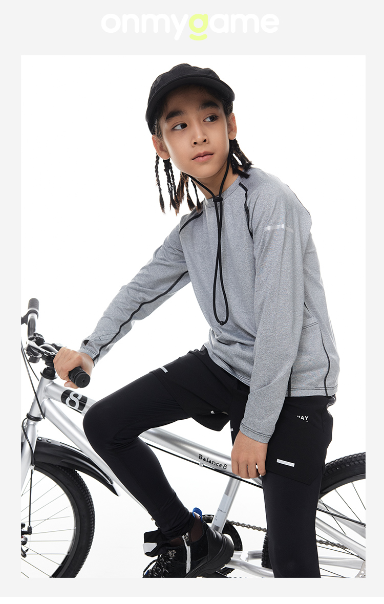 onmygame〖无缝裤〗男童儿童假两件运动裤高弹力体能训练裤