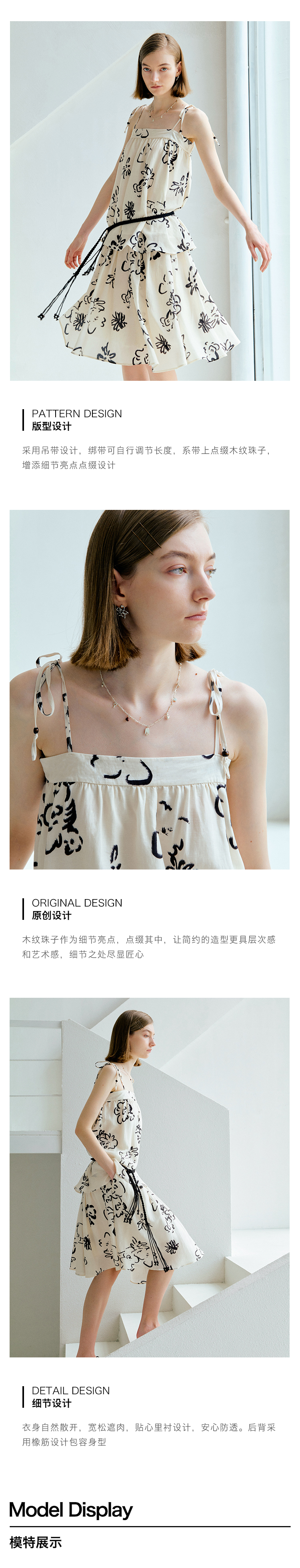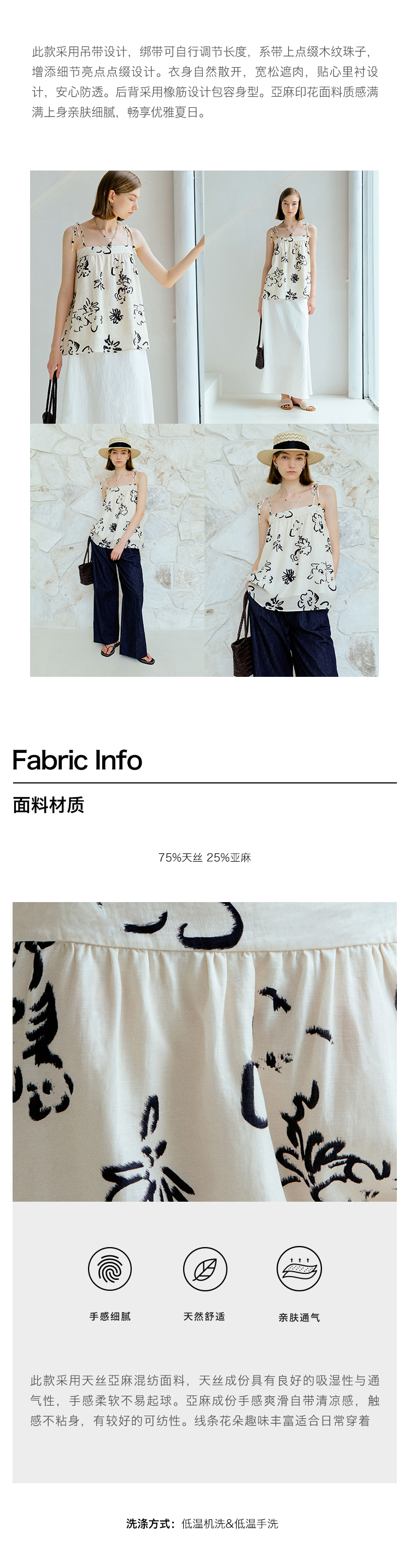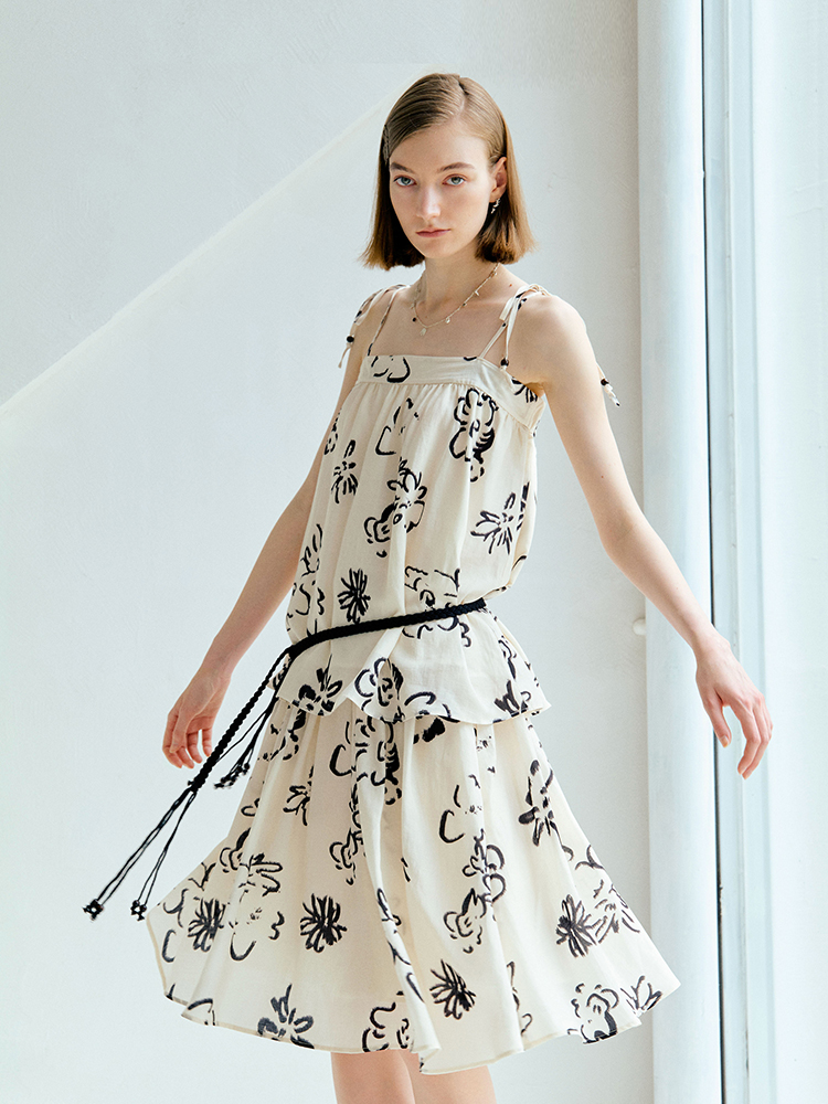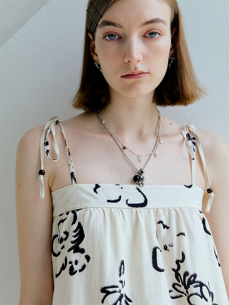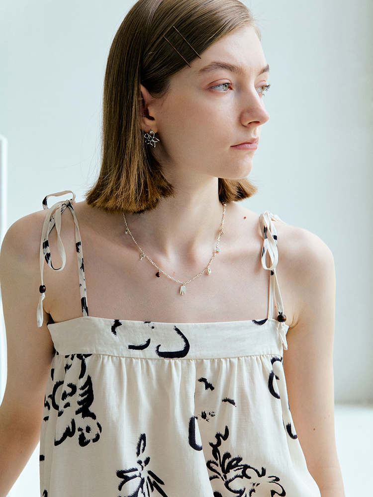 ForPoem 现货 25/SS原创设计亚麻夏日印花吊带上衣